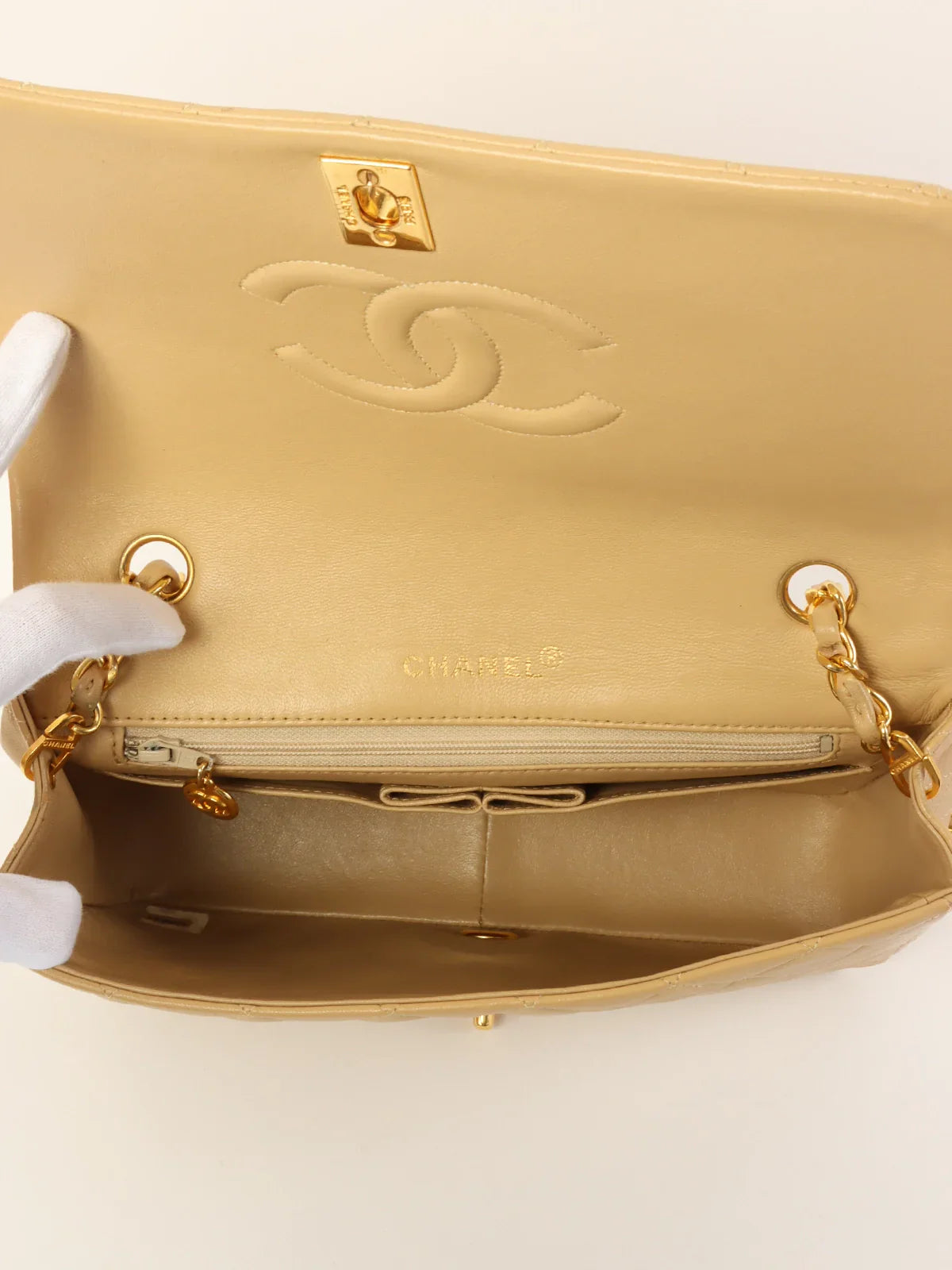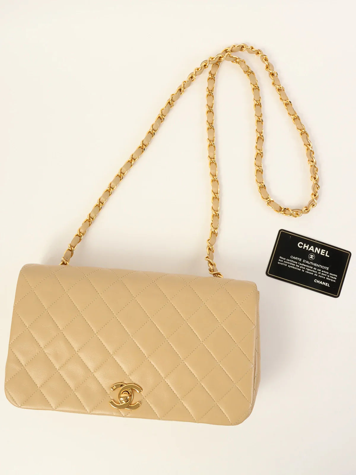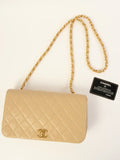 CHANEL Around 1990 Made Full Flap Chain Bag 23Cm Beige
