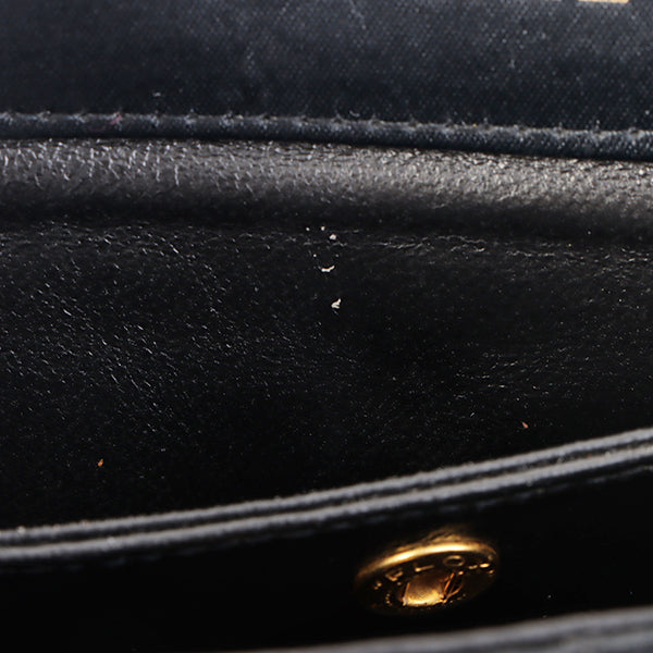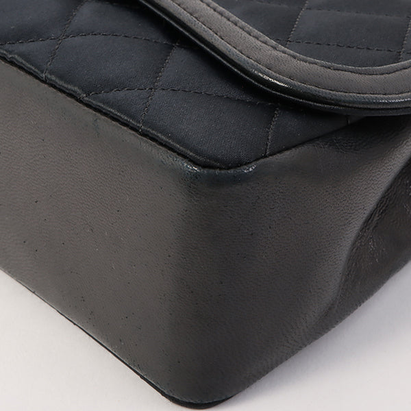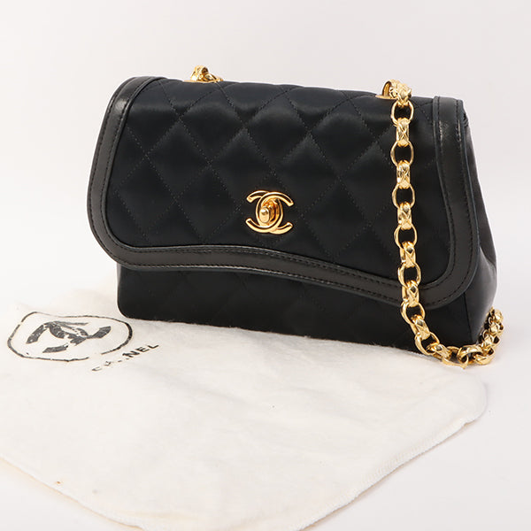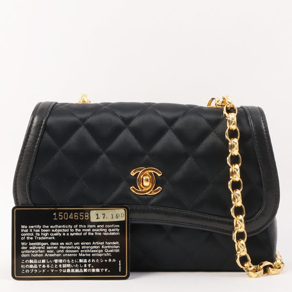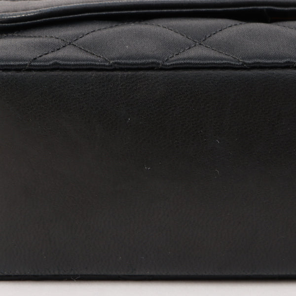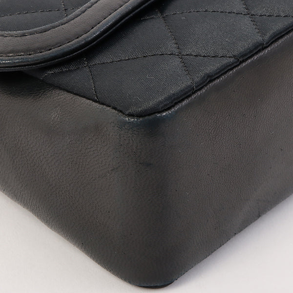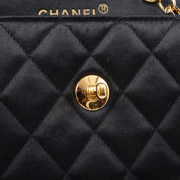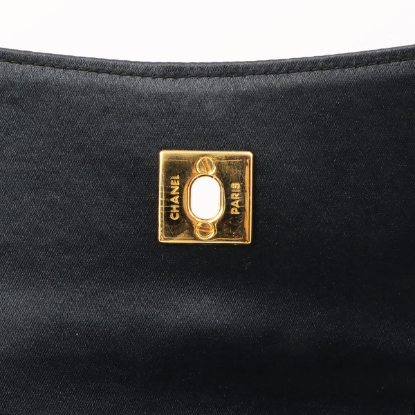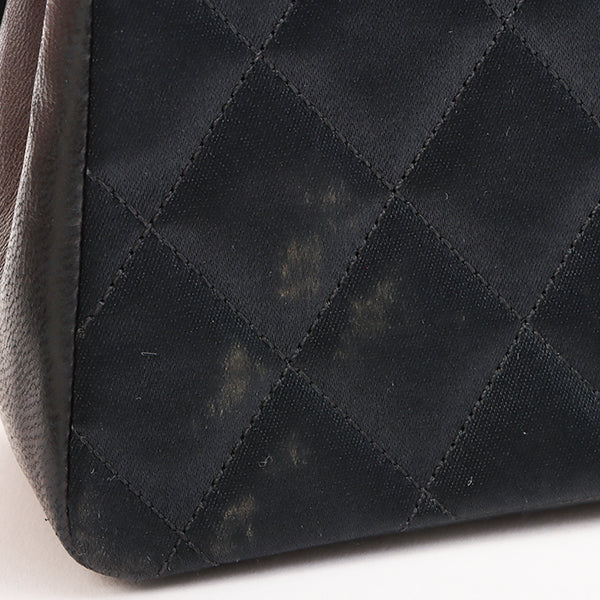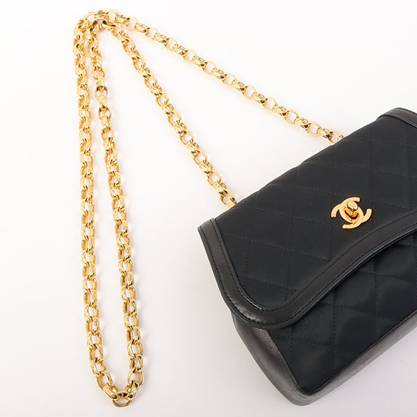 Chanel Around 1990 Made Leather Silk Satin Combination Design Flap Mini Bijou Chain Bag Black
