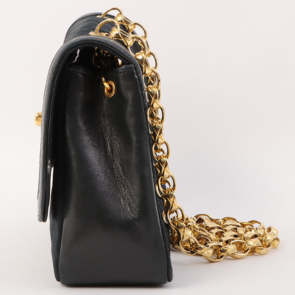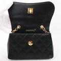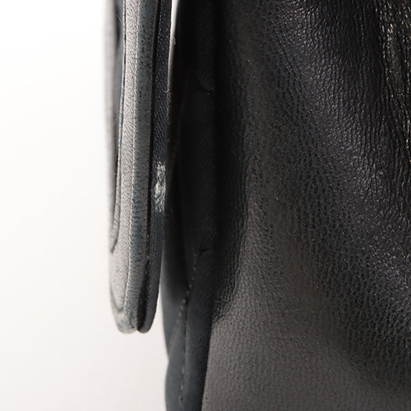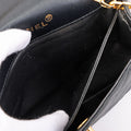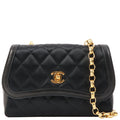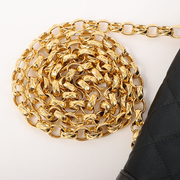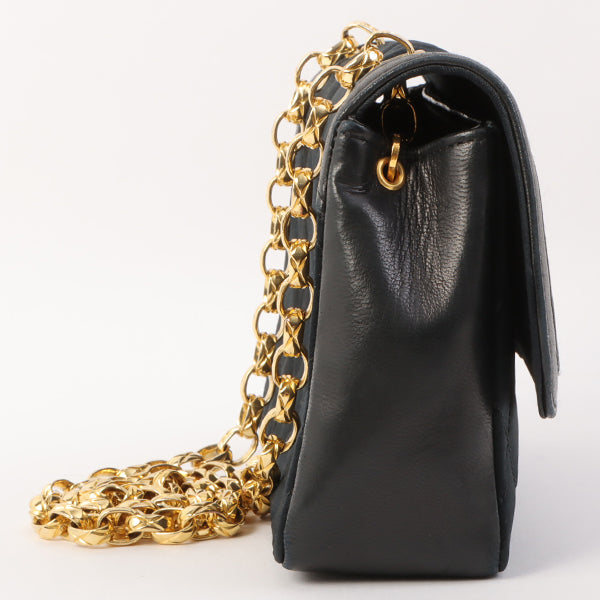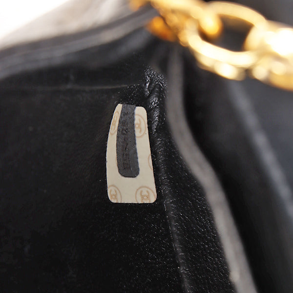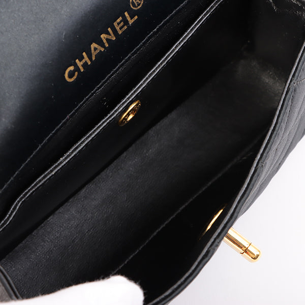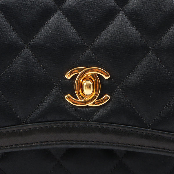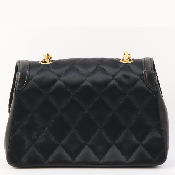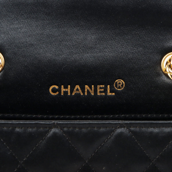 Chanel Around 1990 Made Leather Silk Satin Combination Design Flap Mini Bijou Chain Bag Black