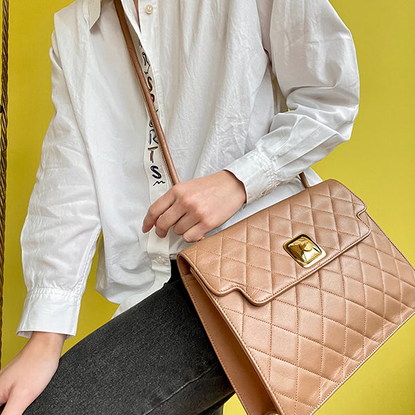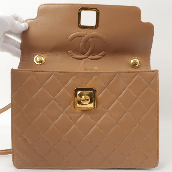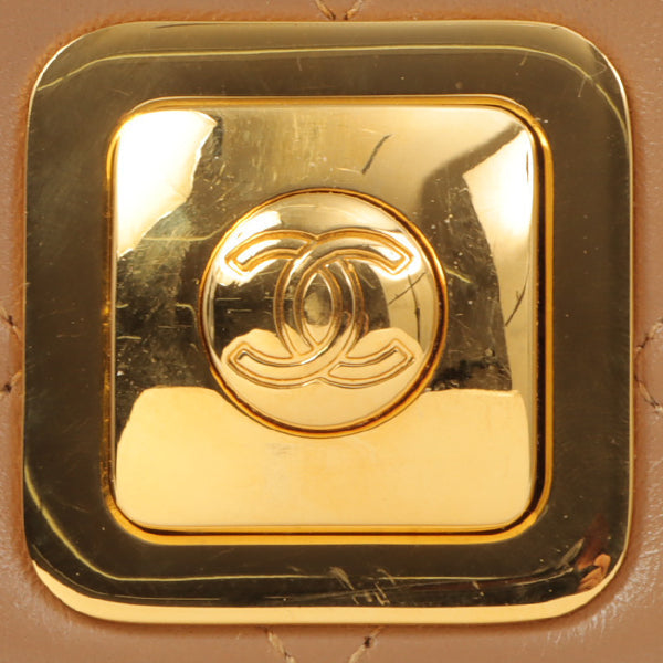 Chanel Around 1990 Made Square Cc Mark Push Lock Shoulder Bag Amber