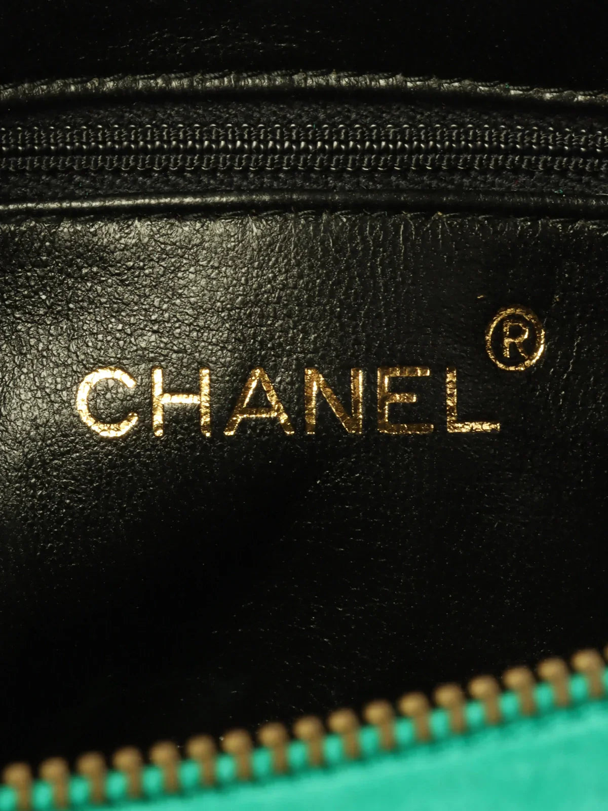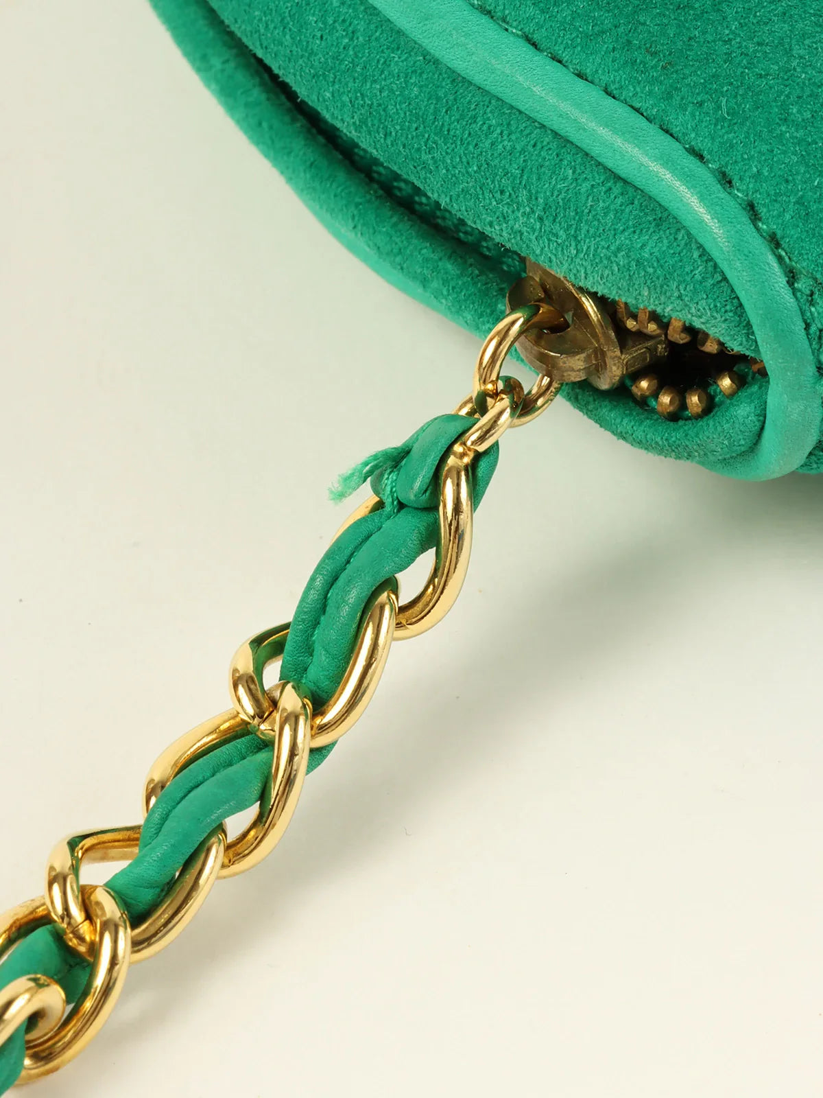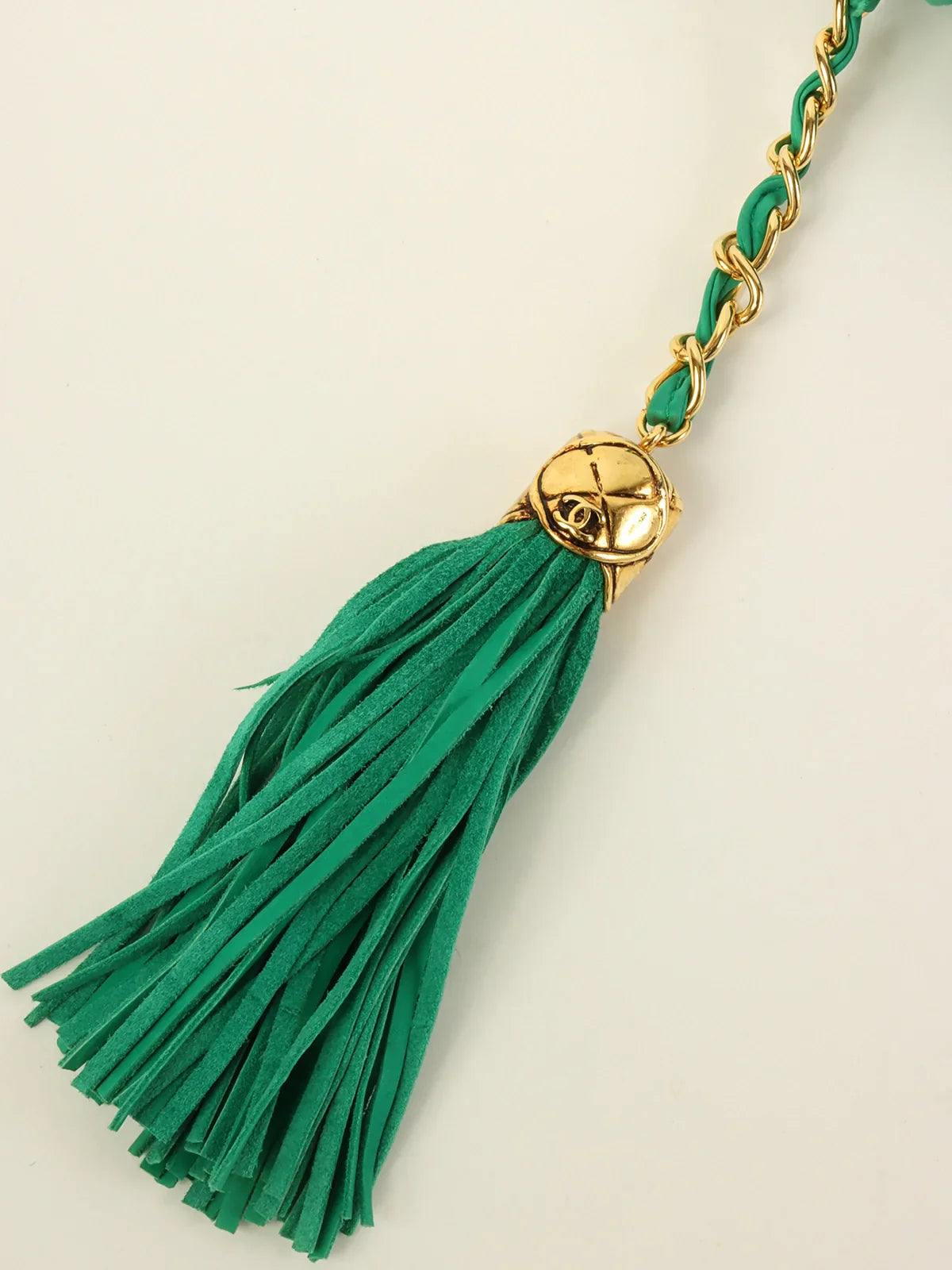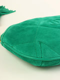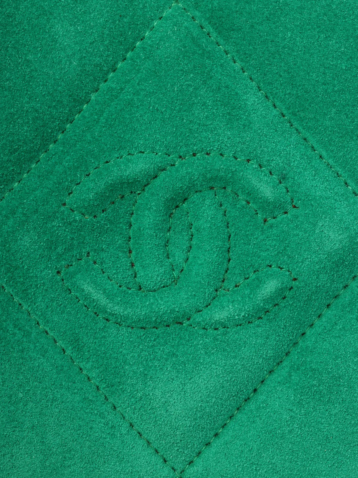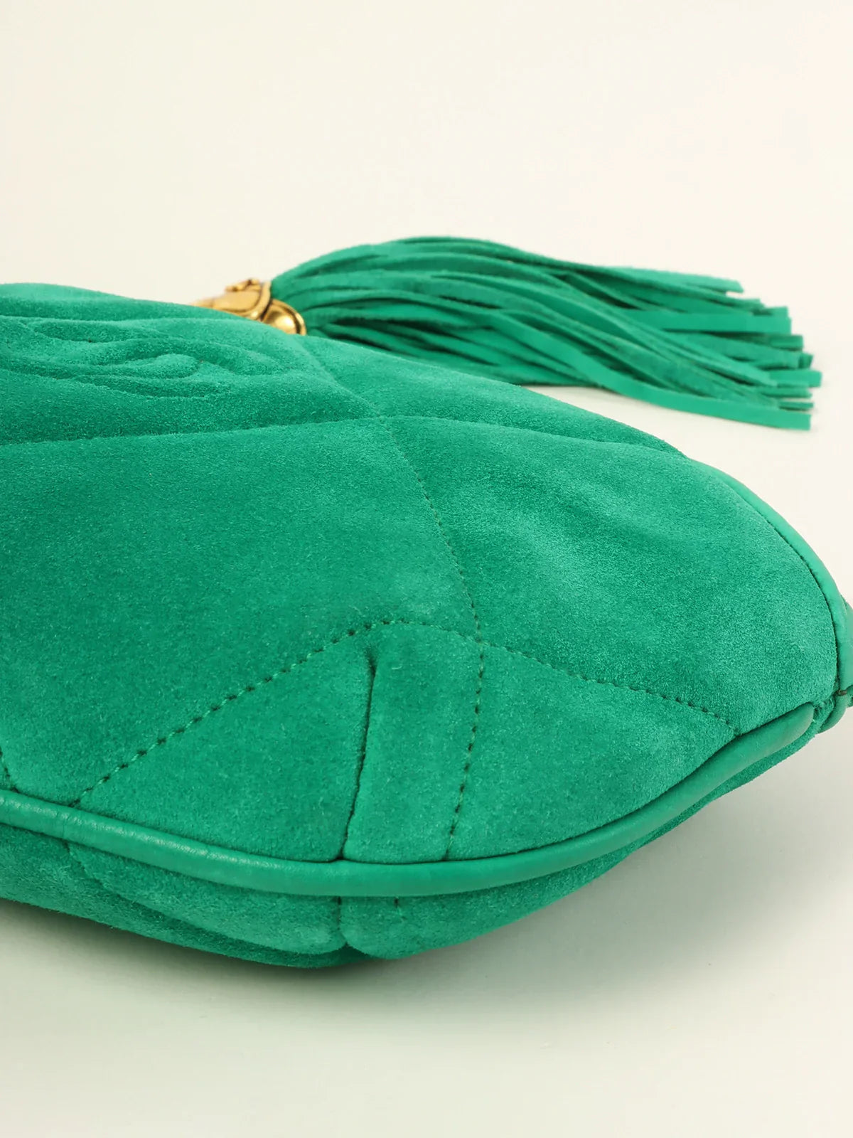 CHANEL Around 1990 Made Suede Cc Mark Stitch Tassel Clutch Bag Cobalt Green