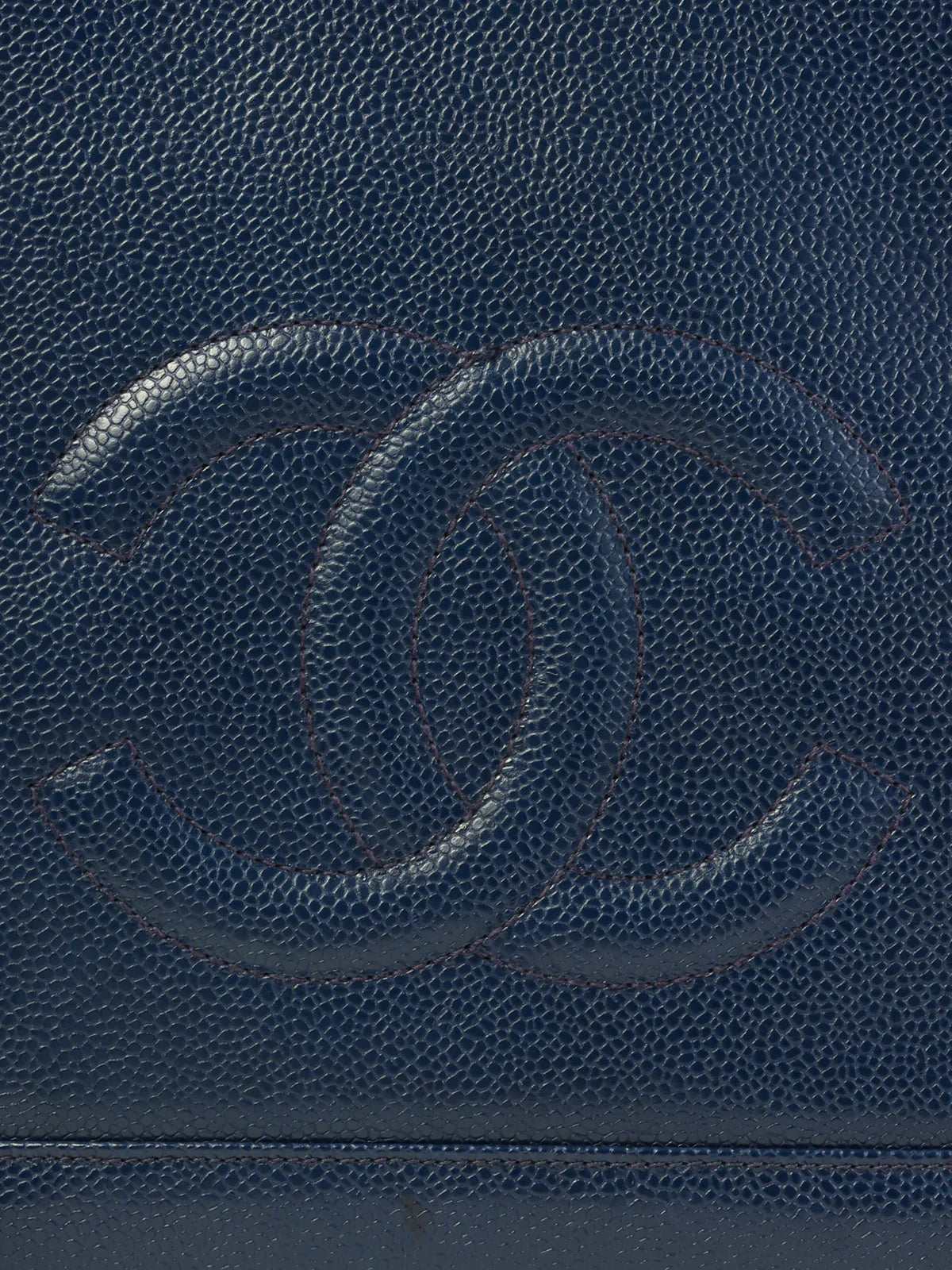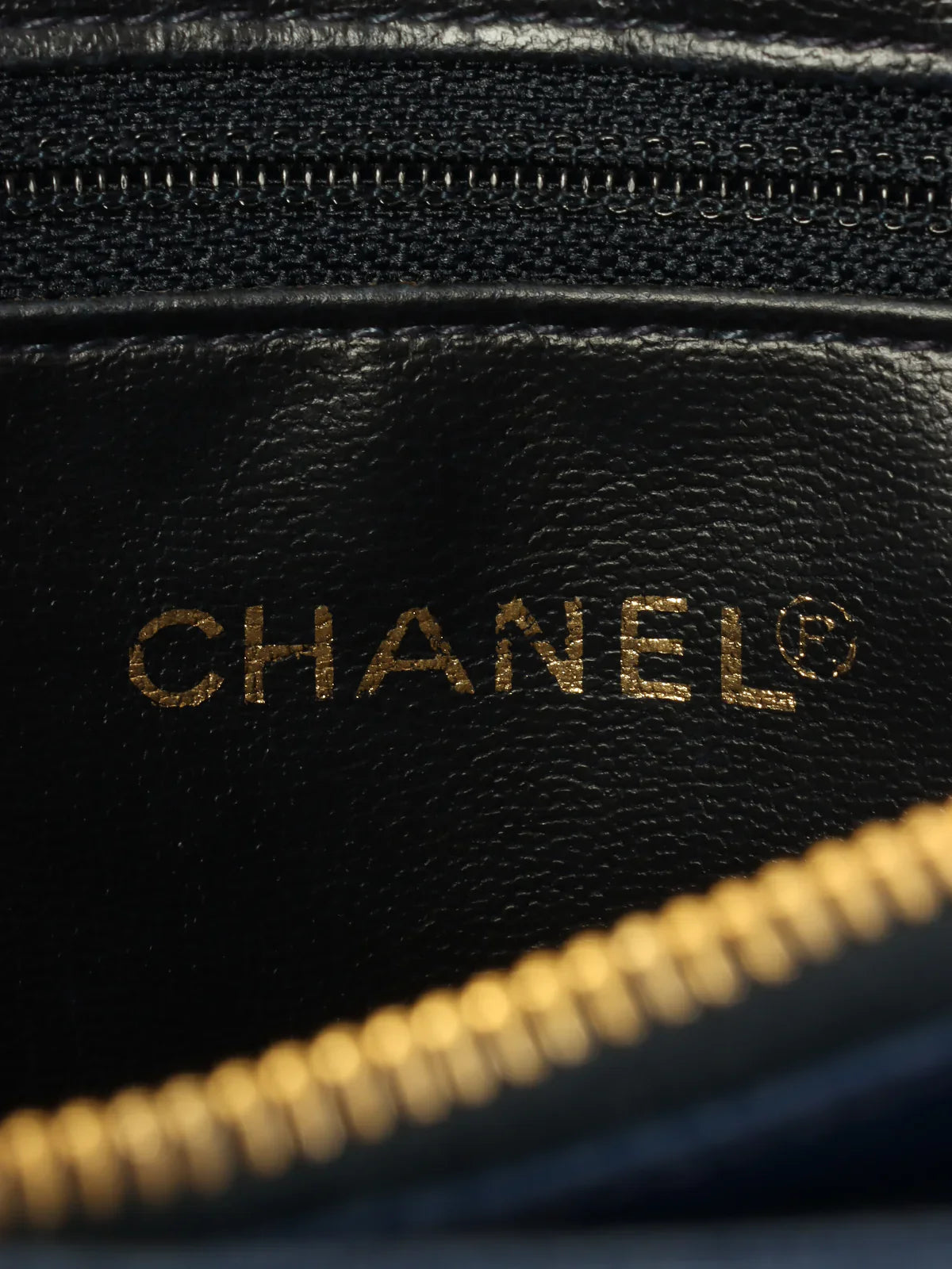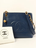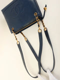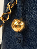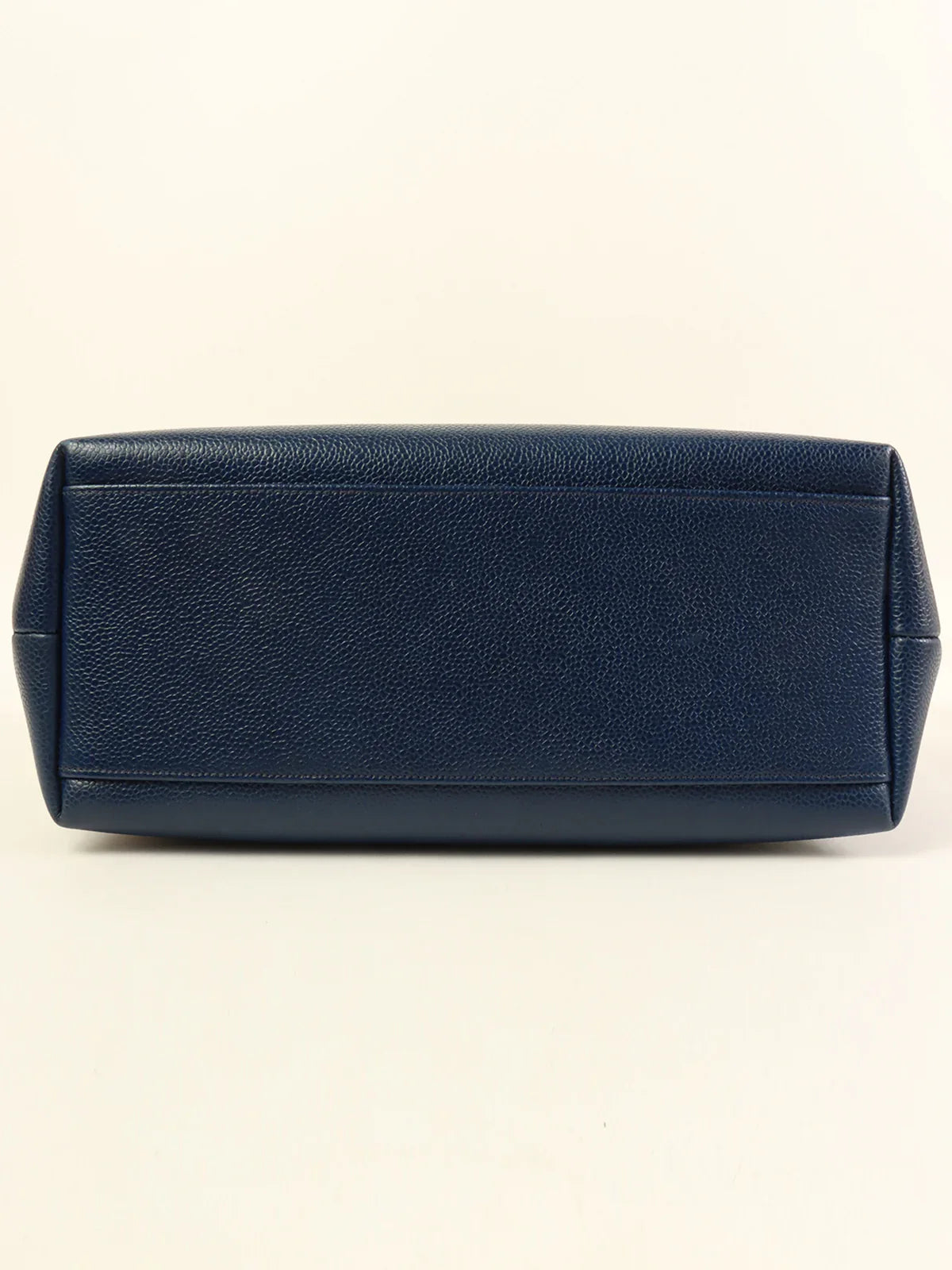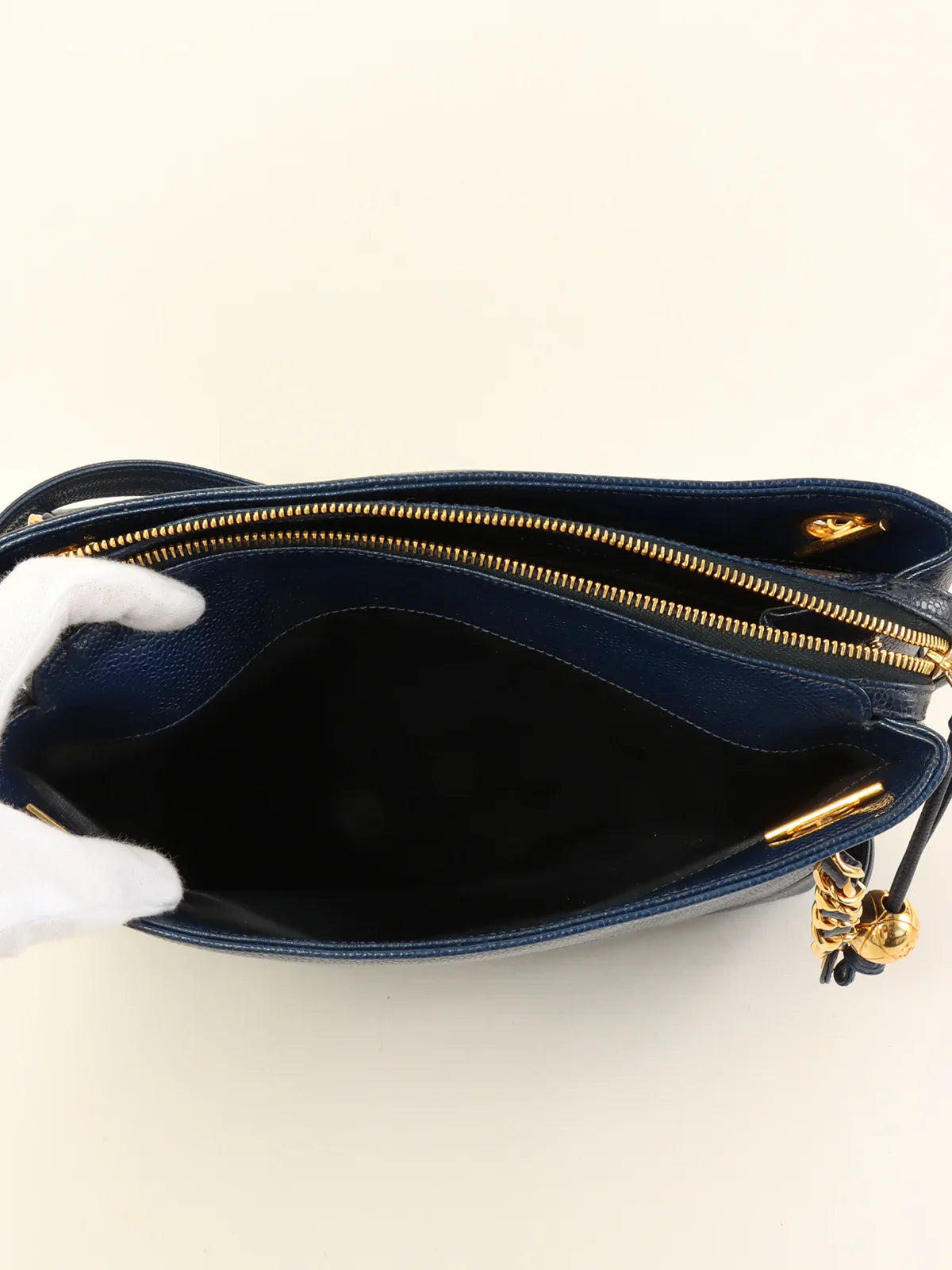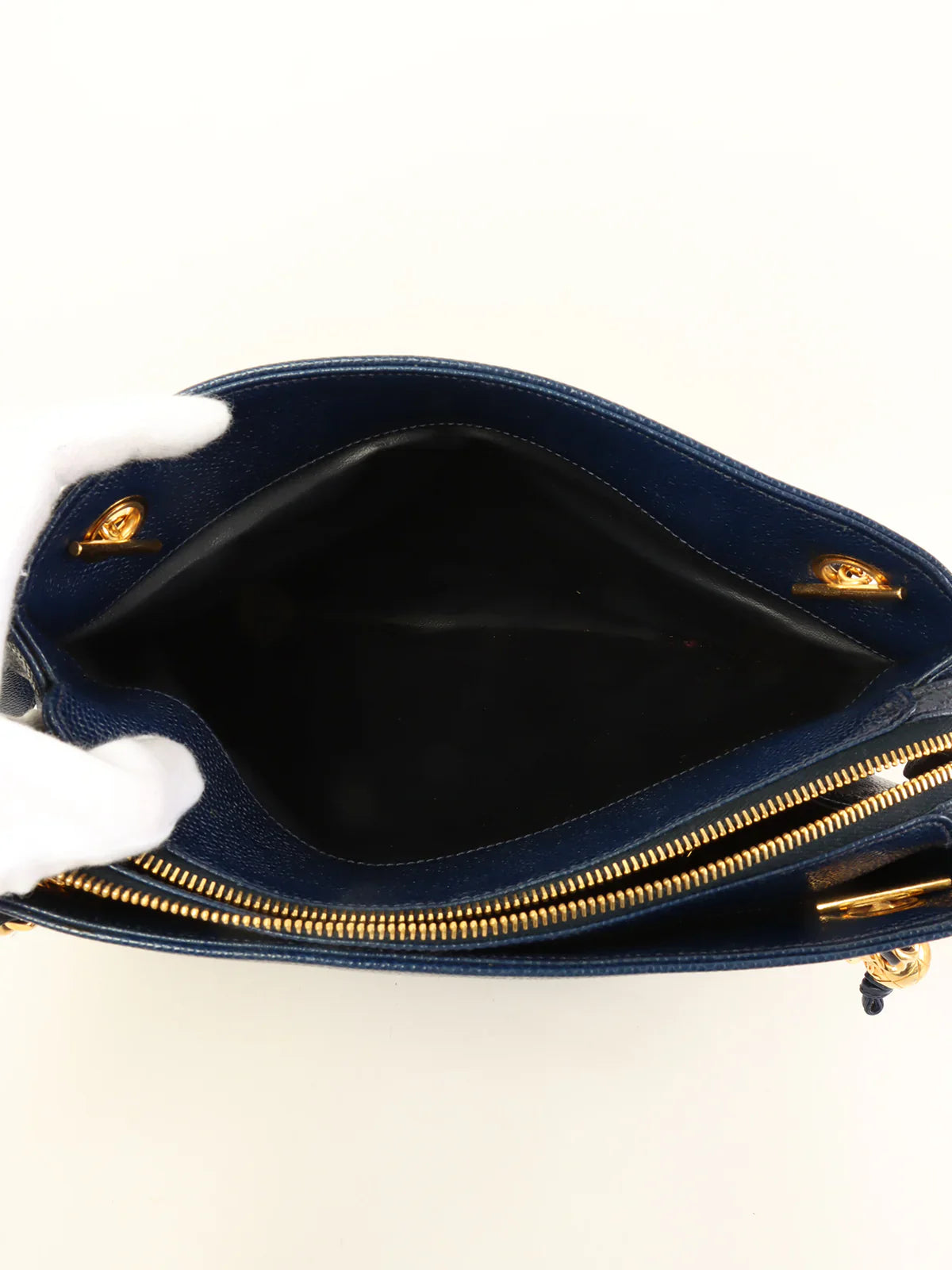 CHANEL Around 1992 Made Caviar Skin Cc Mark Stitch Chain Tote Bag Navy