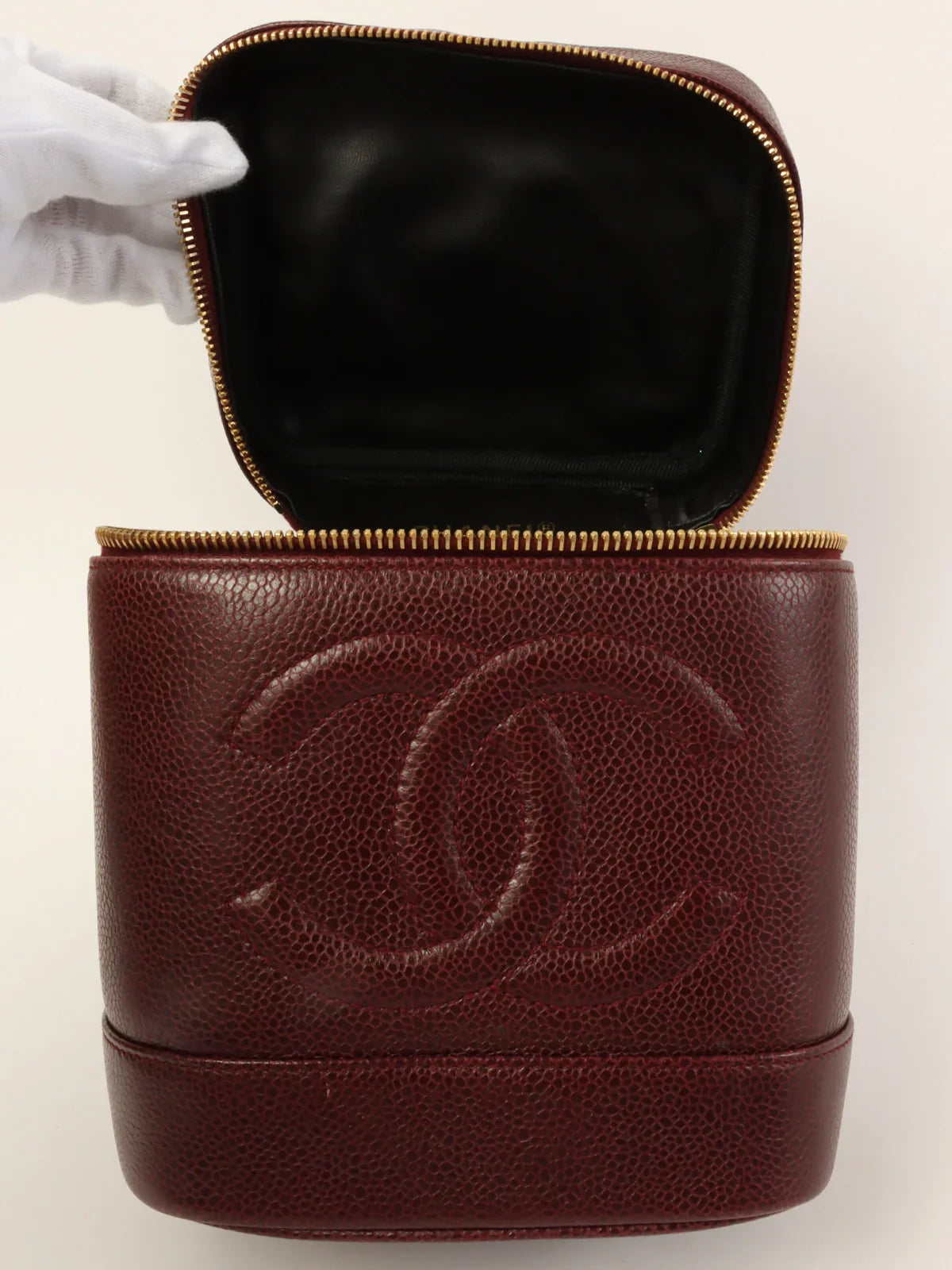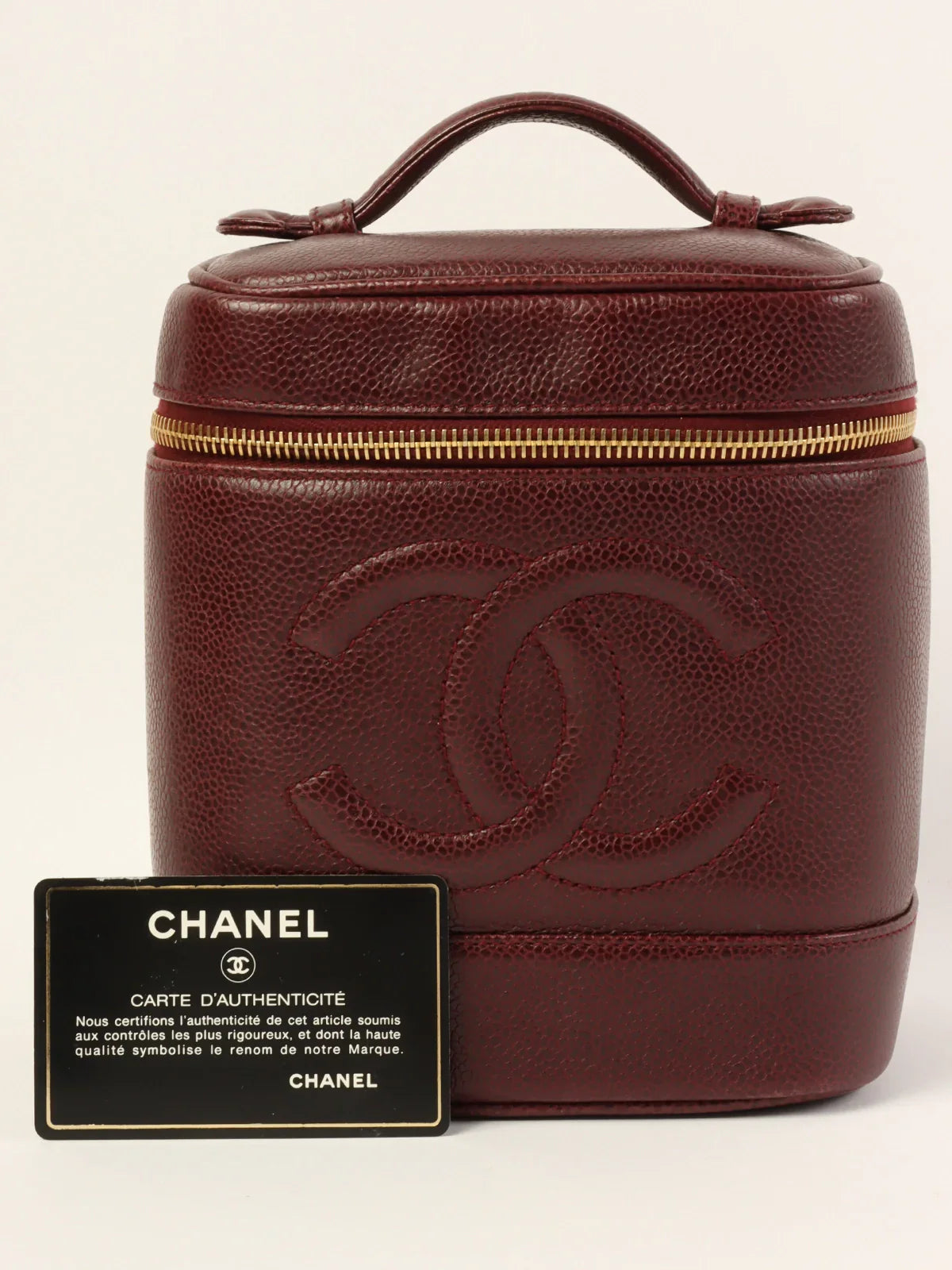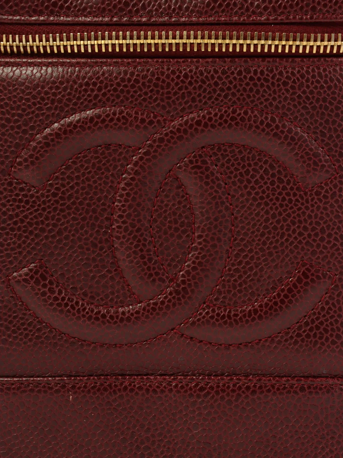 CHANEL Around 1992 Made Caviar Skin Cc Mark Stitch Vanity Bordeaux