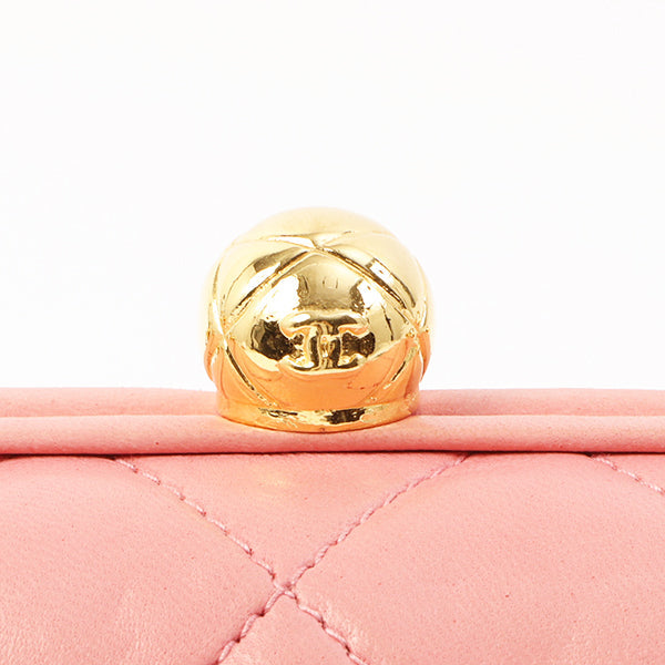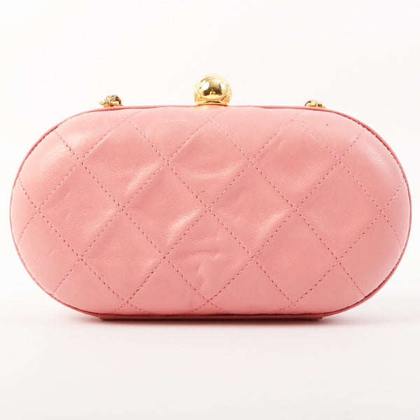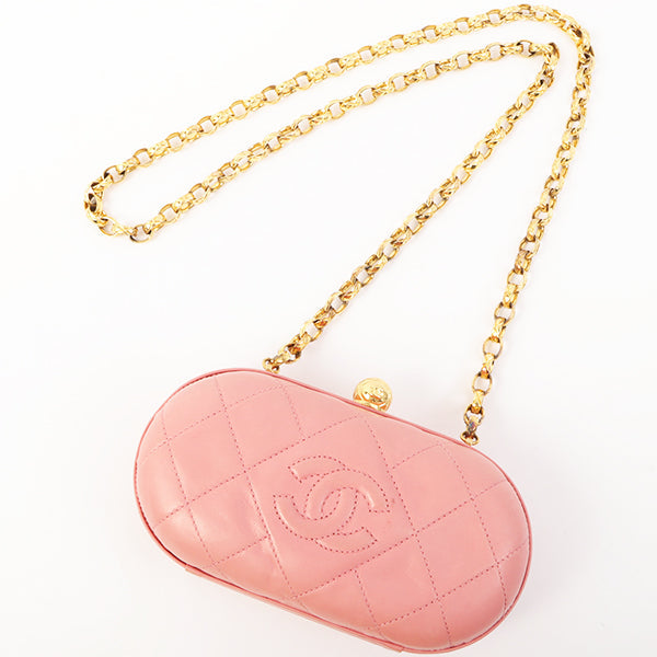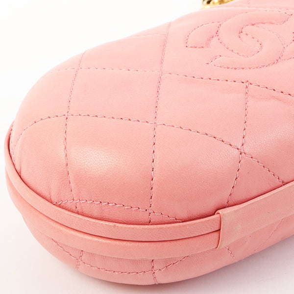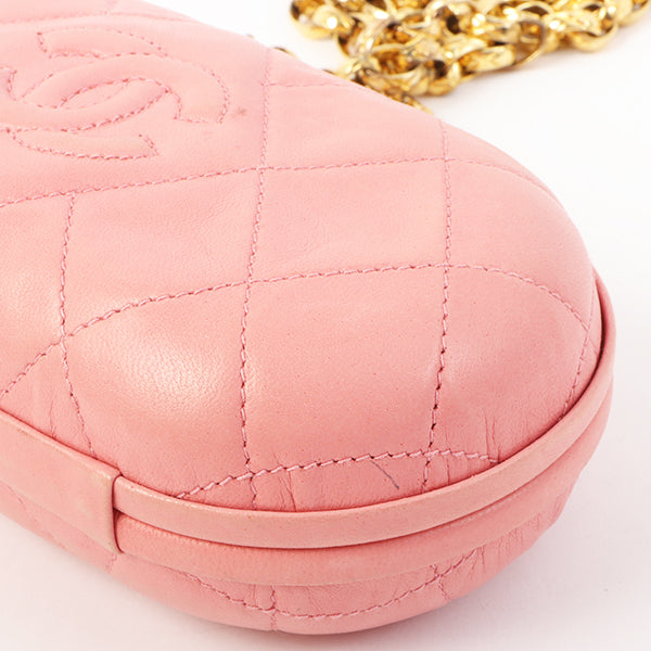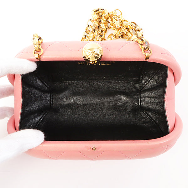 Chanel Around 1992 Made Cc Mark Stitch Metal Clasp Mini Chain Shoulder Bag Pink