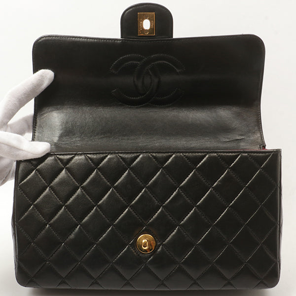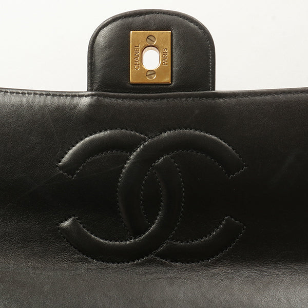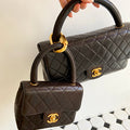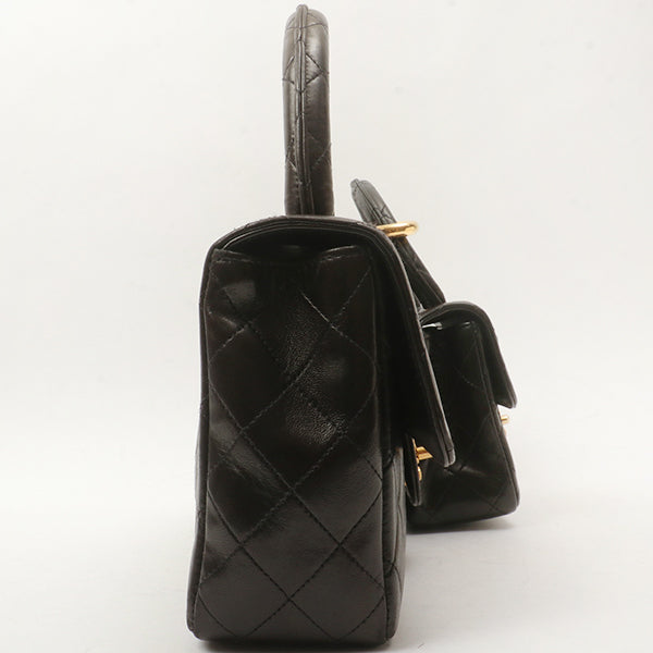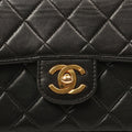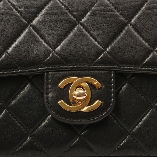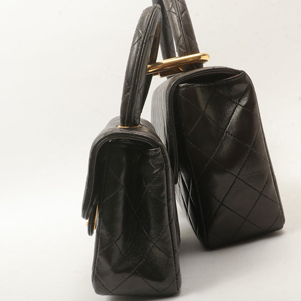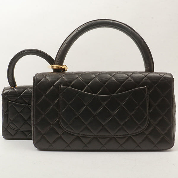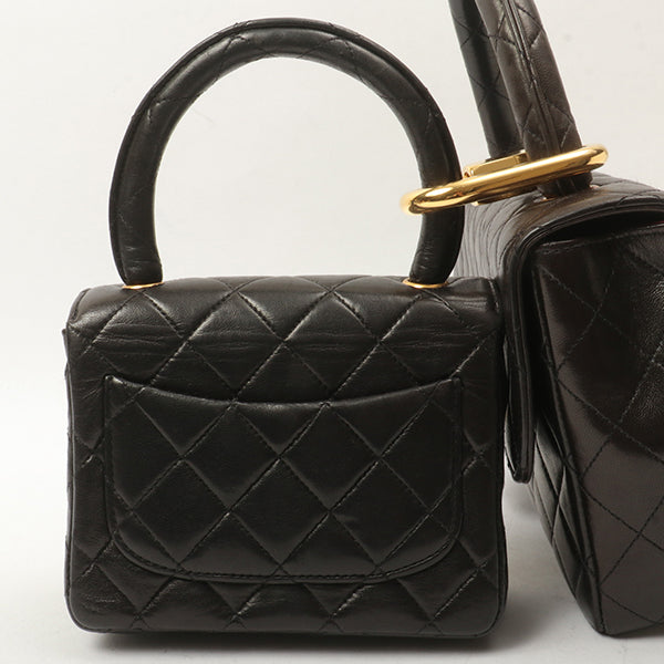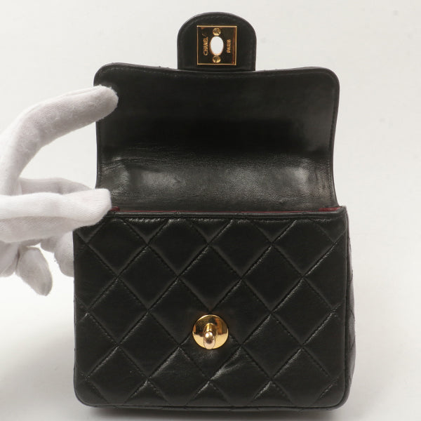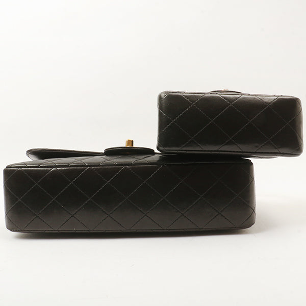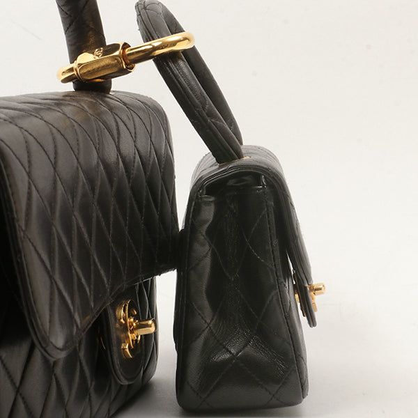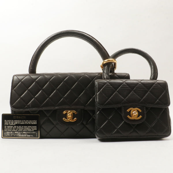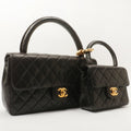 Chanel Around 1992 Made Classic Flap Handbag With Micro Bag Black