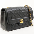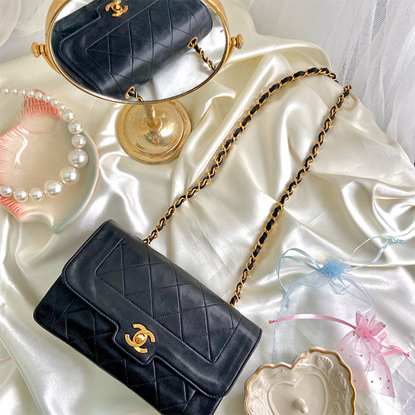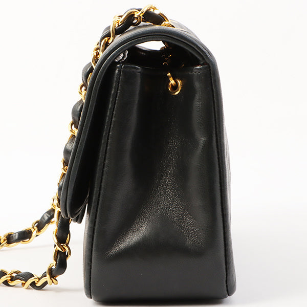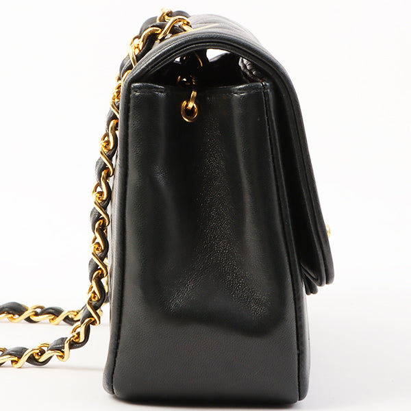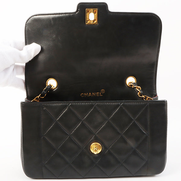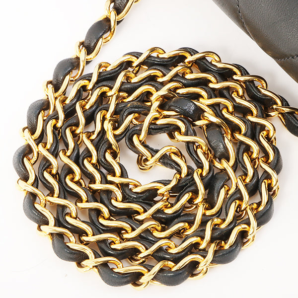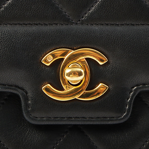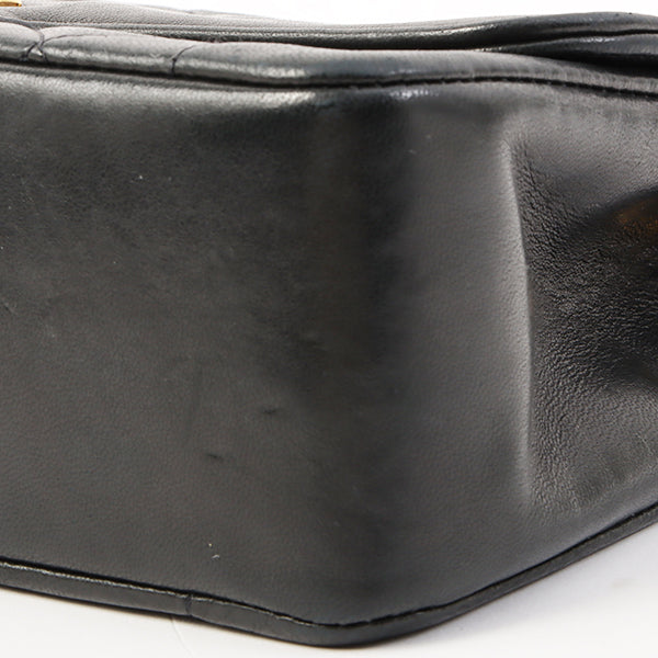 Chanel Around 1992 Made Edge Design Flap Turn-Lock Chain Bag Black