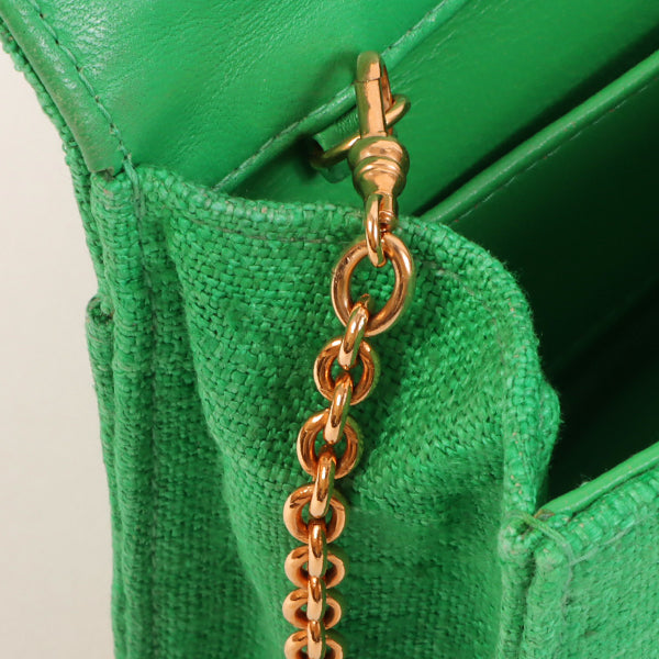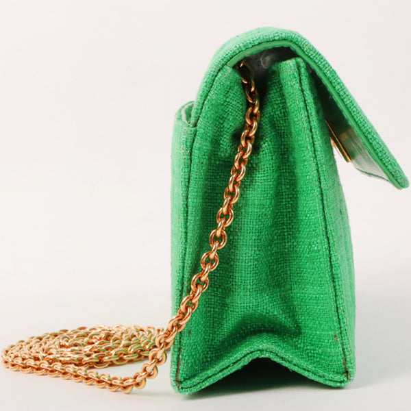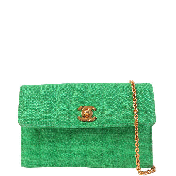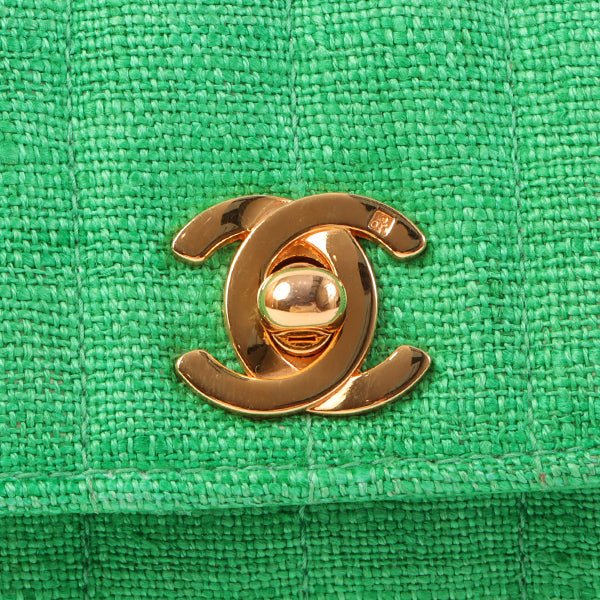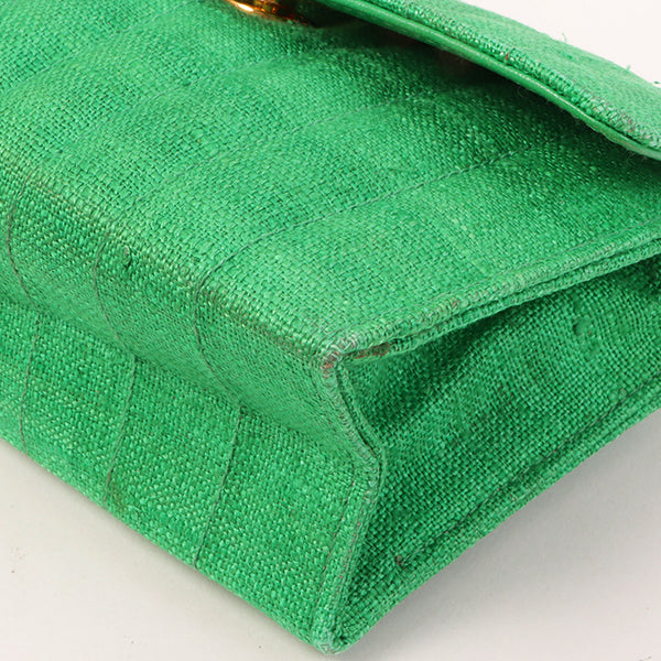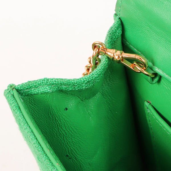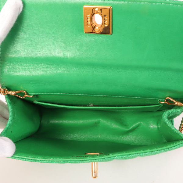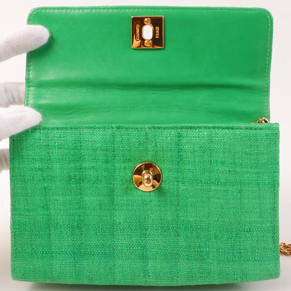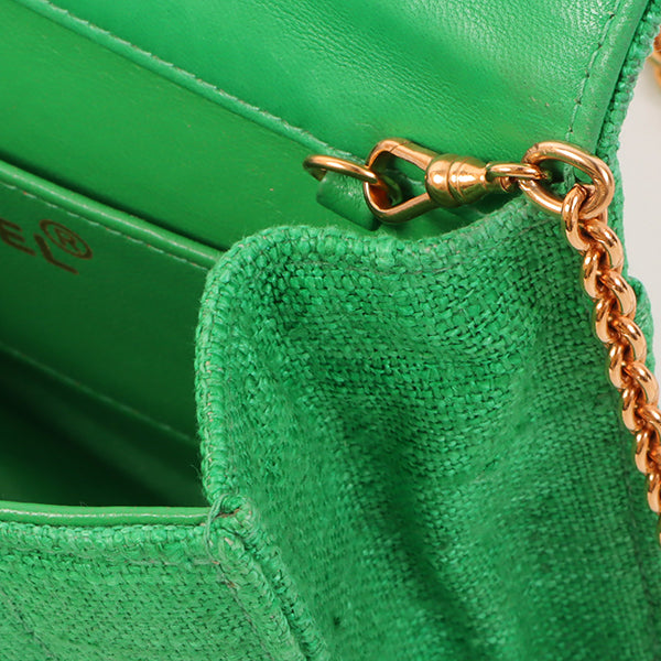 Chanel Around 1992 Made Linen Mademoiselle Stitch Turn-Lock Chain Bag Mini Green