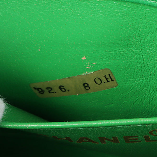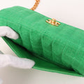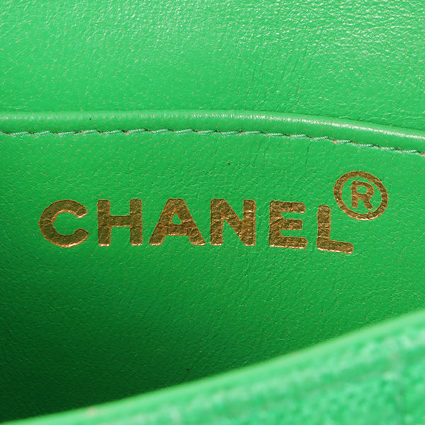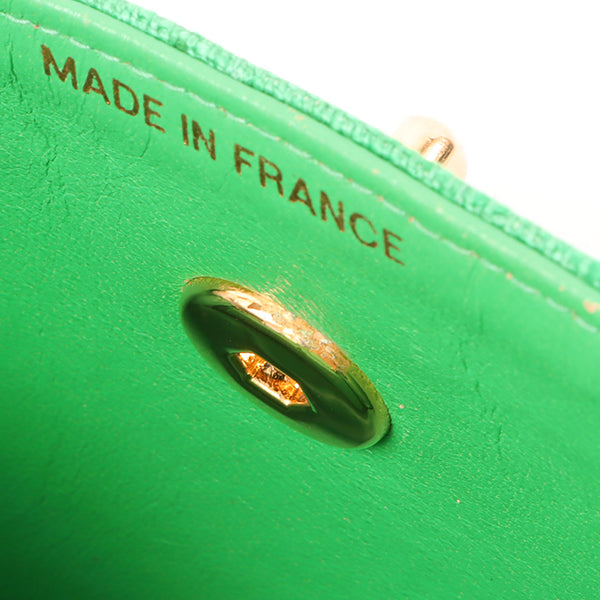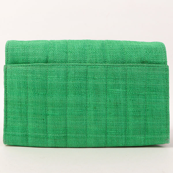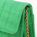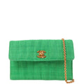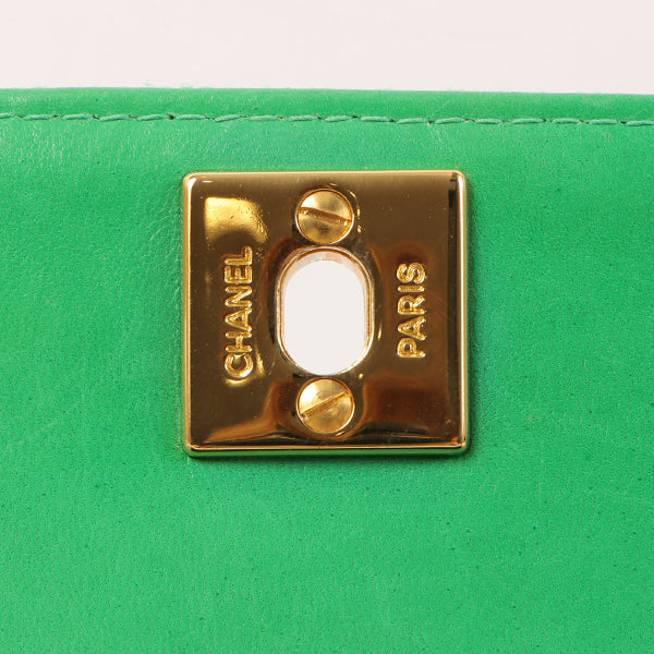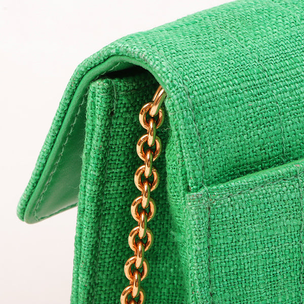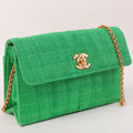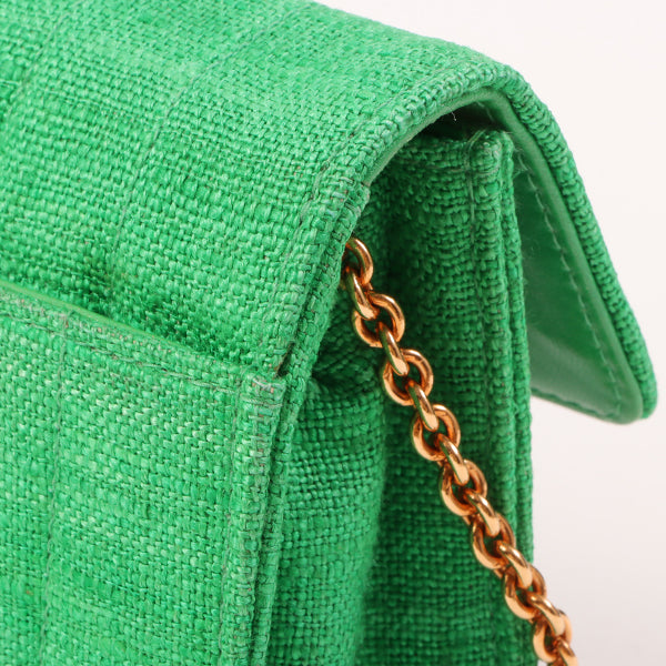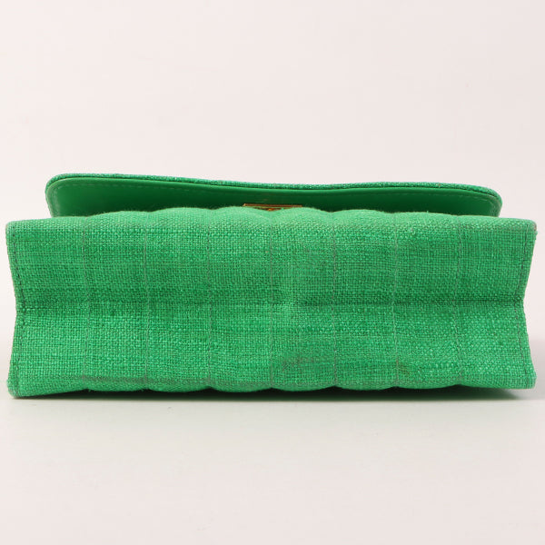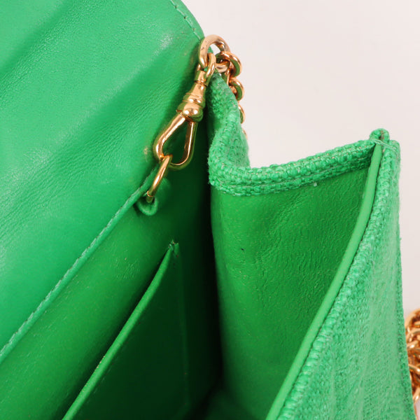 Chanel Around 1992 Made Linen Mademoiselle Stitch Turn-Lock Chain Bag Mini Green
