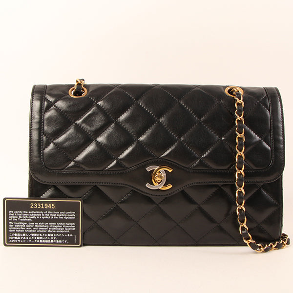 CHANEL Around 1992 Made Paris Limited Design Flap Chain Bag Black
