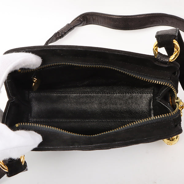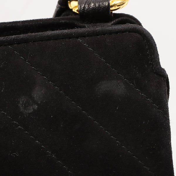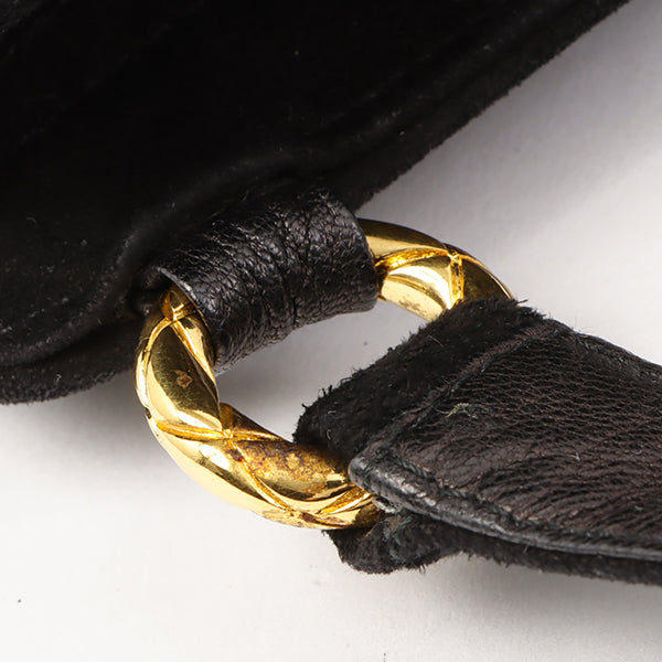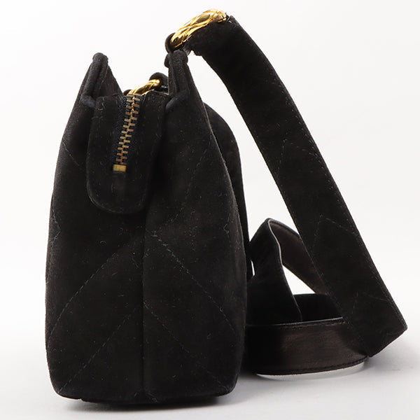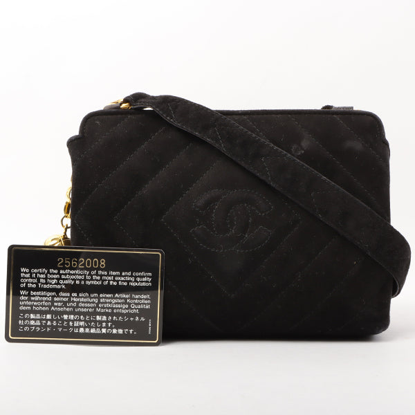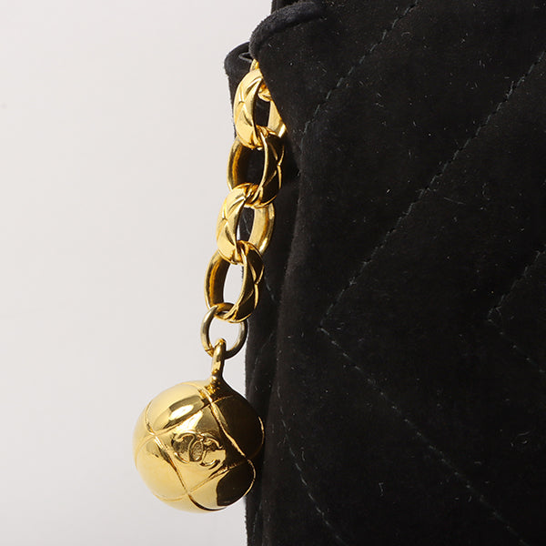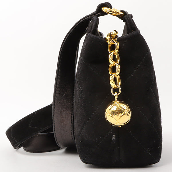 Chanel Around 1992 Made Suede Cc Mark Stitch Ball Charm Shoulder Bag Black