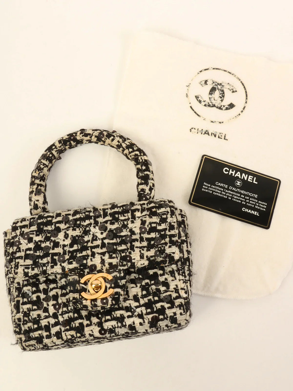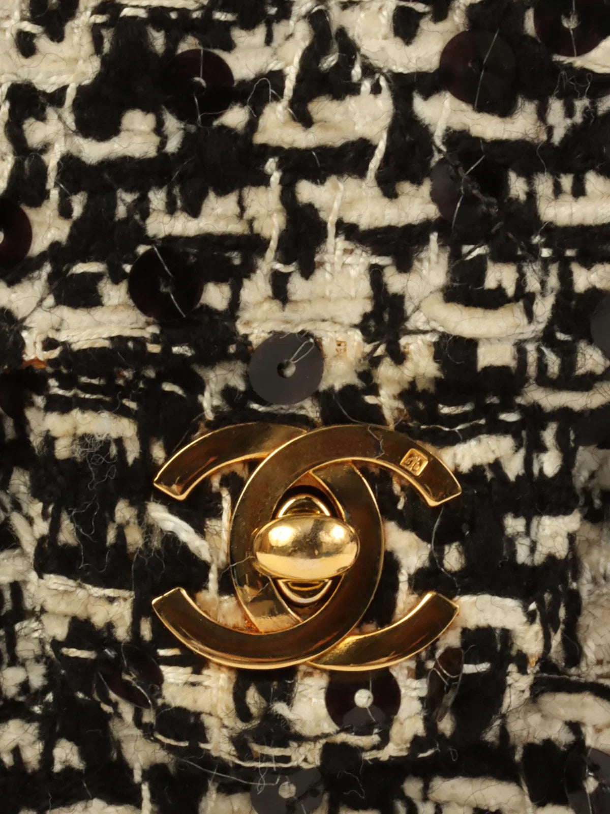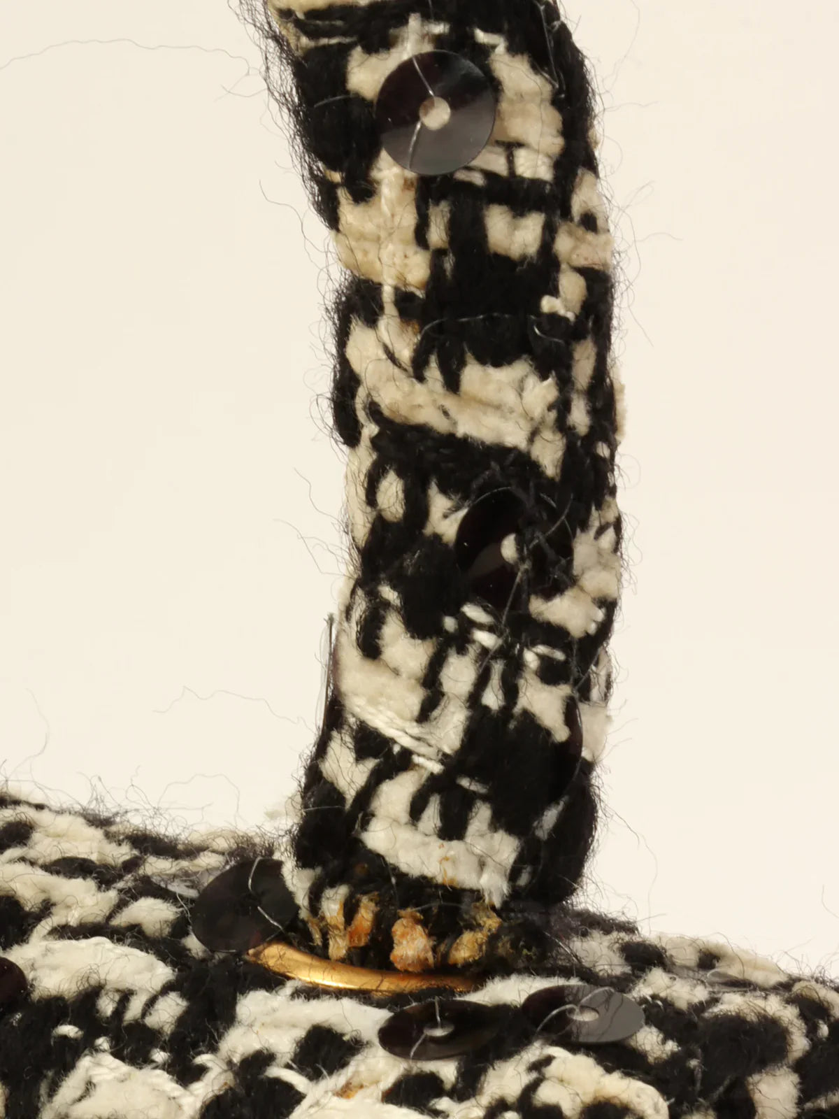 CHANEL Around 1992 Made Tweed Sequin Classic Flap Top Handle Bag Mini Black/White