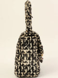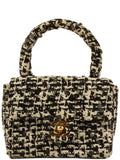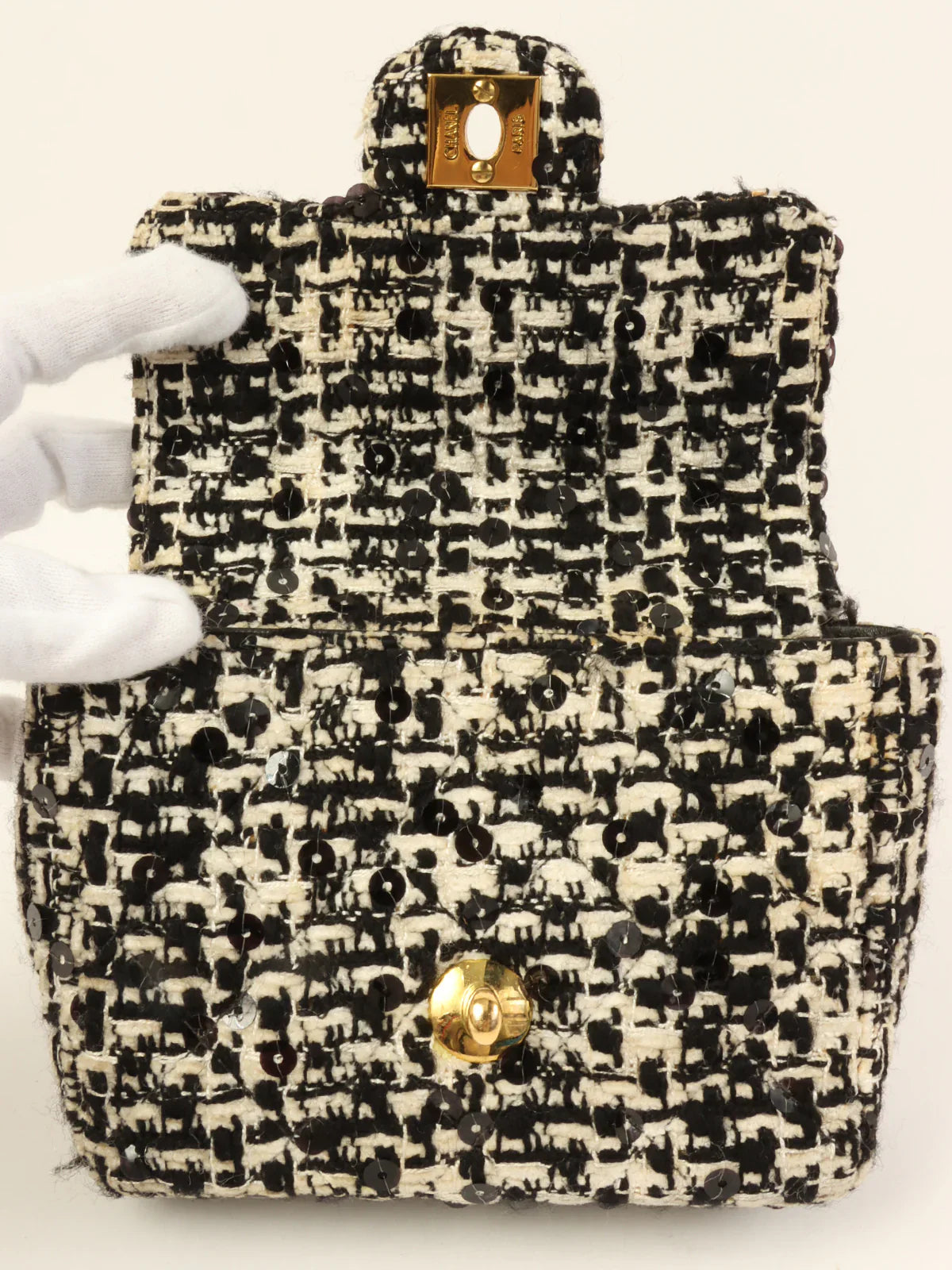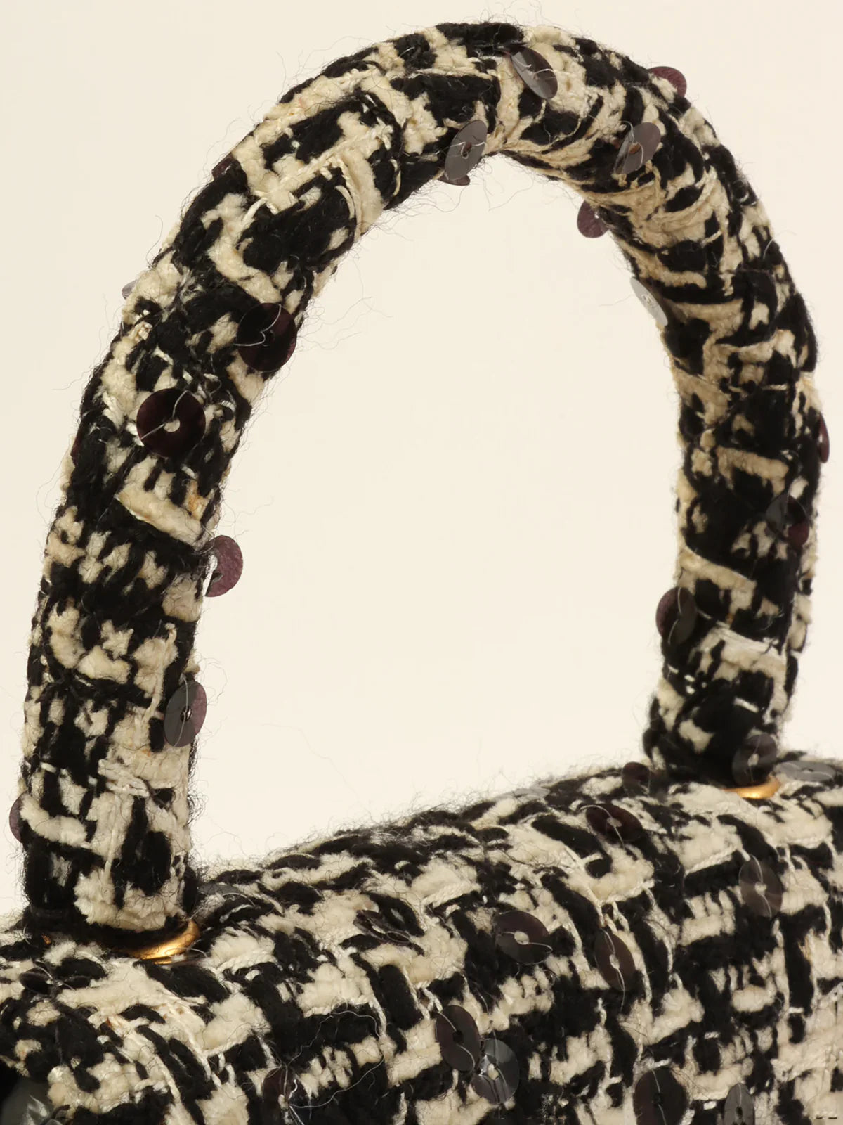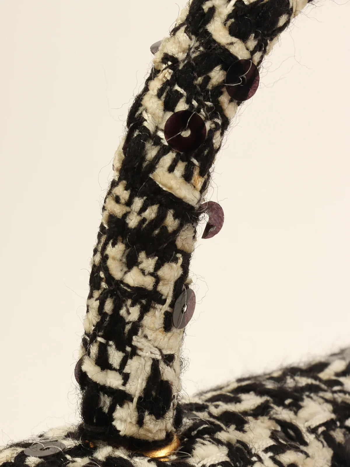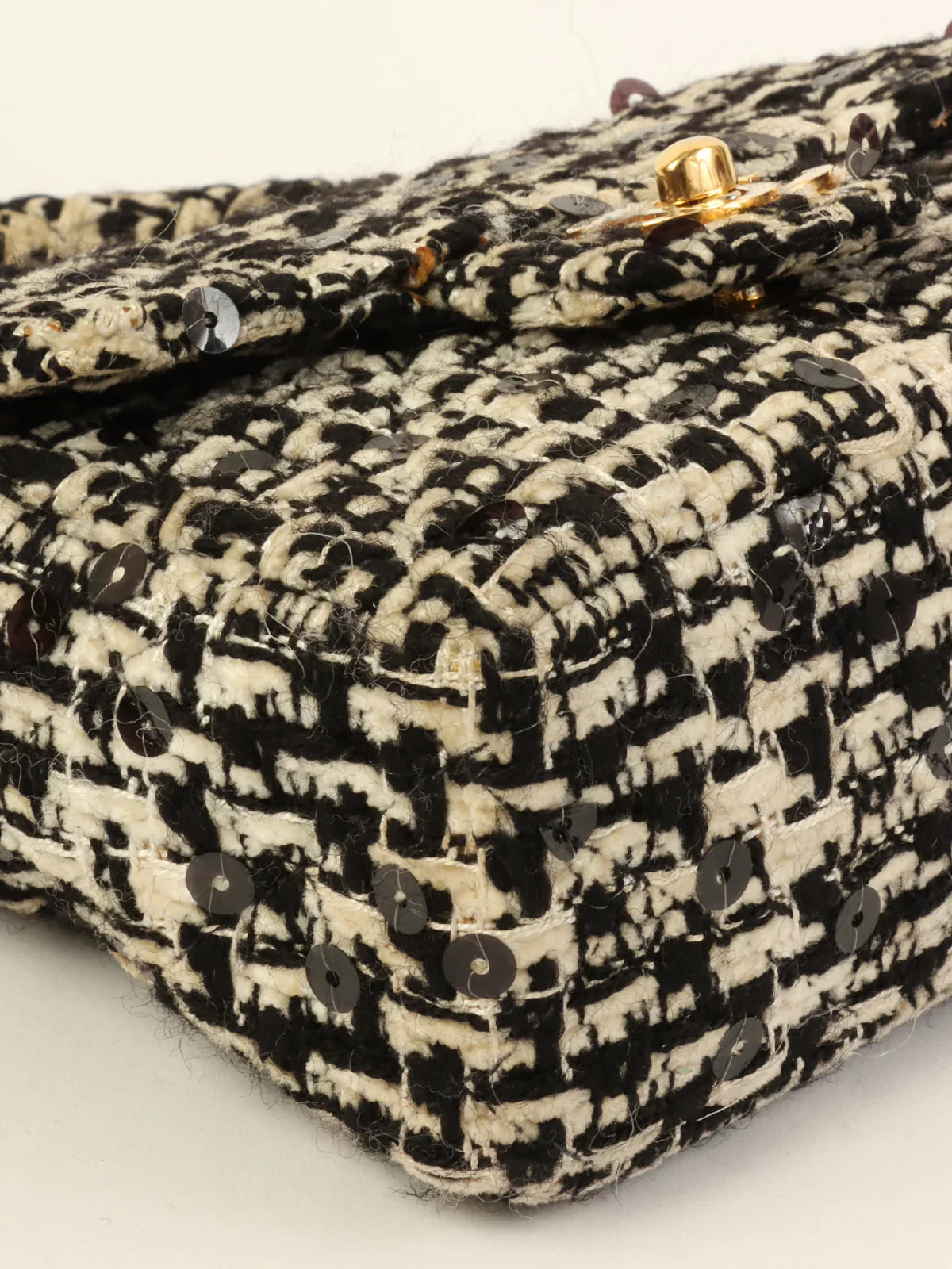 CHANEL Around 1992 Made Tweed Sequin Classic Flap Top Handle Bag Mini Black/White