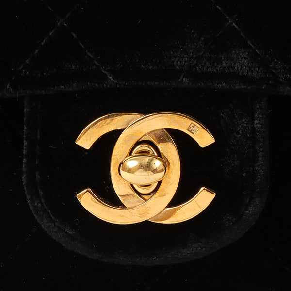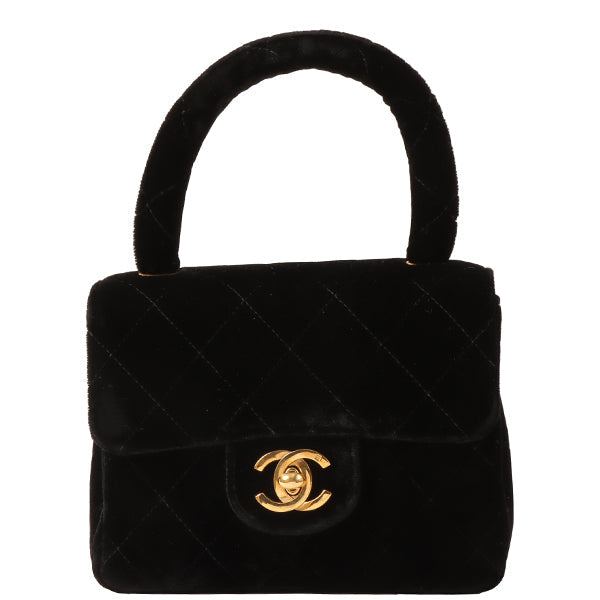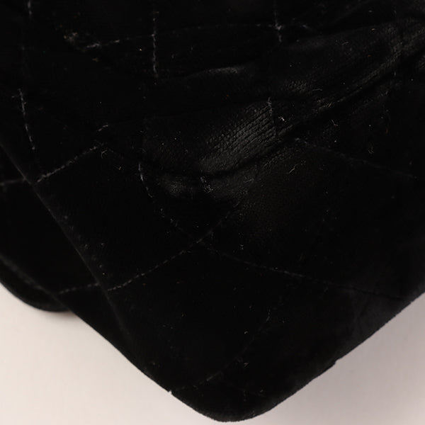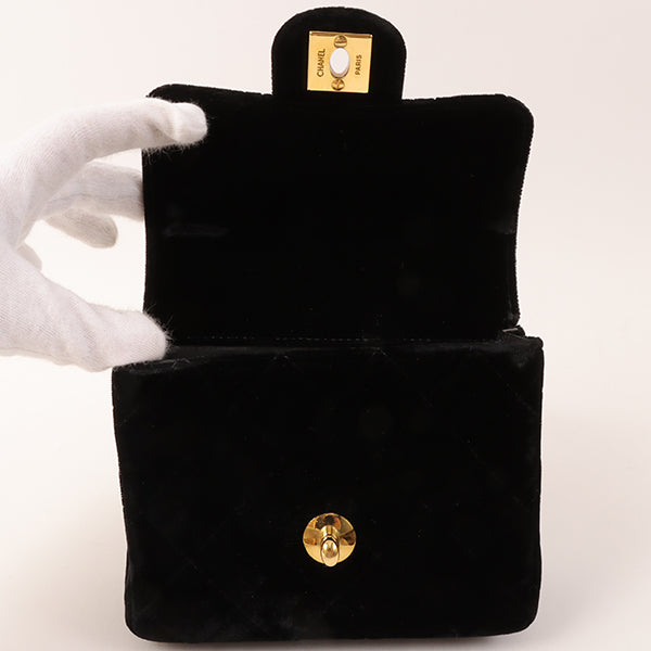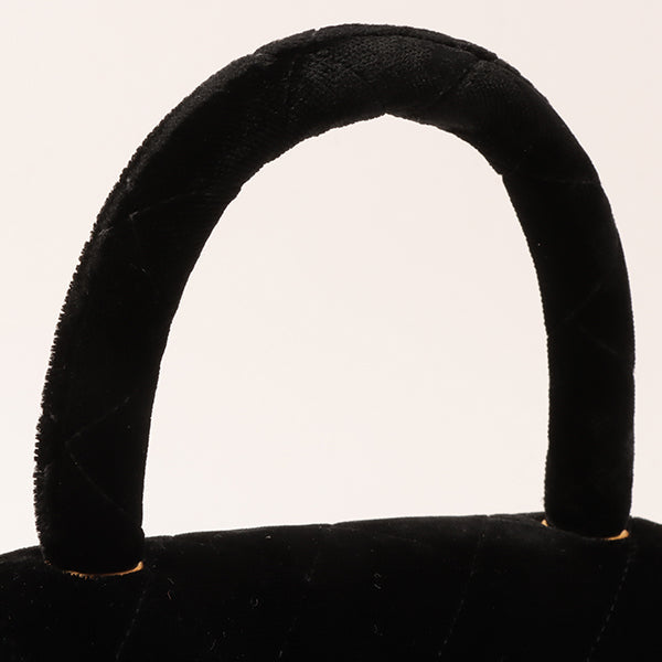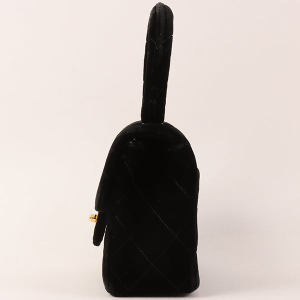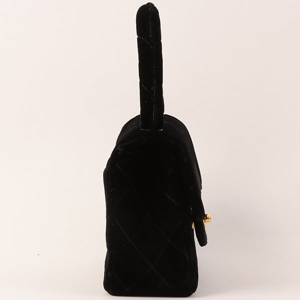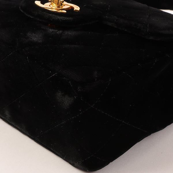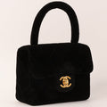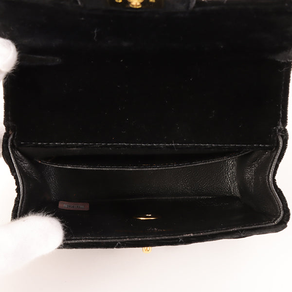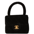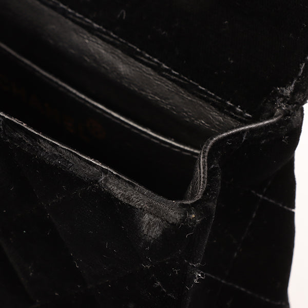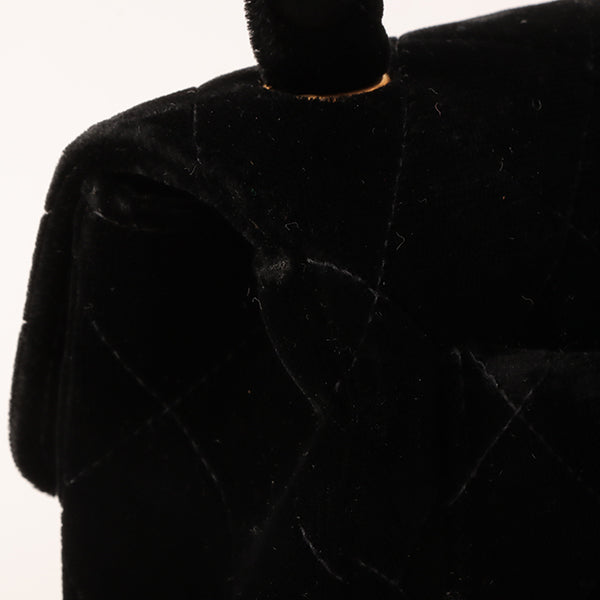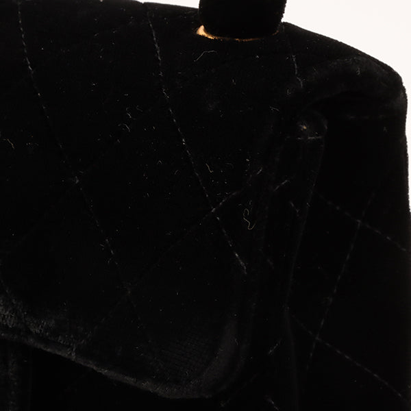 CHANEL Around 1992 Made Velour Classic Flap Top Handle Bag Mini Black