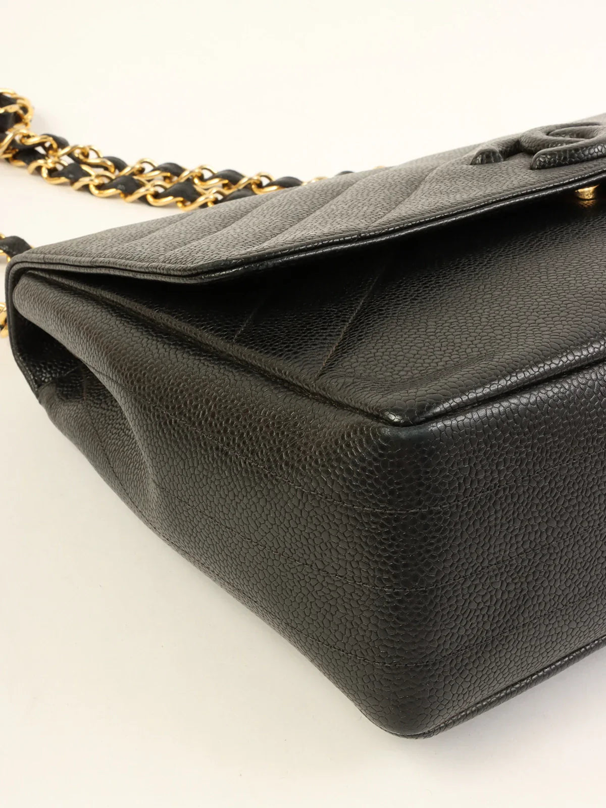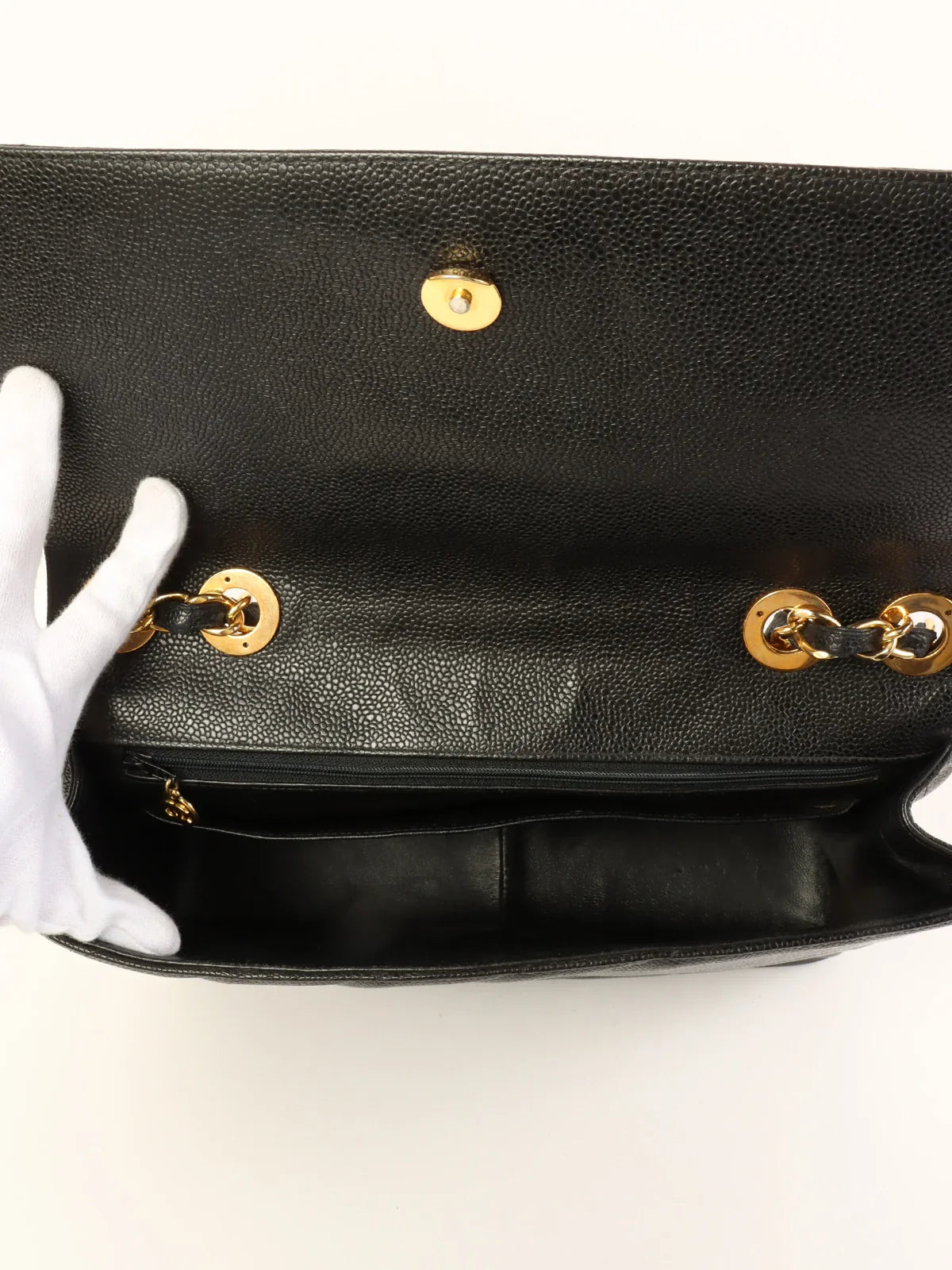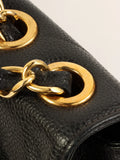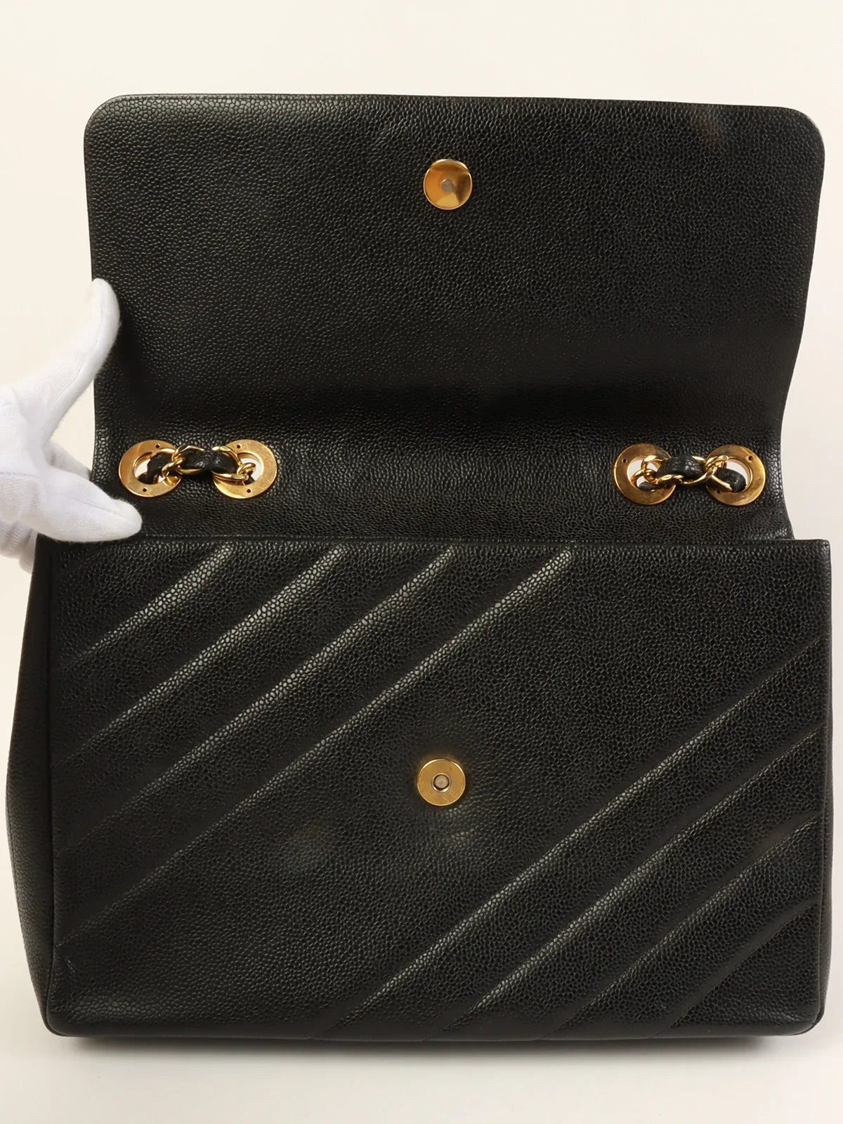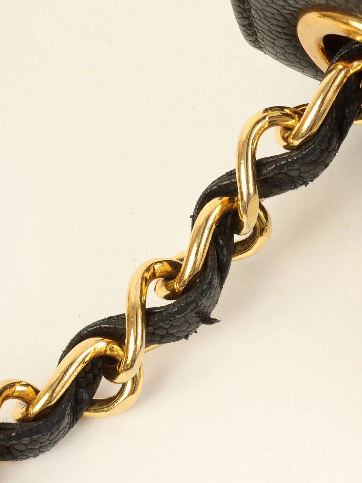 CHANEL Around 1995 Made Caviar Skin Cc Mark Diagonal Stitch Chain Bag Black