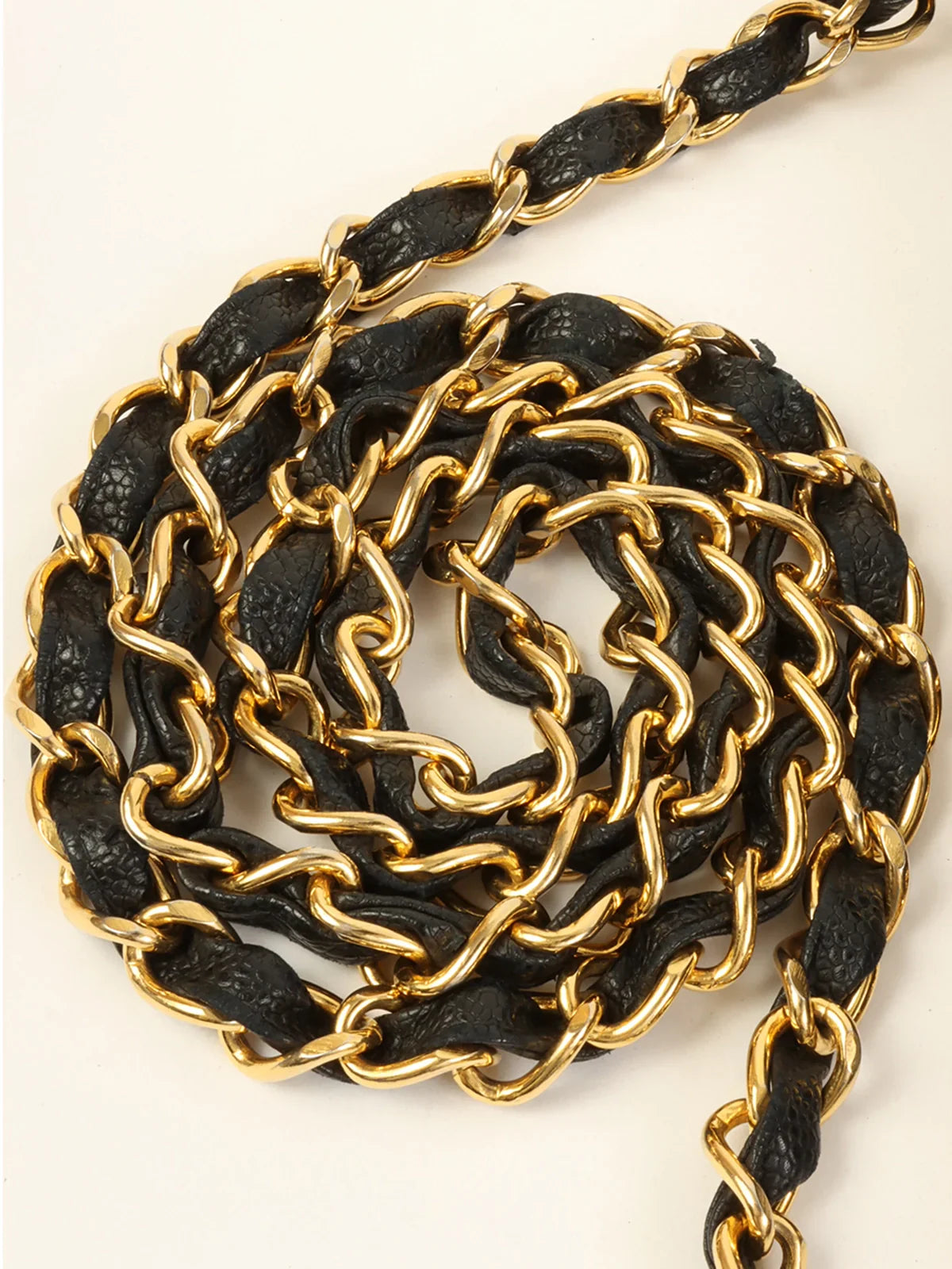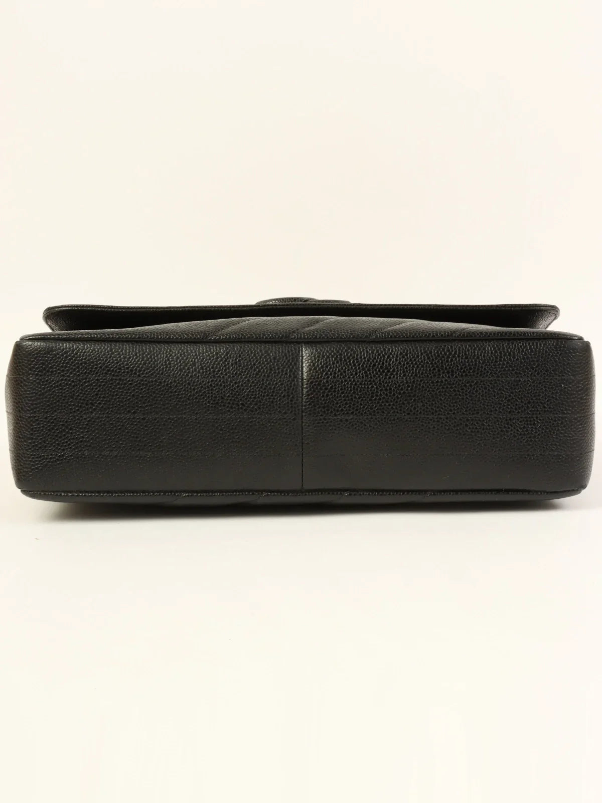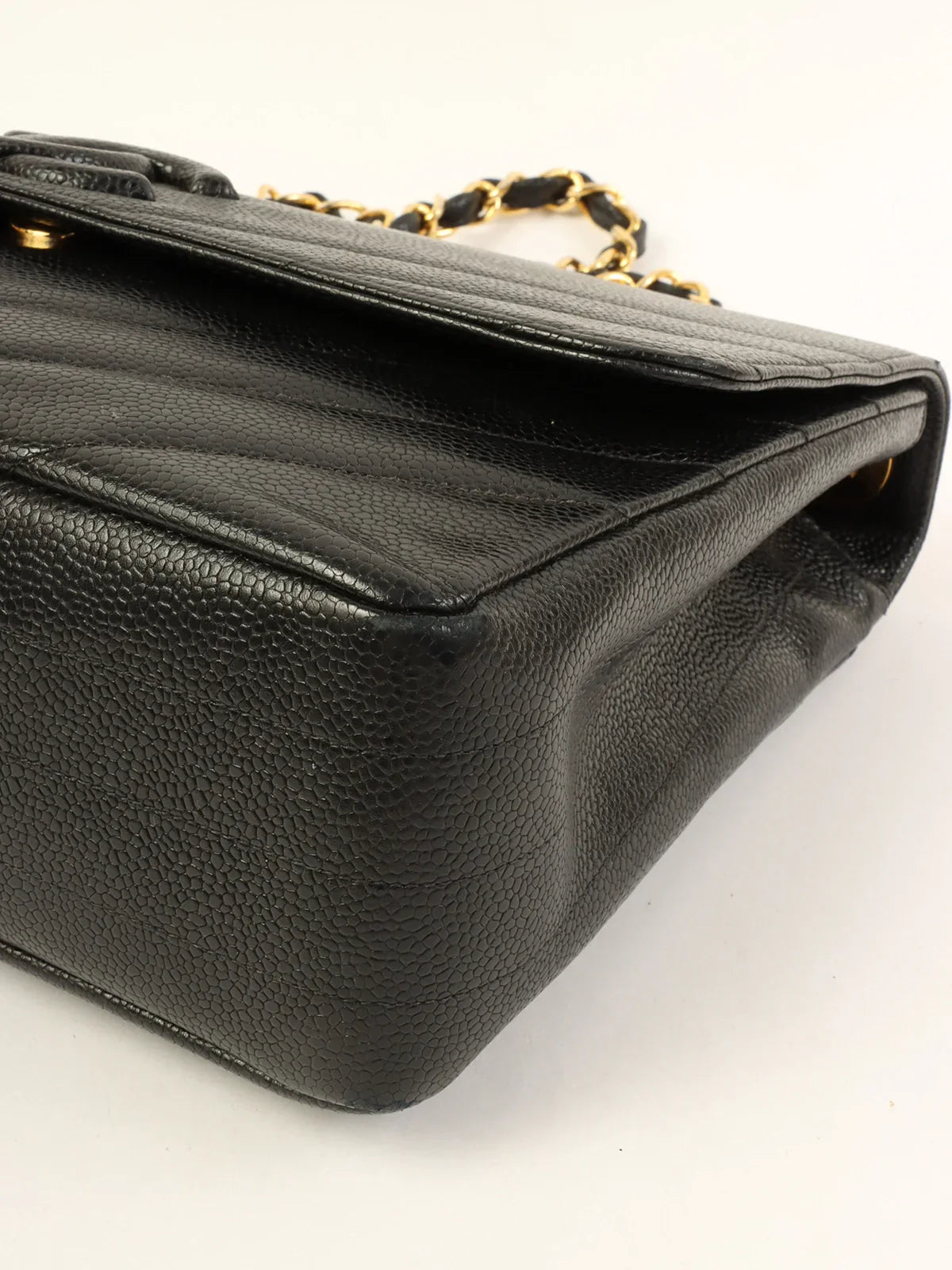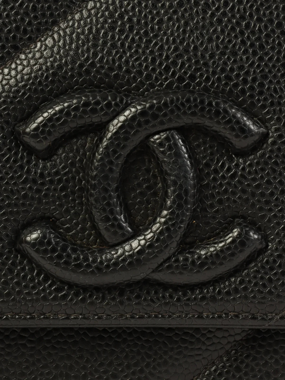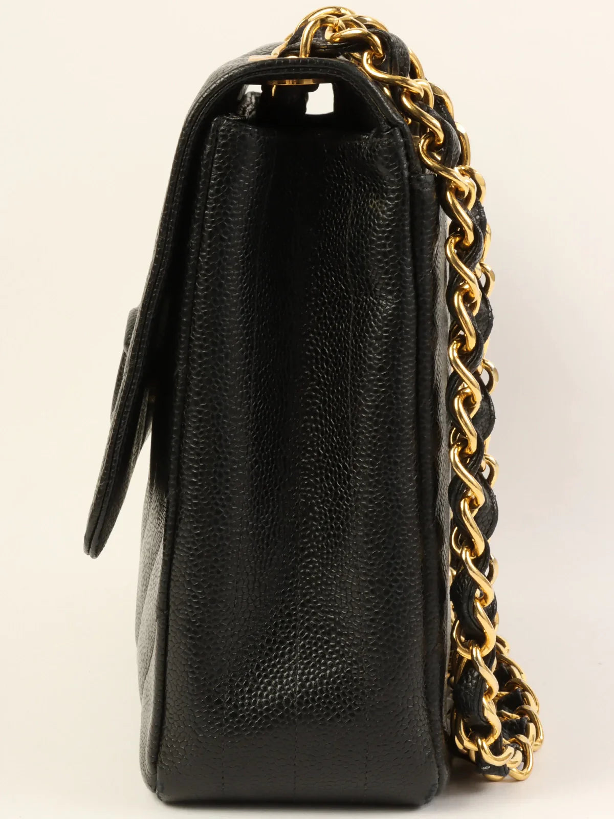CHANEL Around 1995 Made Caviar Skin Cc Mark Diagonal Stitch Chain Bag Black