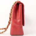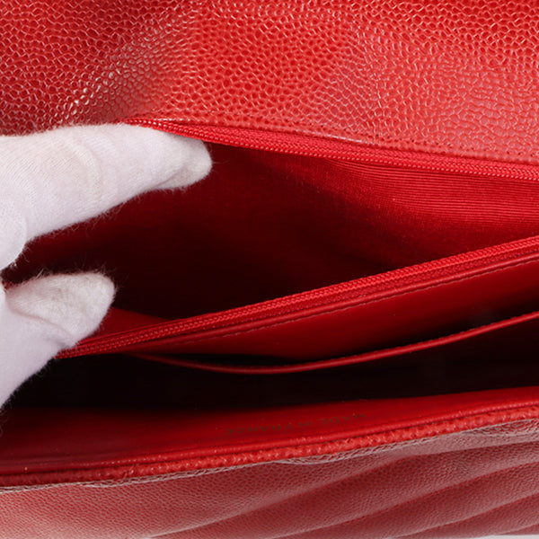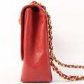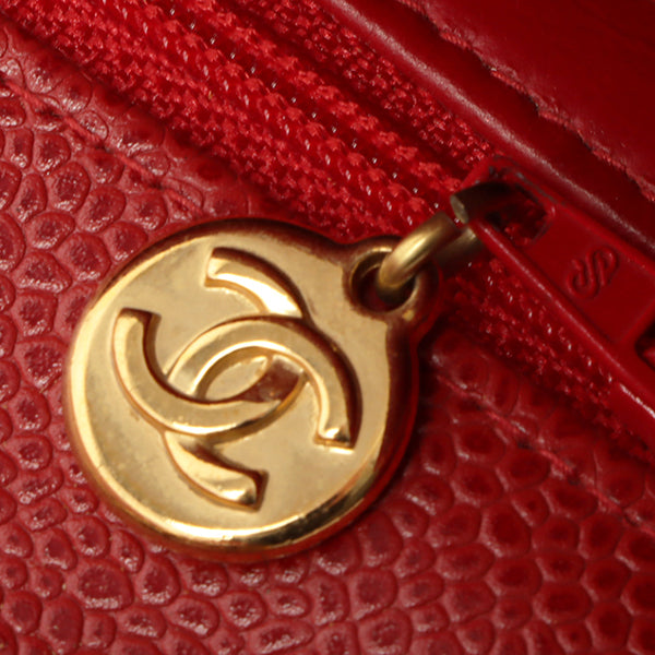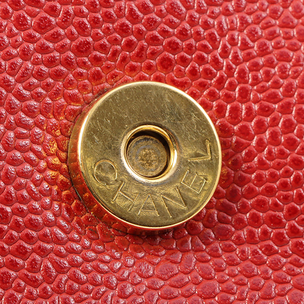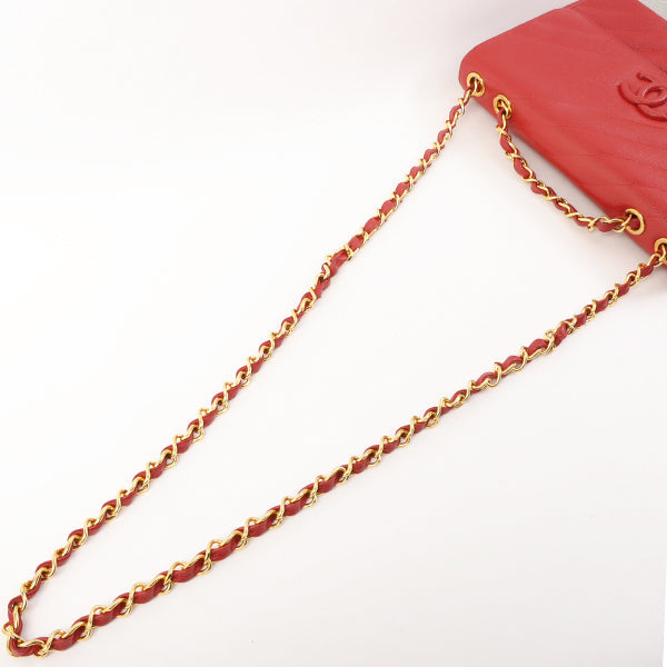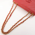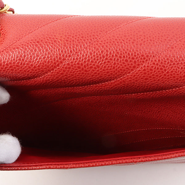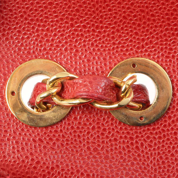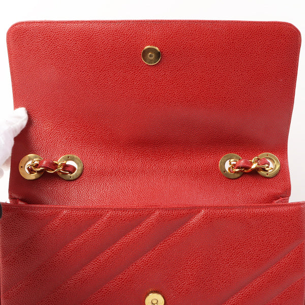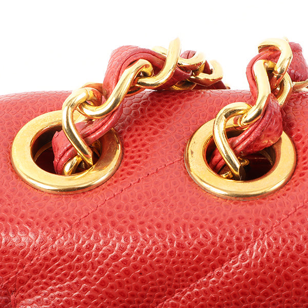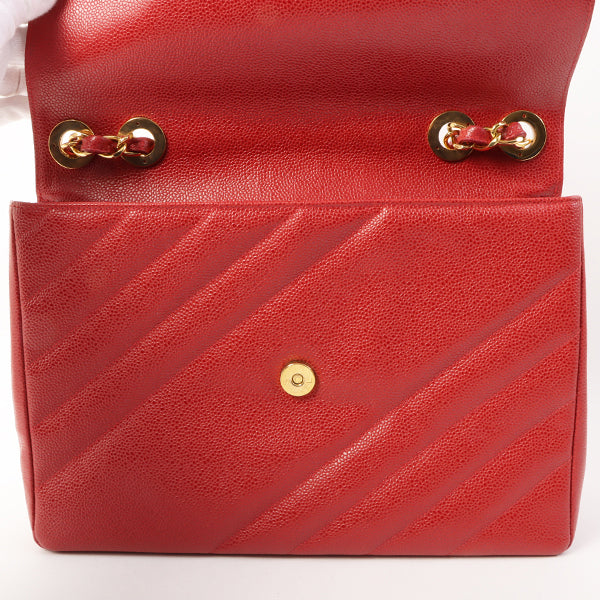 Chanel Around 1995 Made Caviar Skin Cc Mark Diagonal Stitch Chain Bag Red
