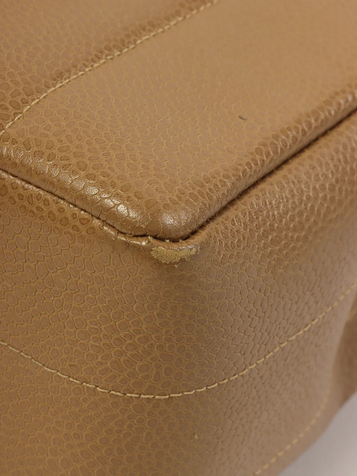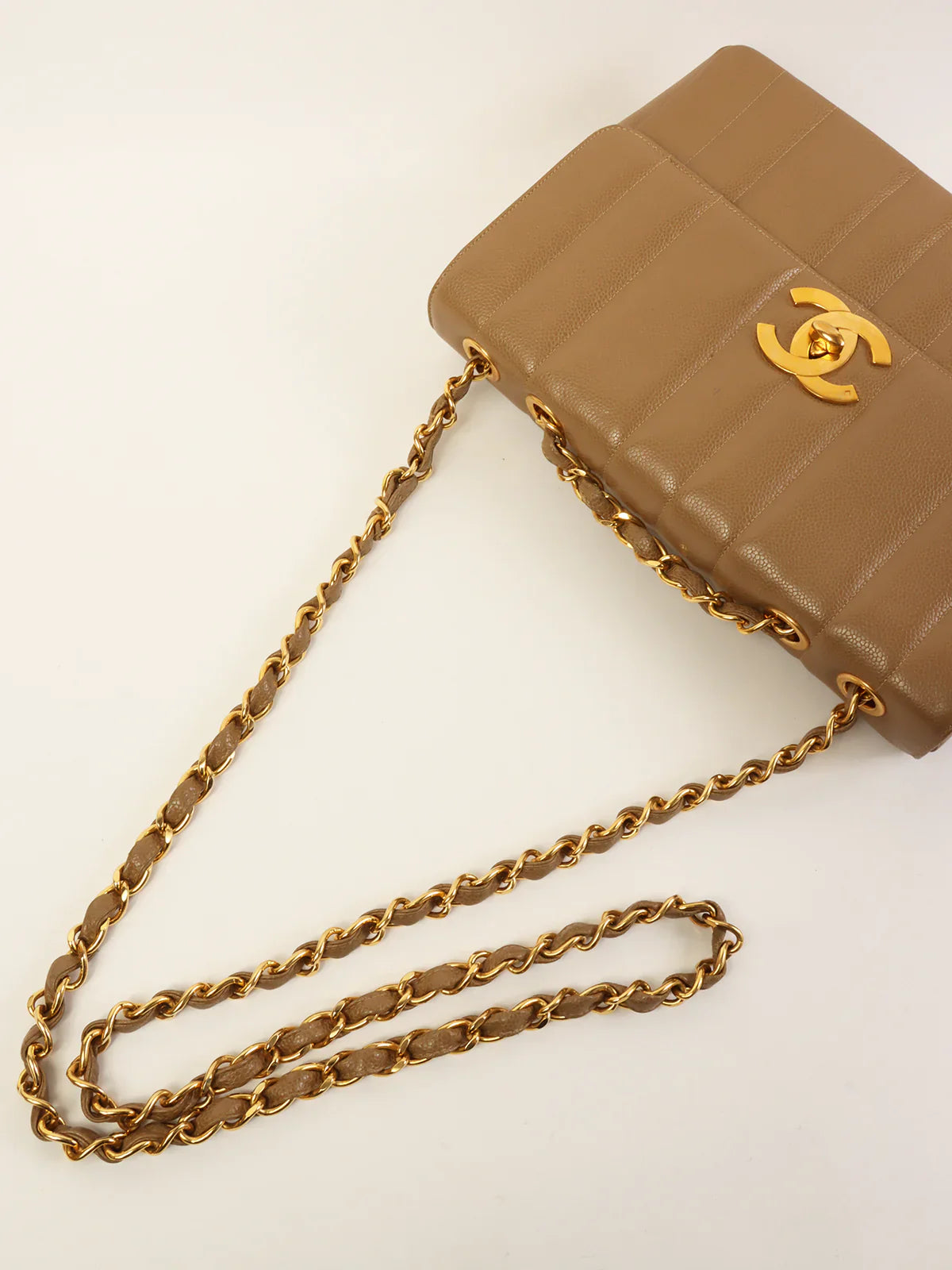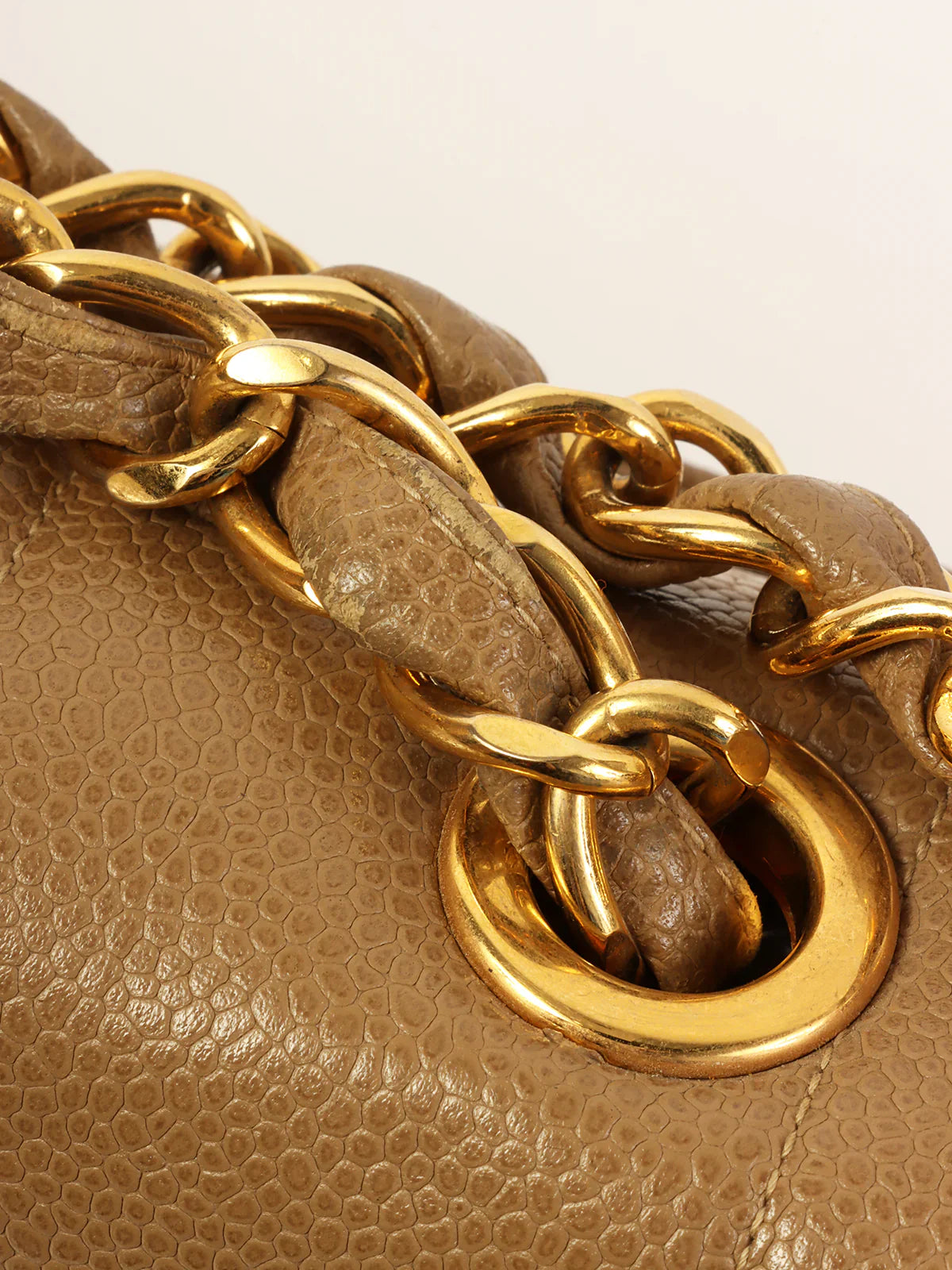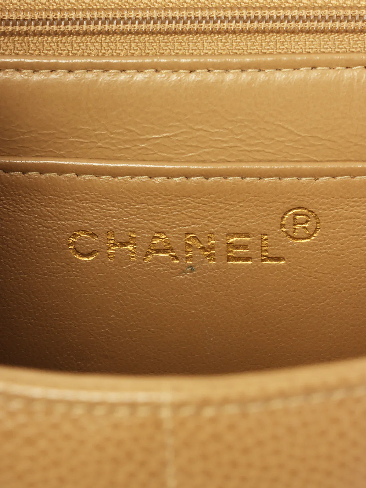 CHANEL Around 1995 Made Caviar Skin Mademoiselle Stitch Turn-Lock Chain Bag Mocha Beige