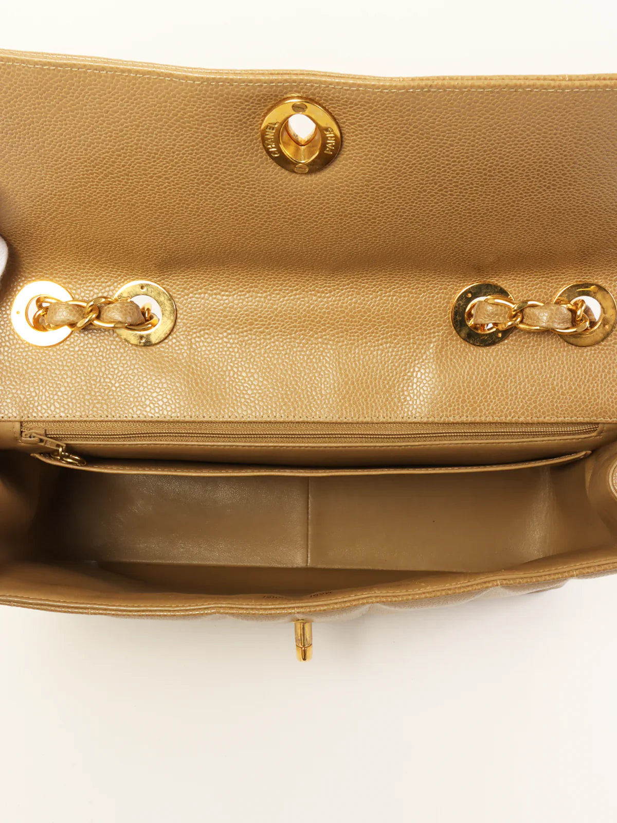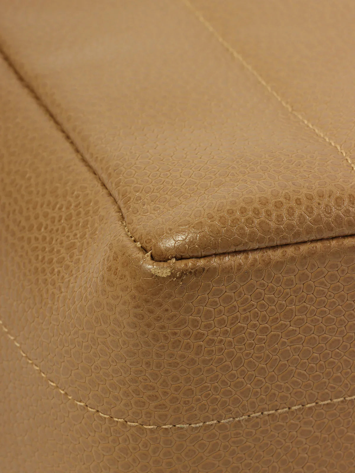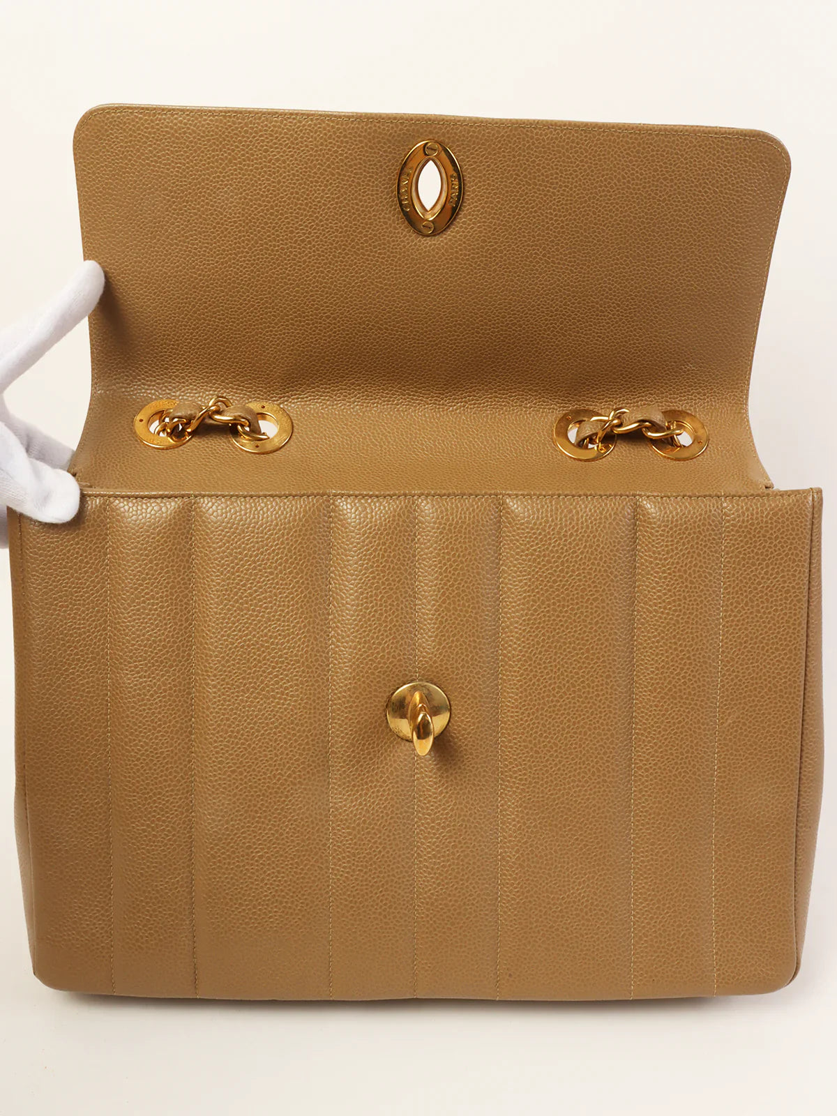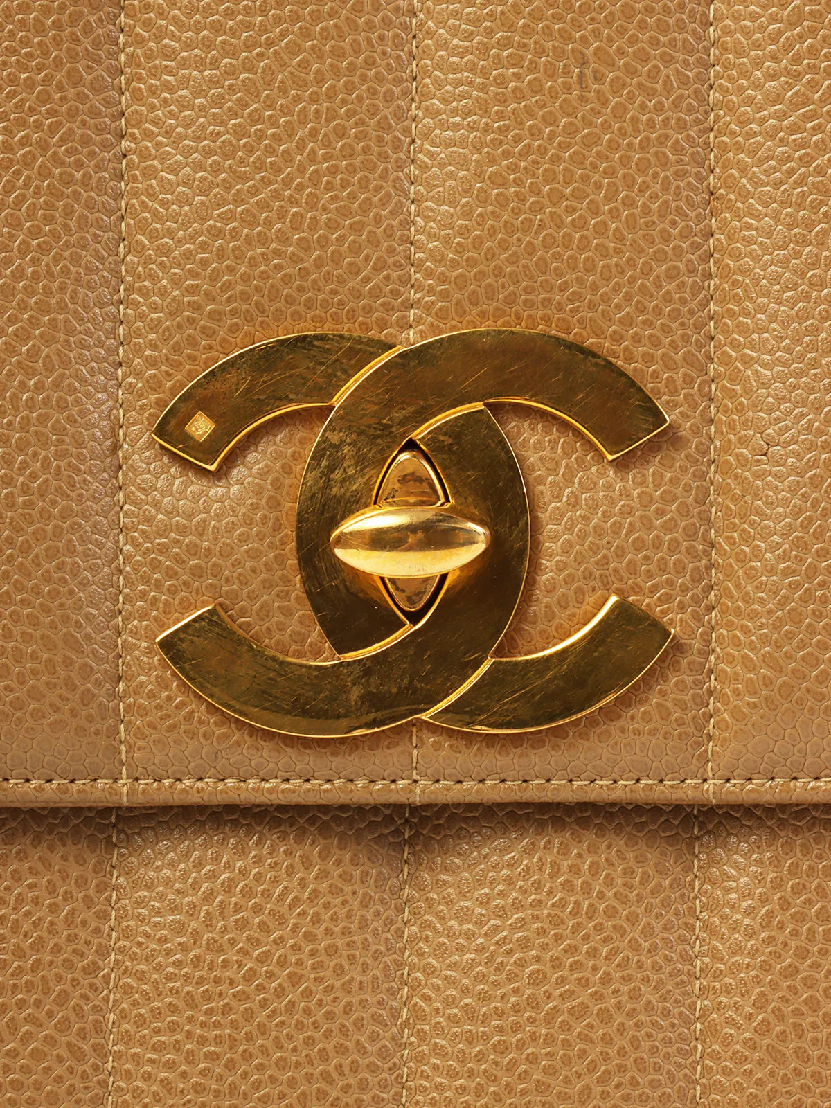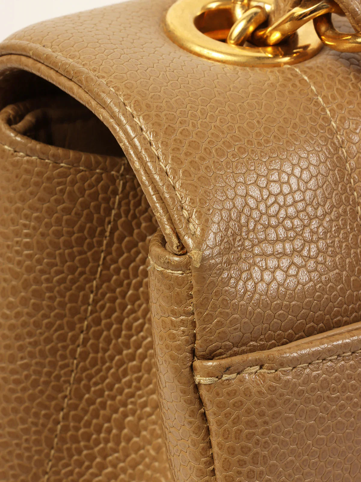 CHANEL Around 1995 Made Caviar Skin Mademoiselle Stitch Turn-Lock Chain Bag Mocha Beige