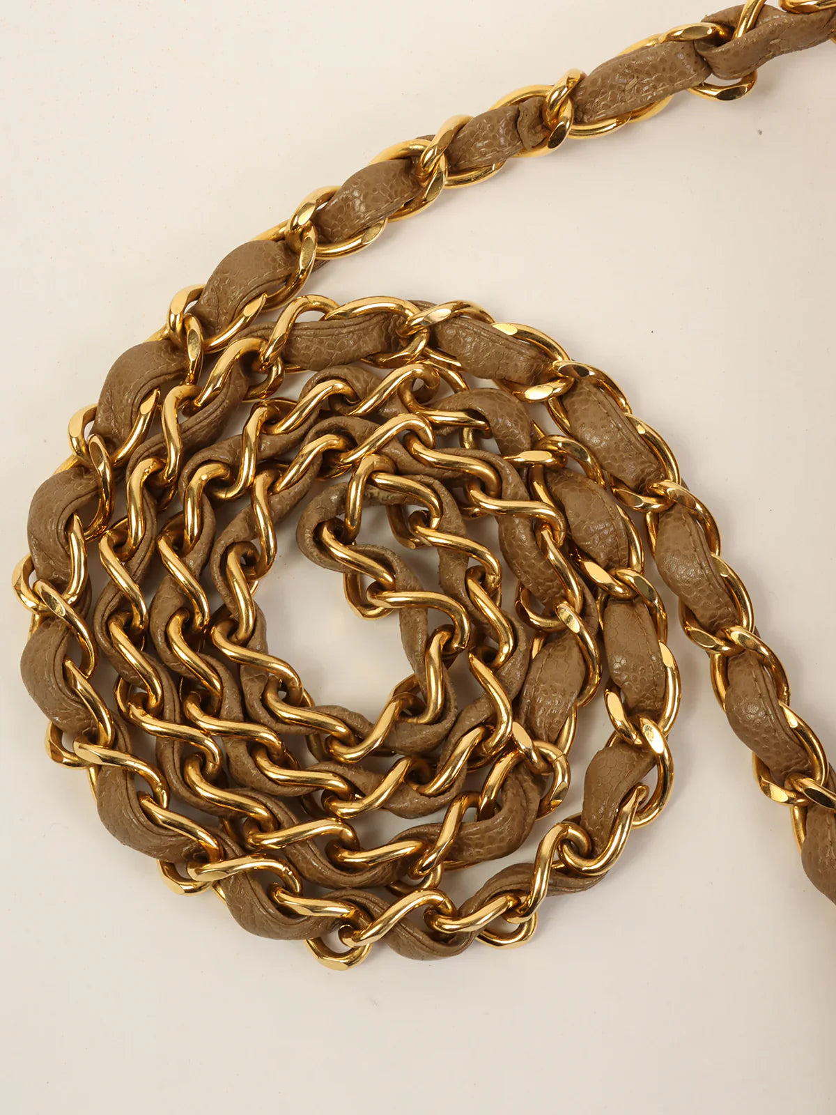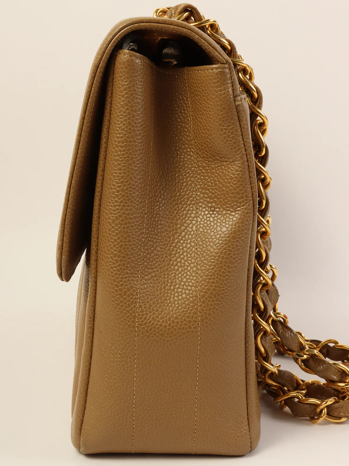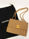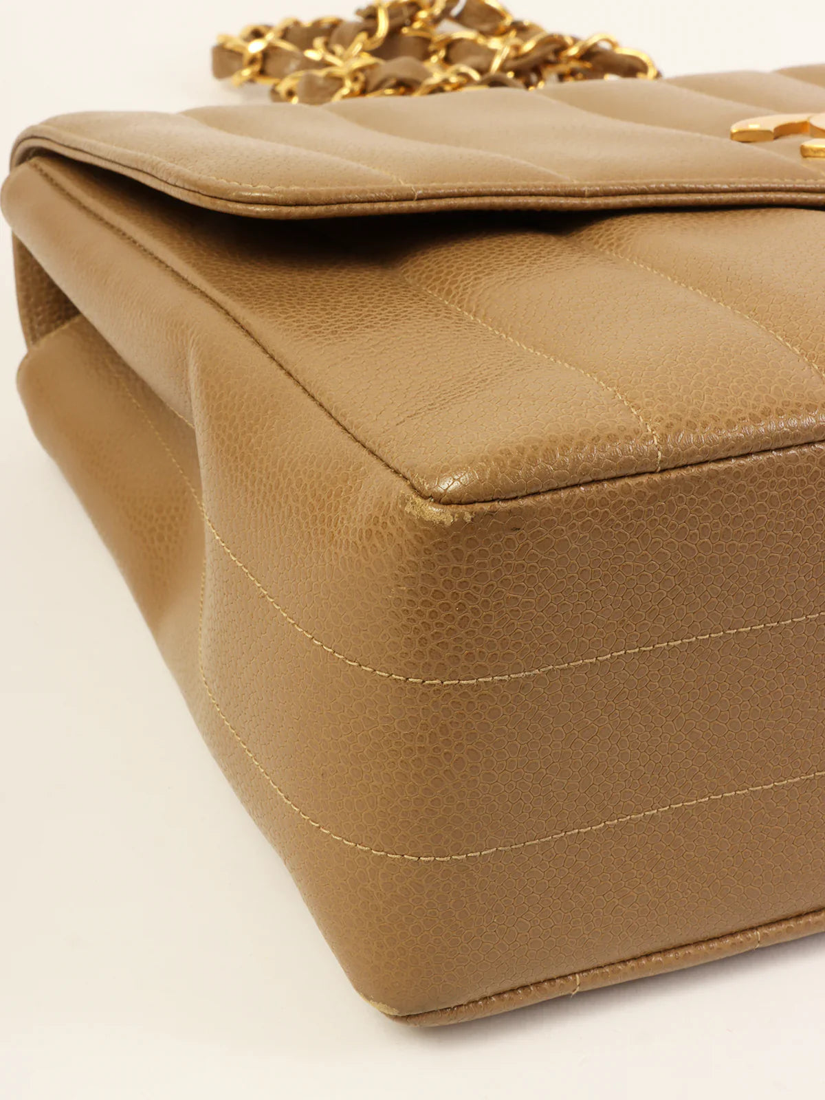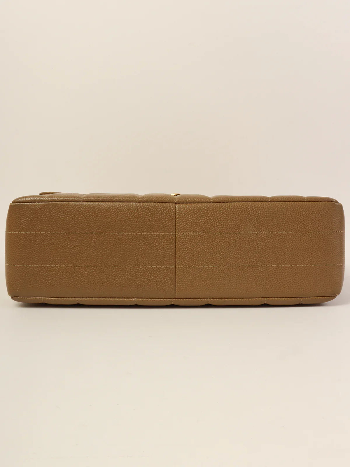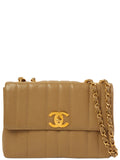 CHANEL Around 1995 Made Caviar Skin Mademoiselle Stitch Turn-Lock Chain Bag Mocha Beige