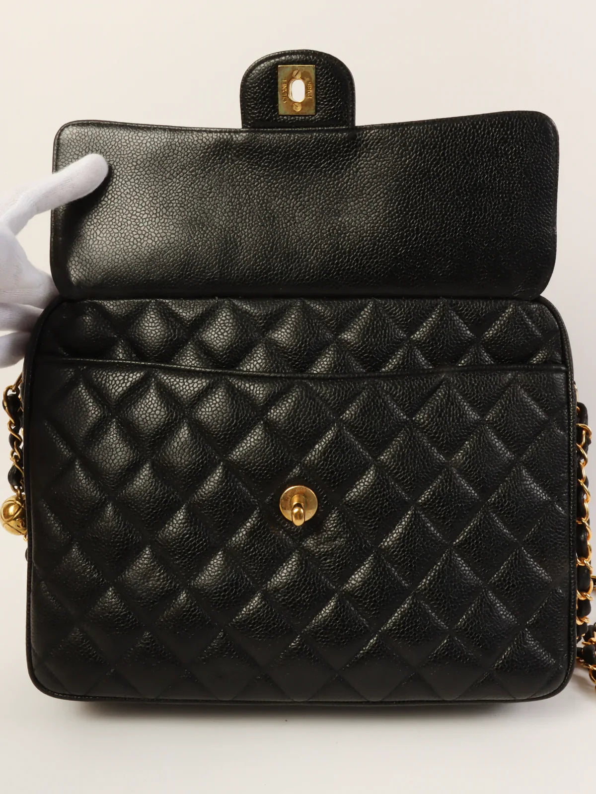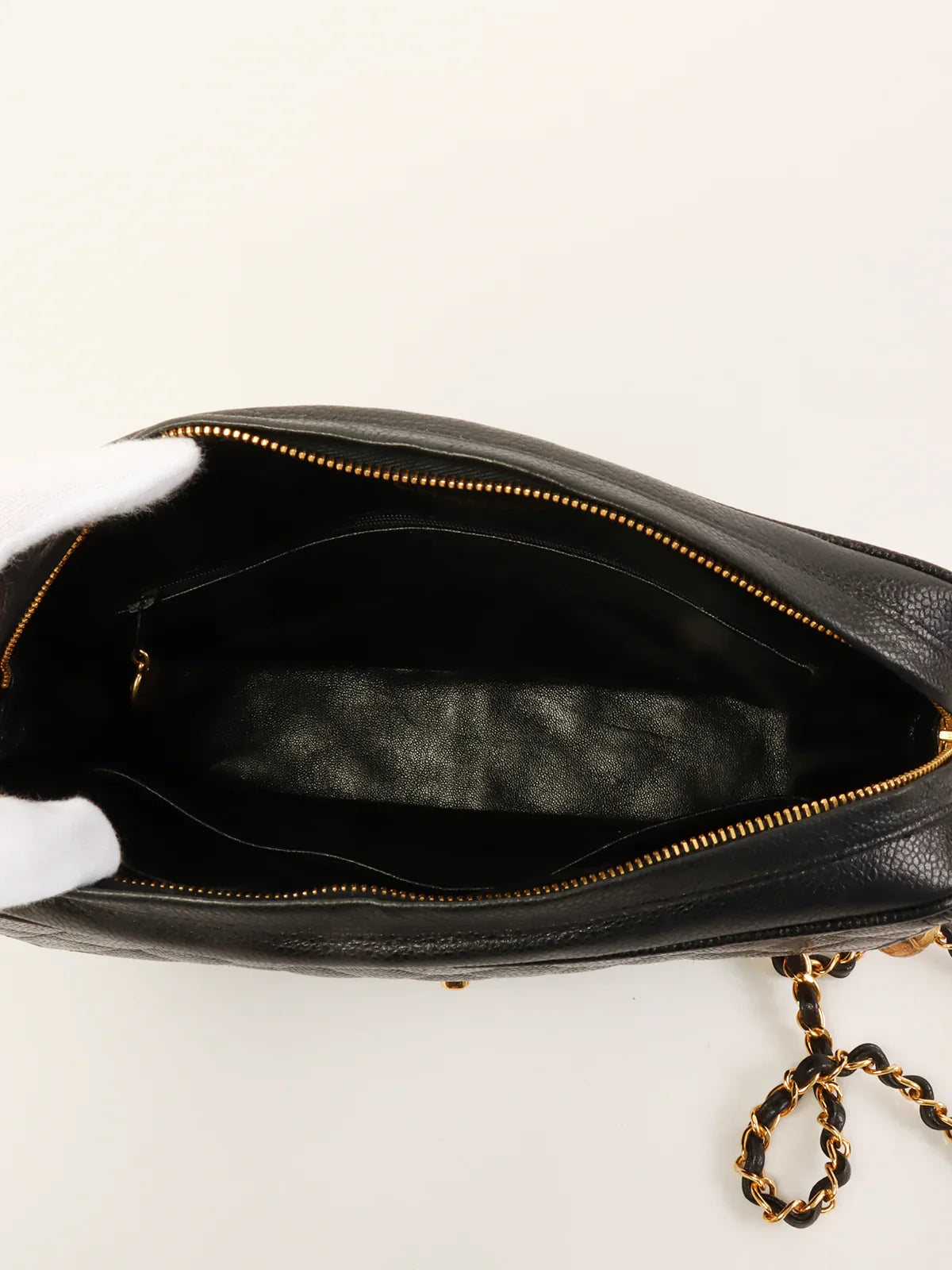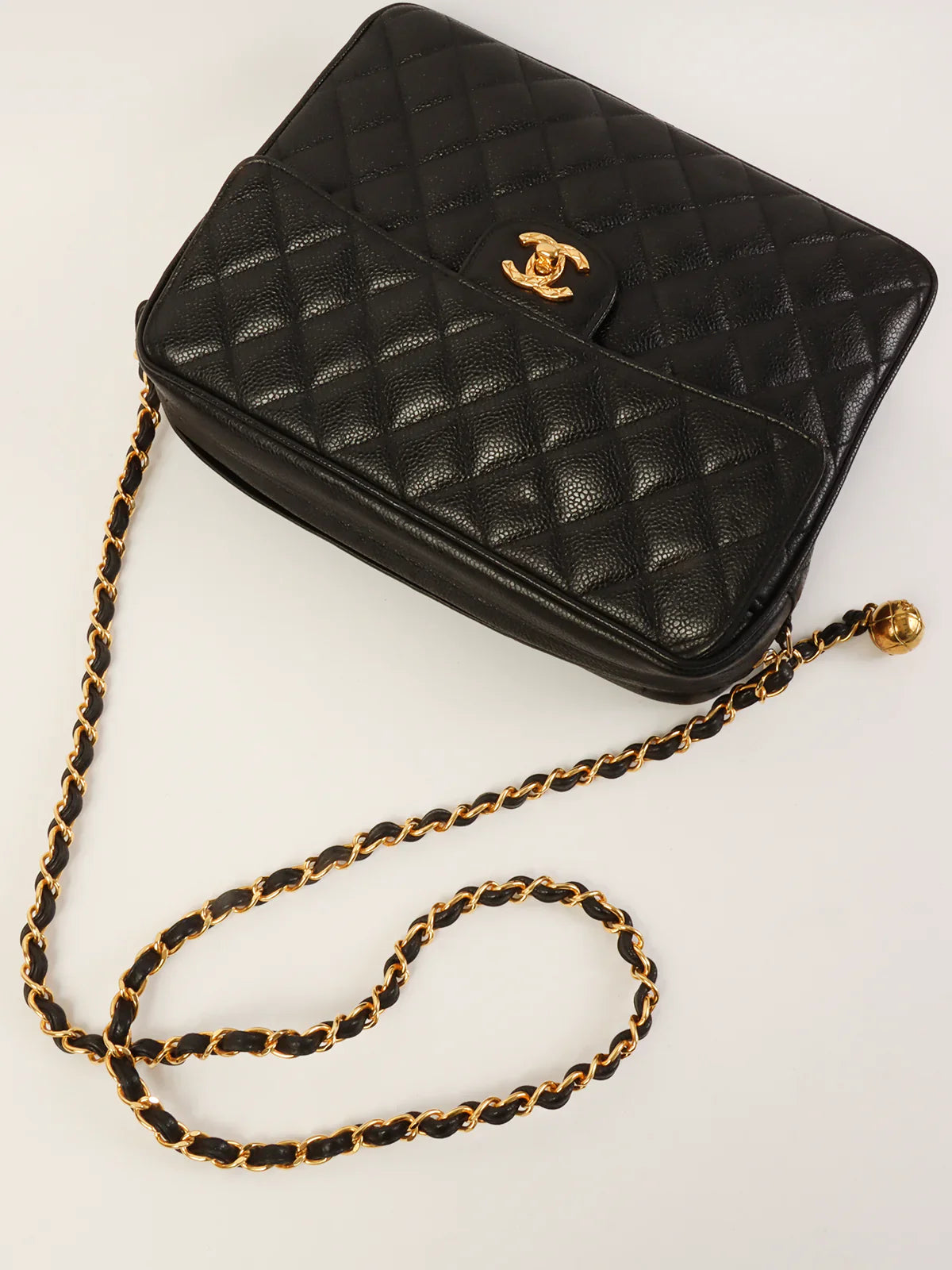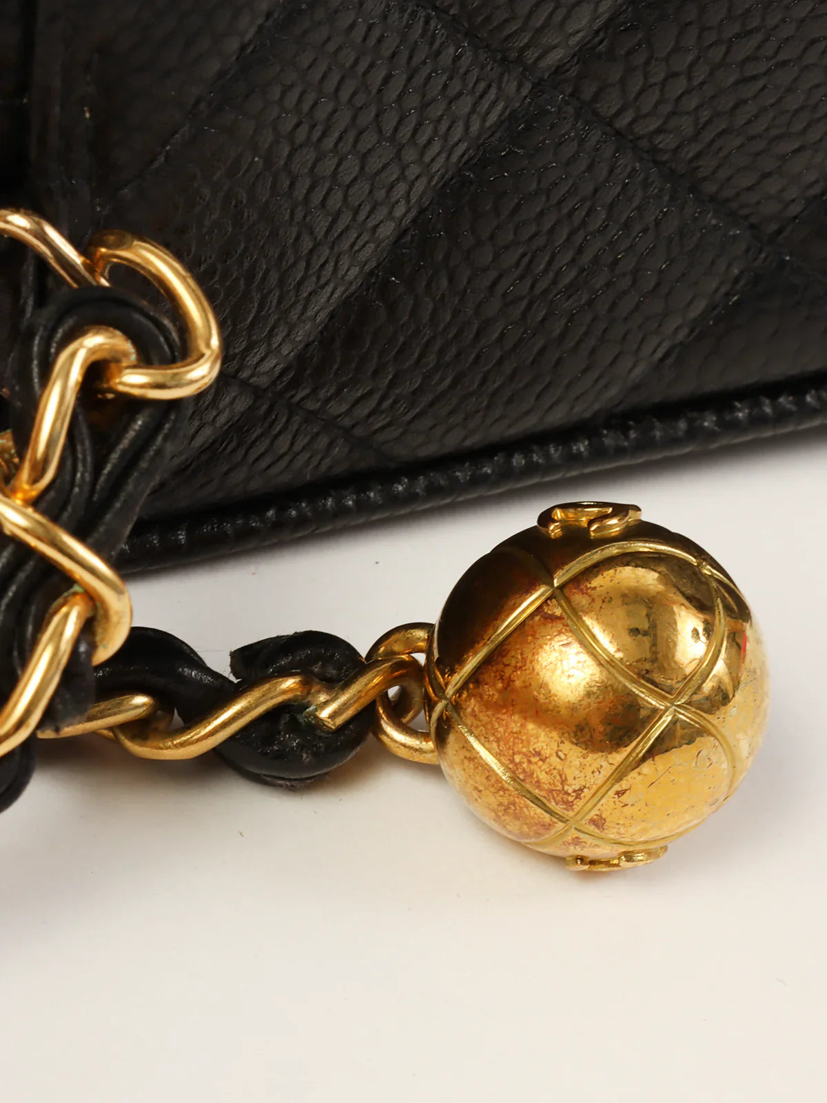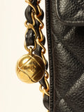 CHANEL Around 1995 Made Caviar Skin Turn-Lock Ball Charm Shoulder Bag Black