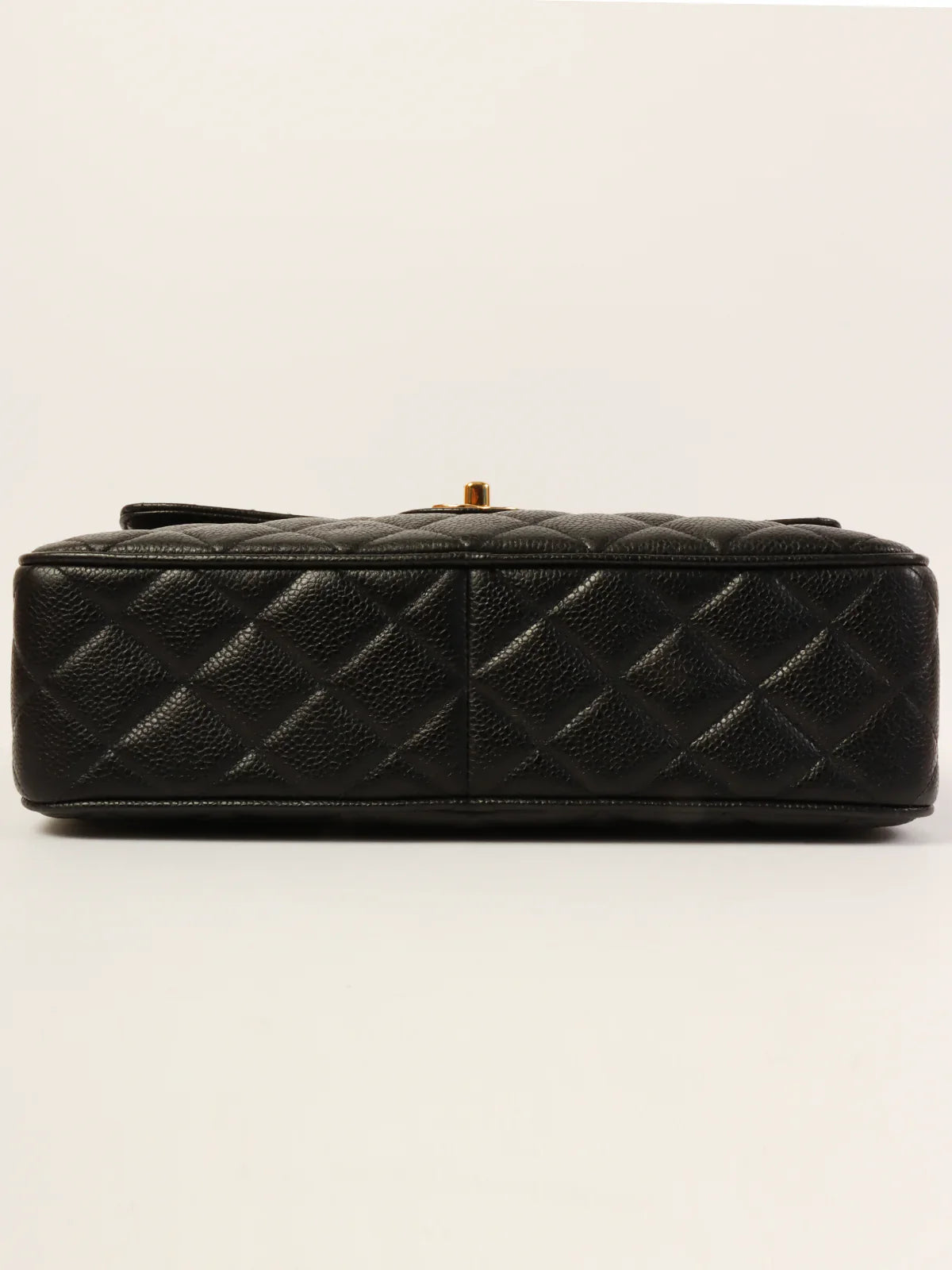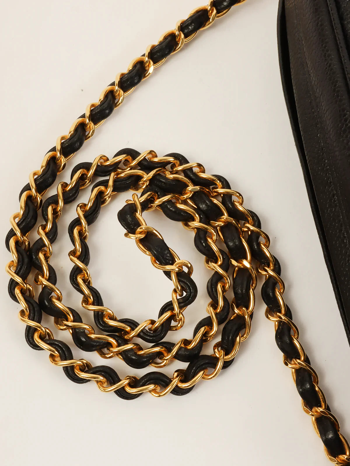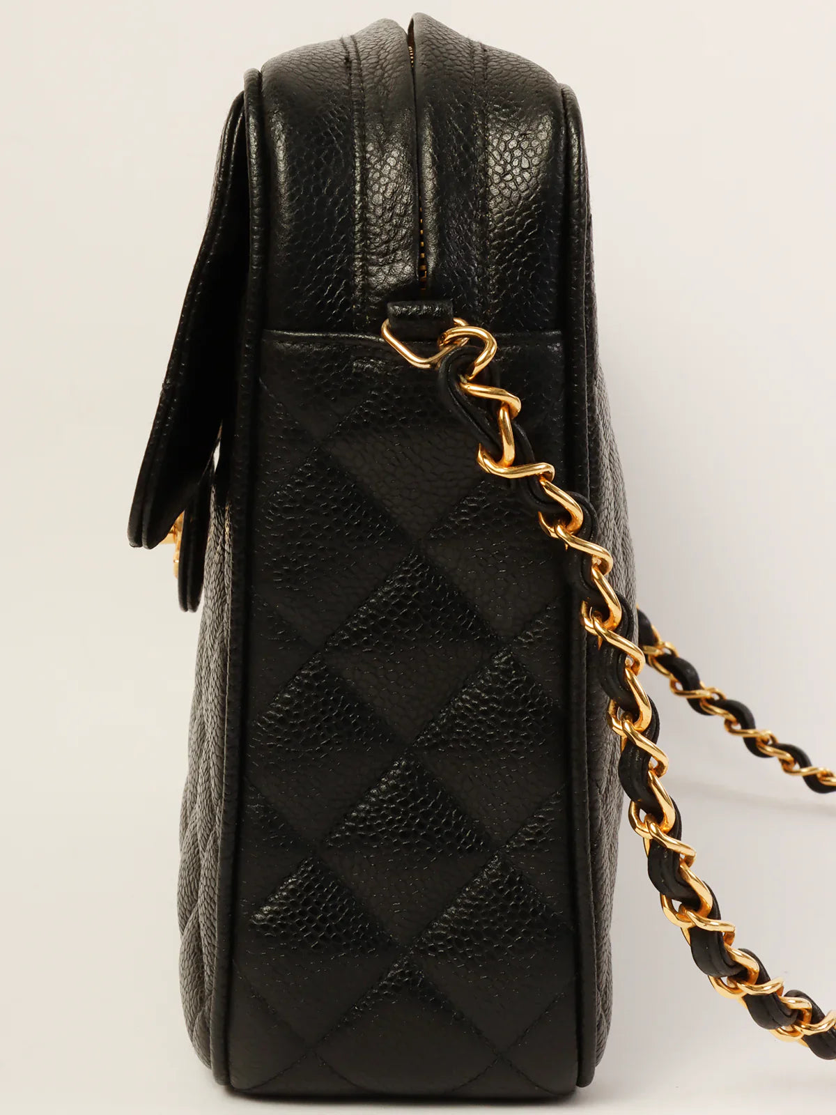 CHANEL Around 1995 Made Caviar Skin Turn-Lock Ball Charm Shoulder Bag Black