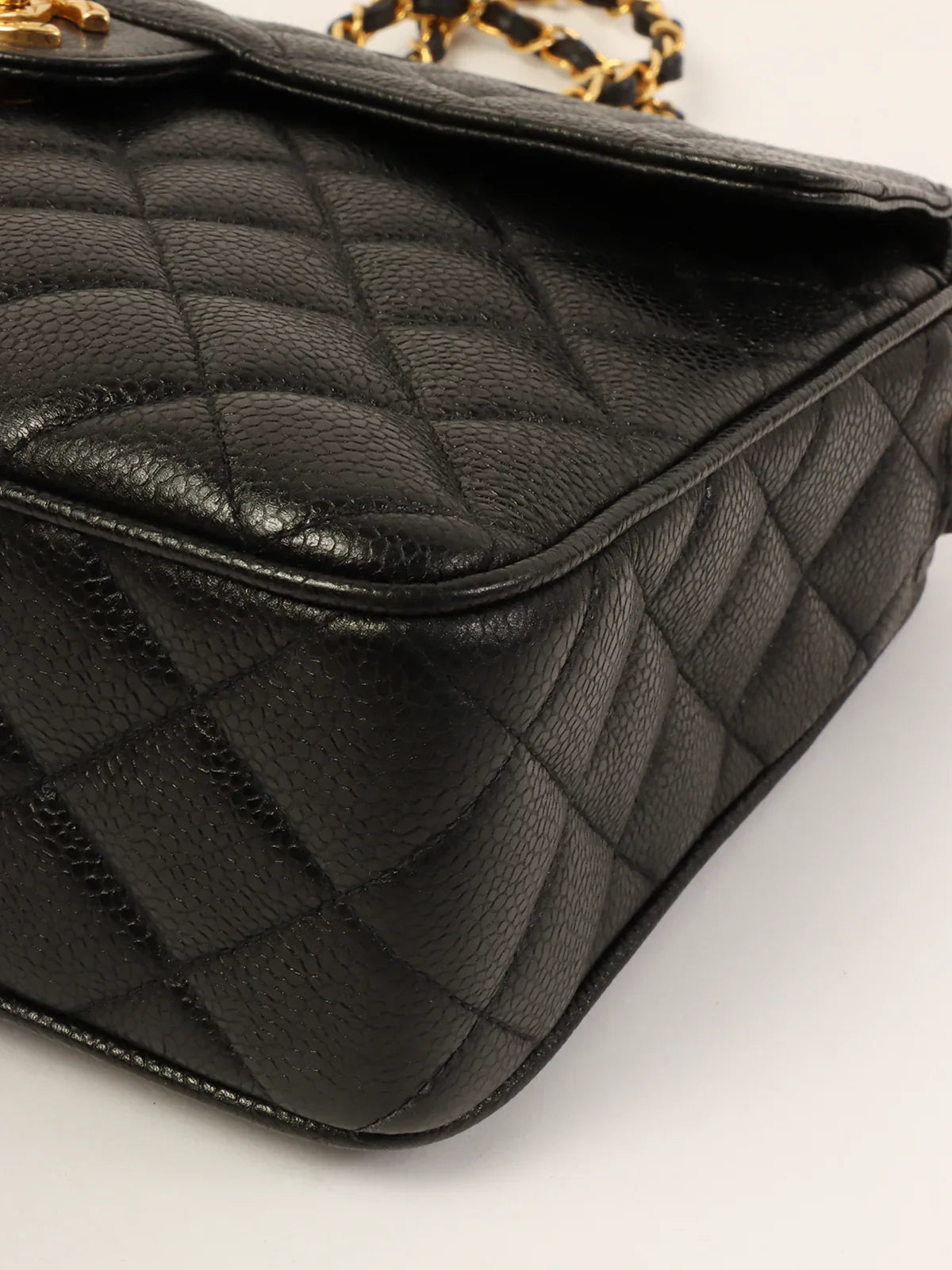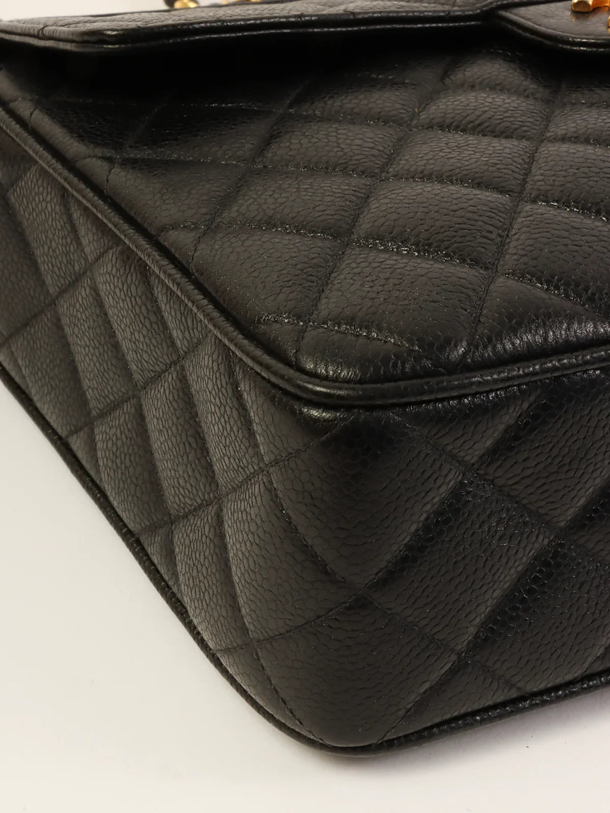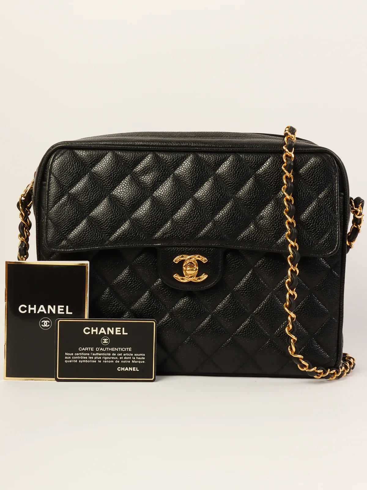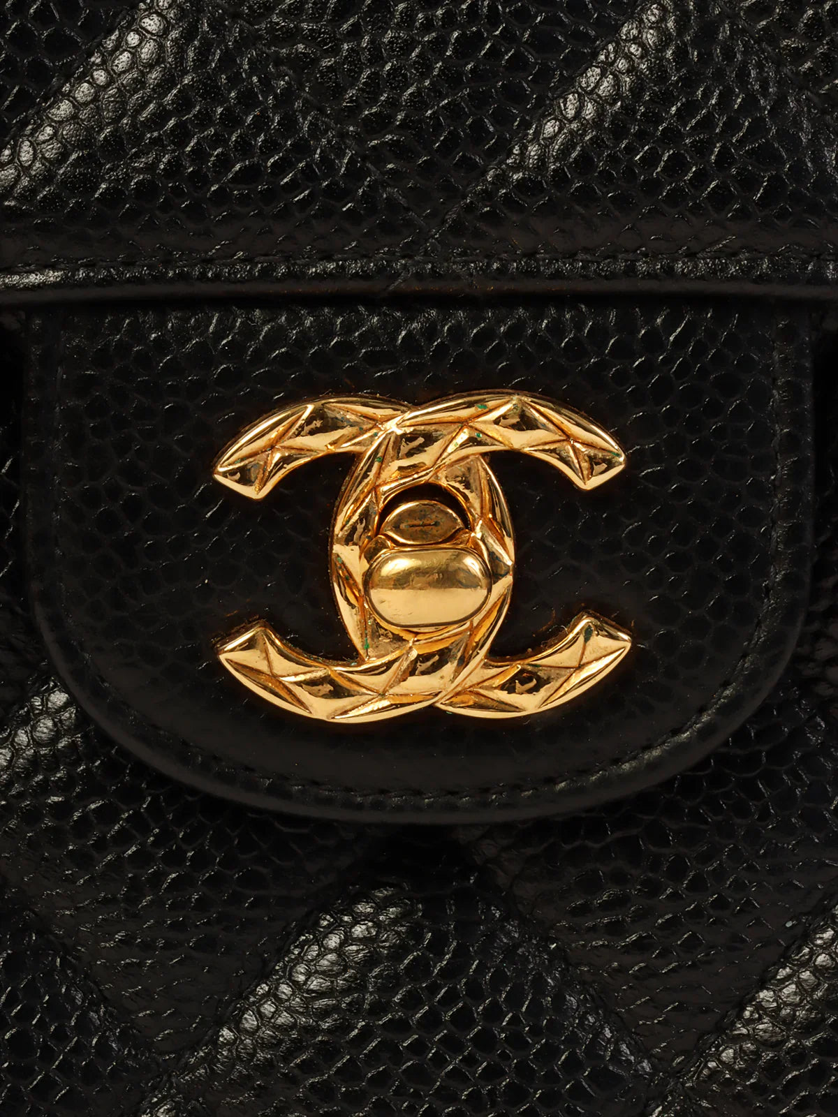 CHANEL Around 1995 Made Caviar Skin Turn-Lock Ball Charm Shoulder Bag Black