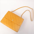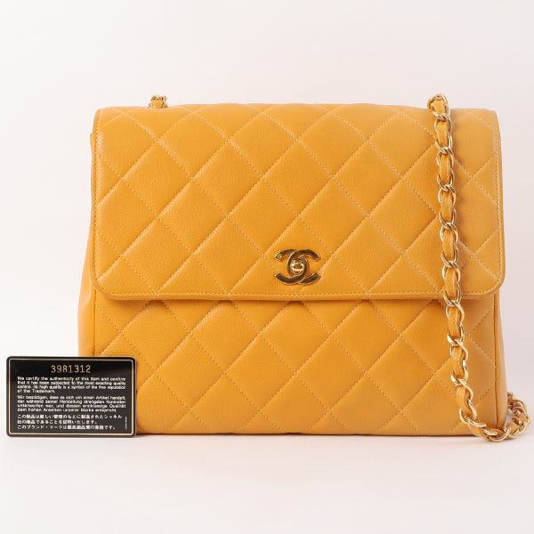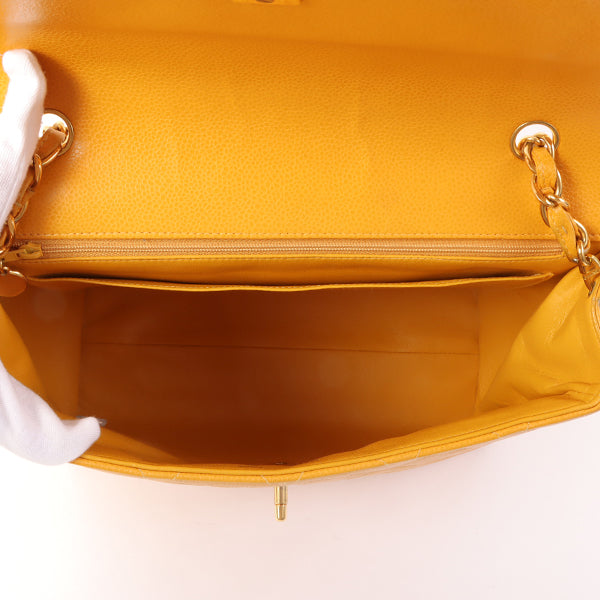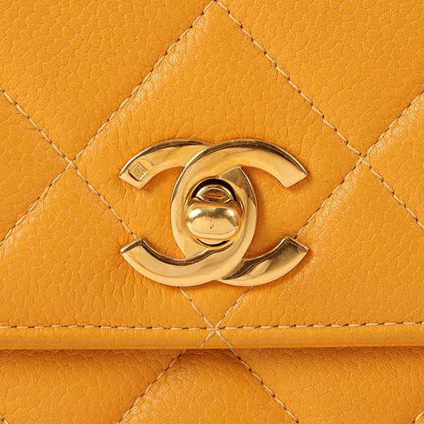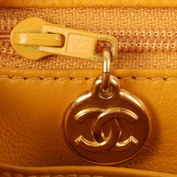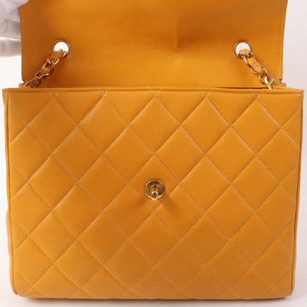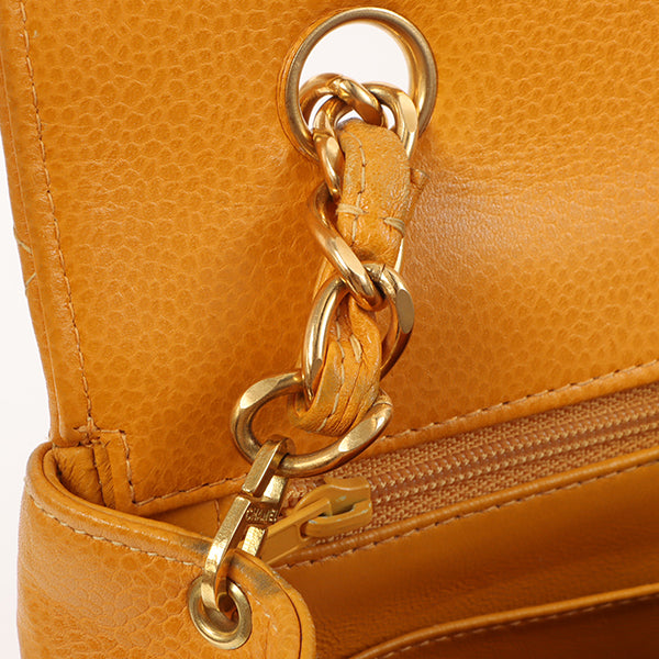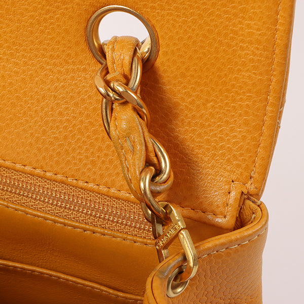 Chanel Around 1995 Made Caviar Skin Turn-Lock Chain Bag Mandarine Orange