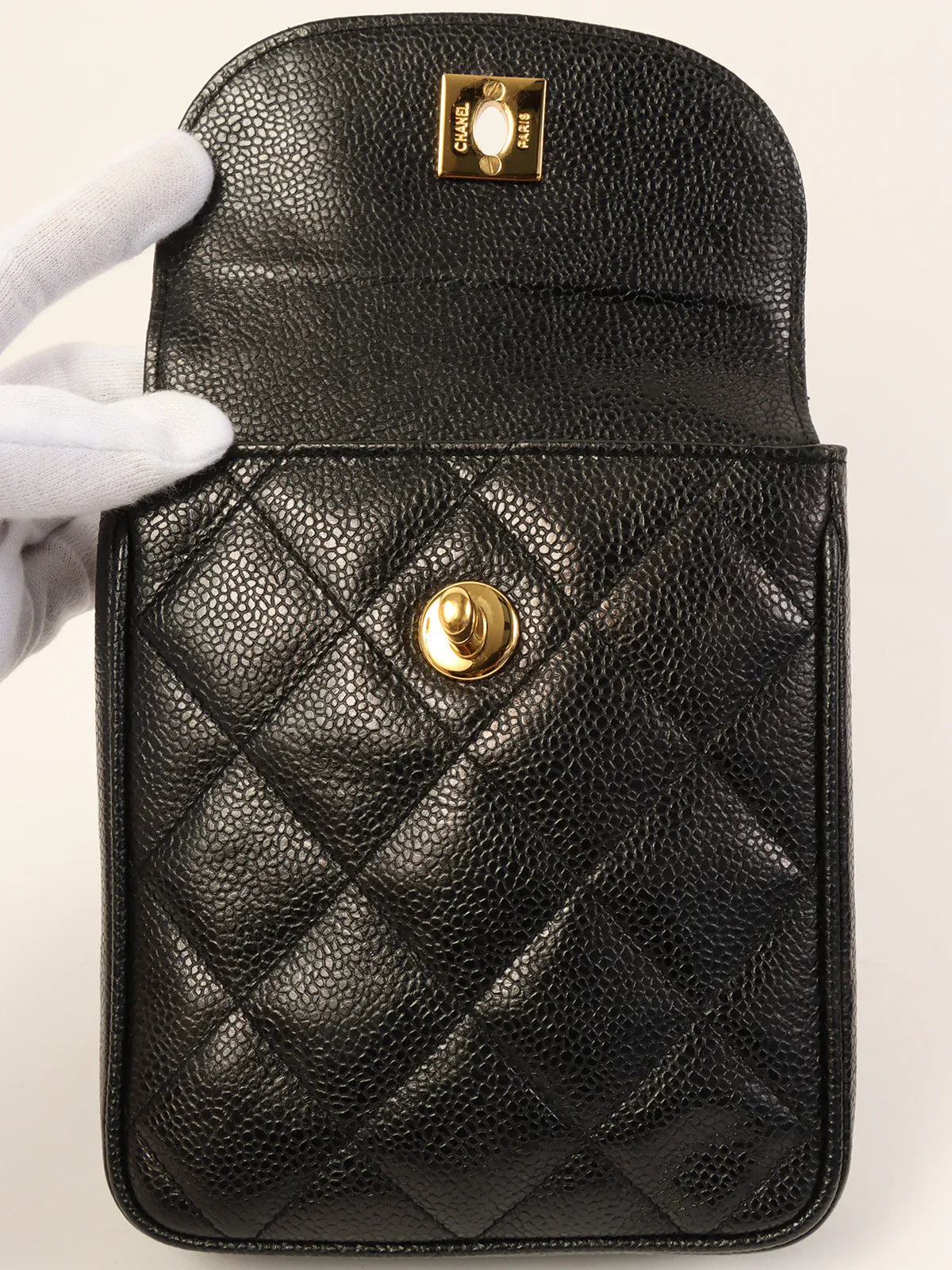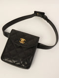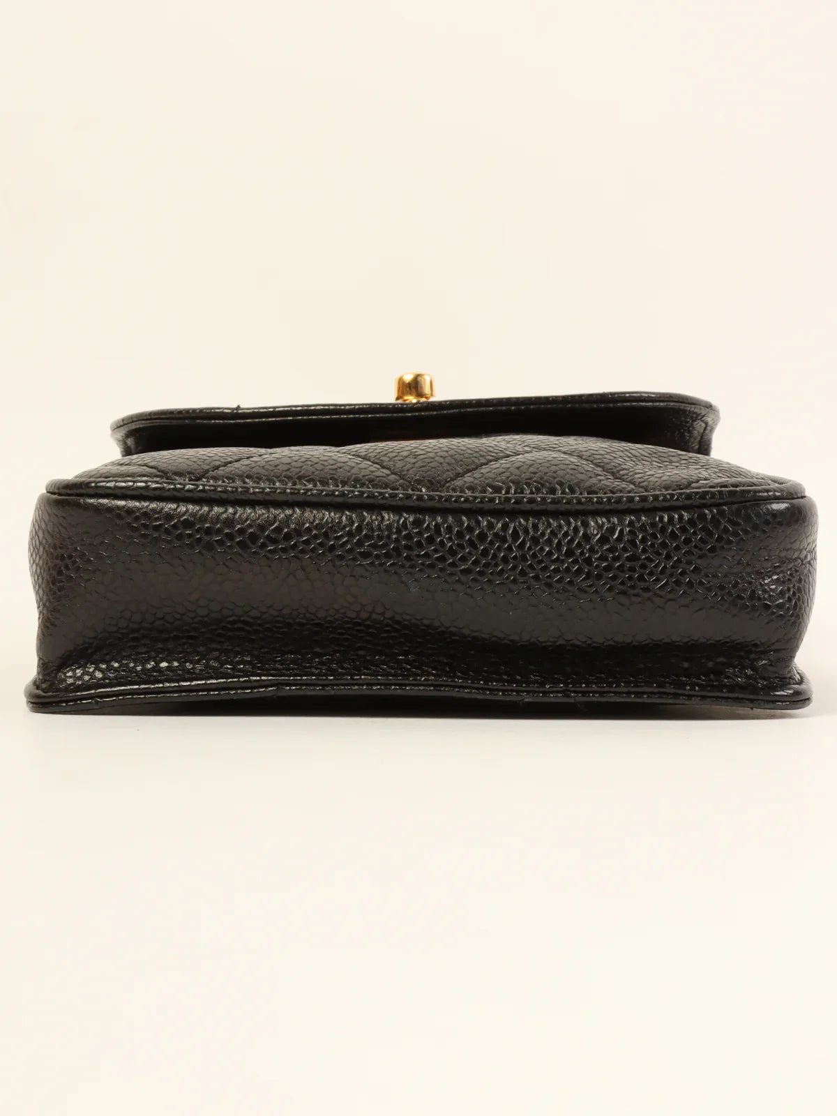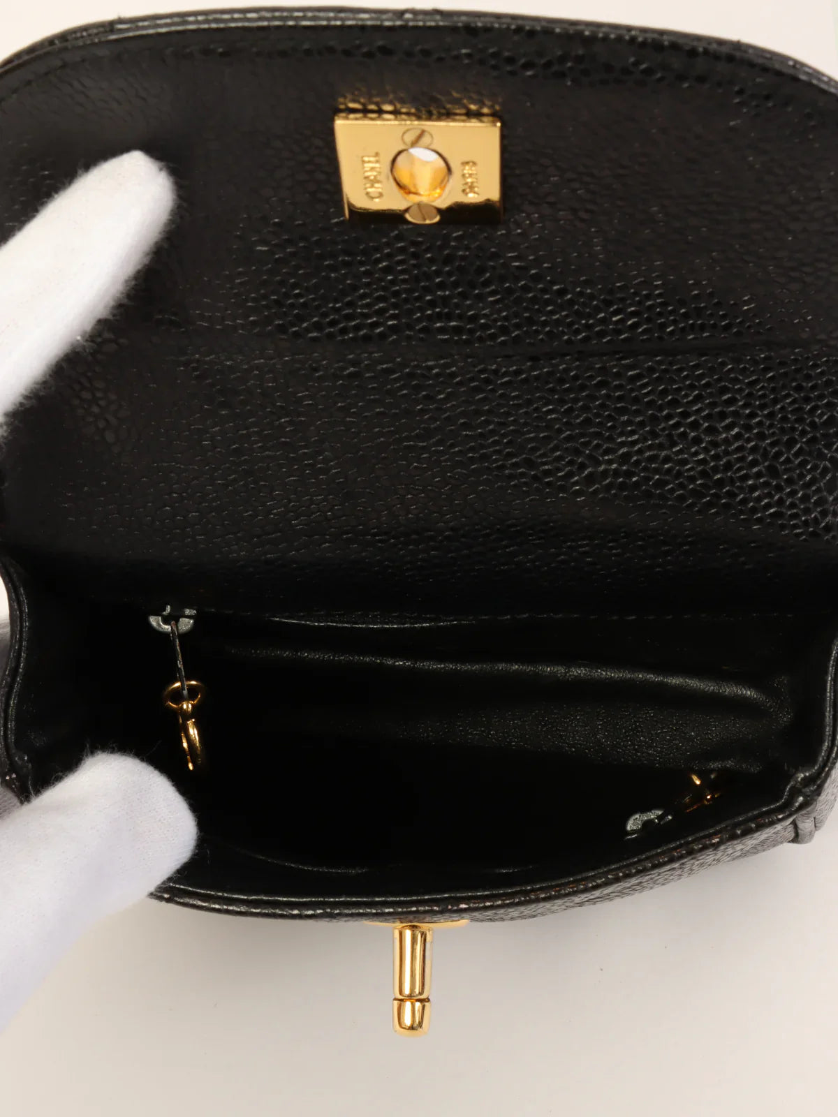 CHANEL Around 1995 Made Caviar Skin Turn-Lock Waist Bag Black