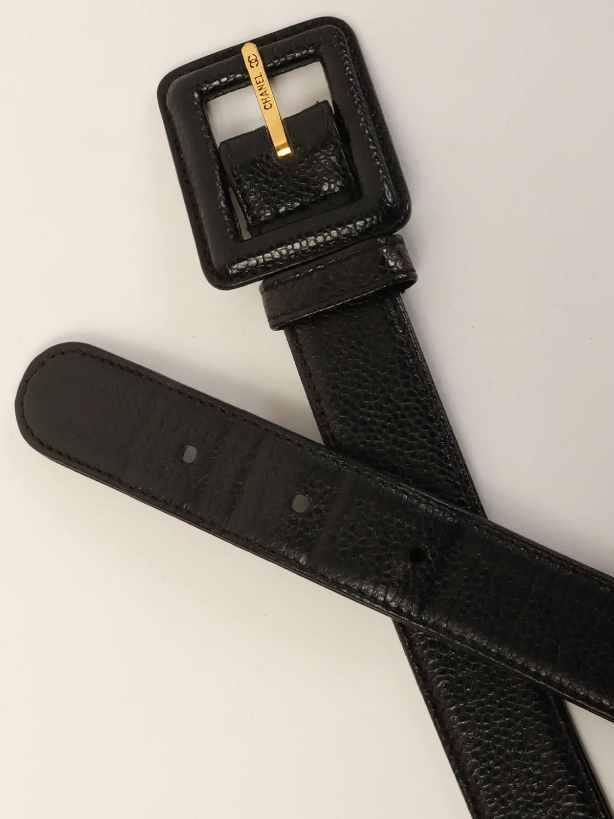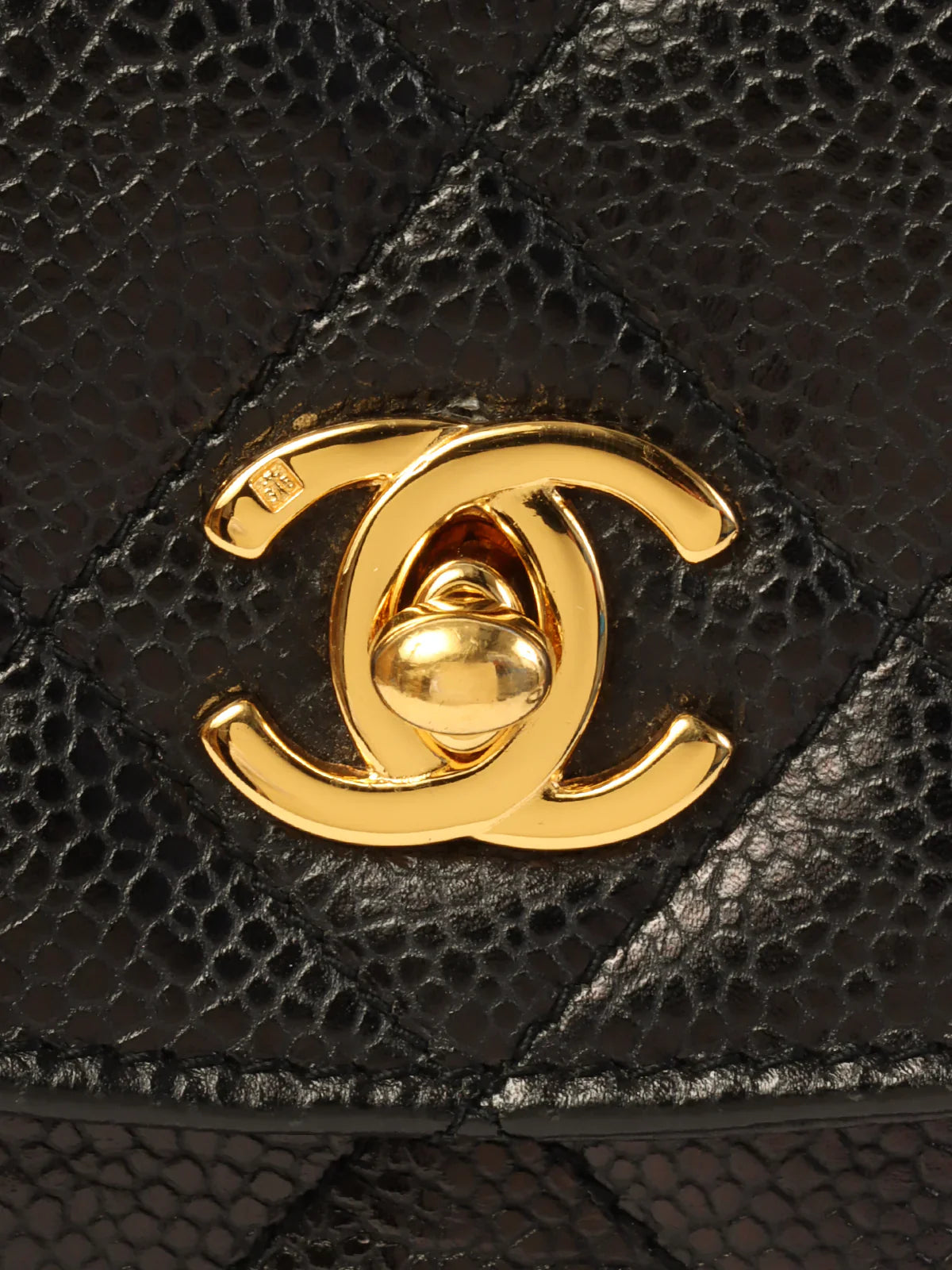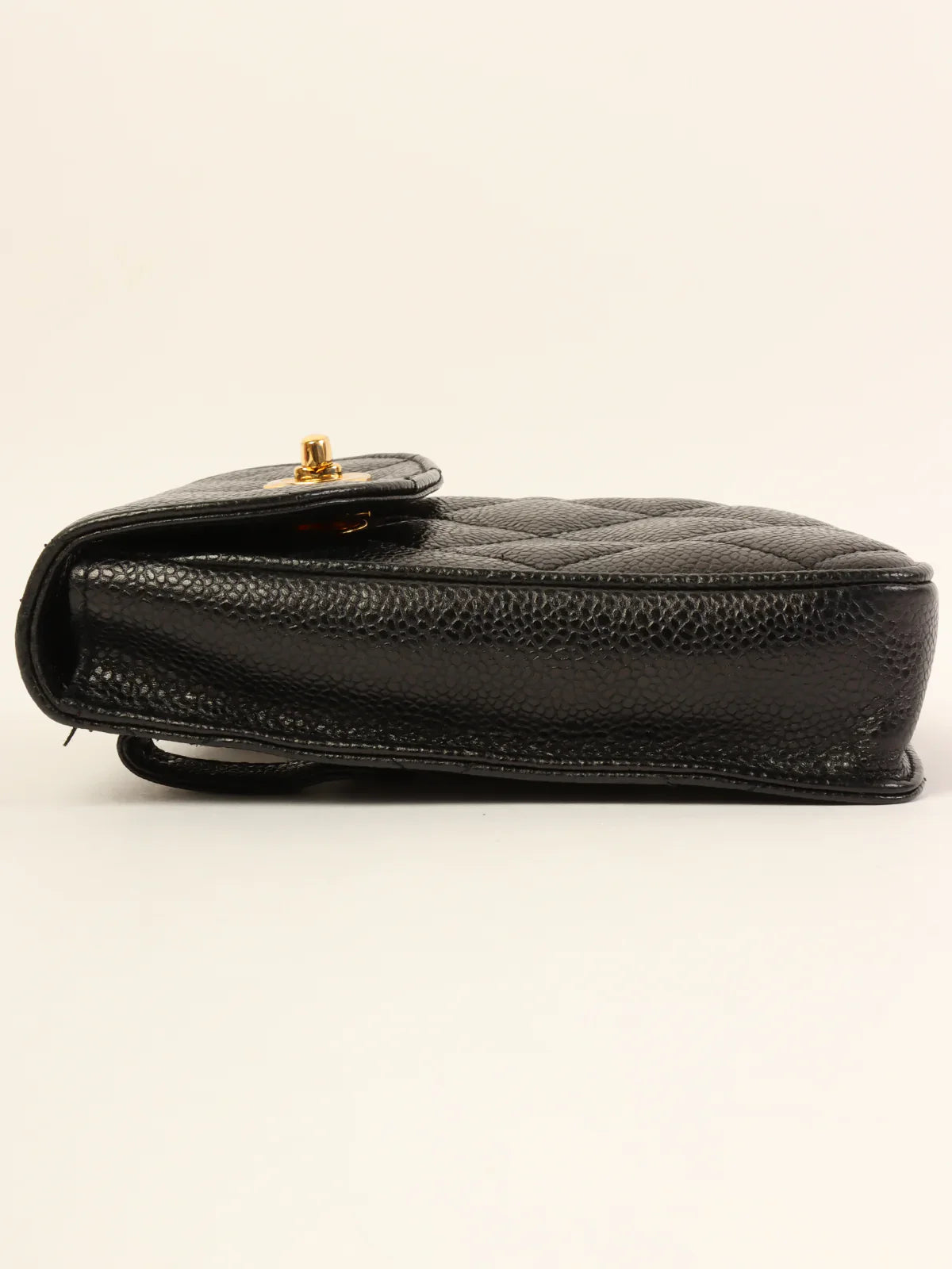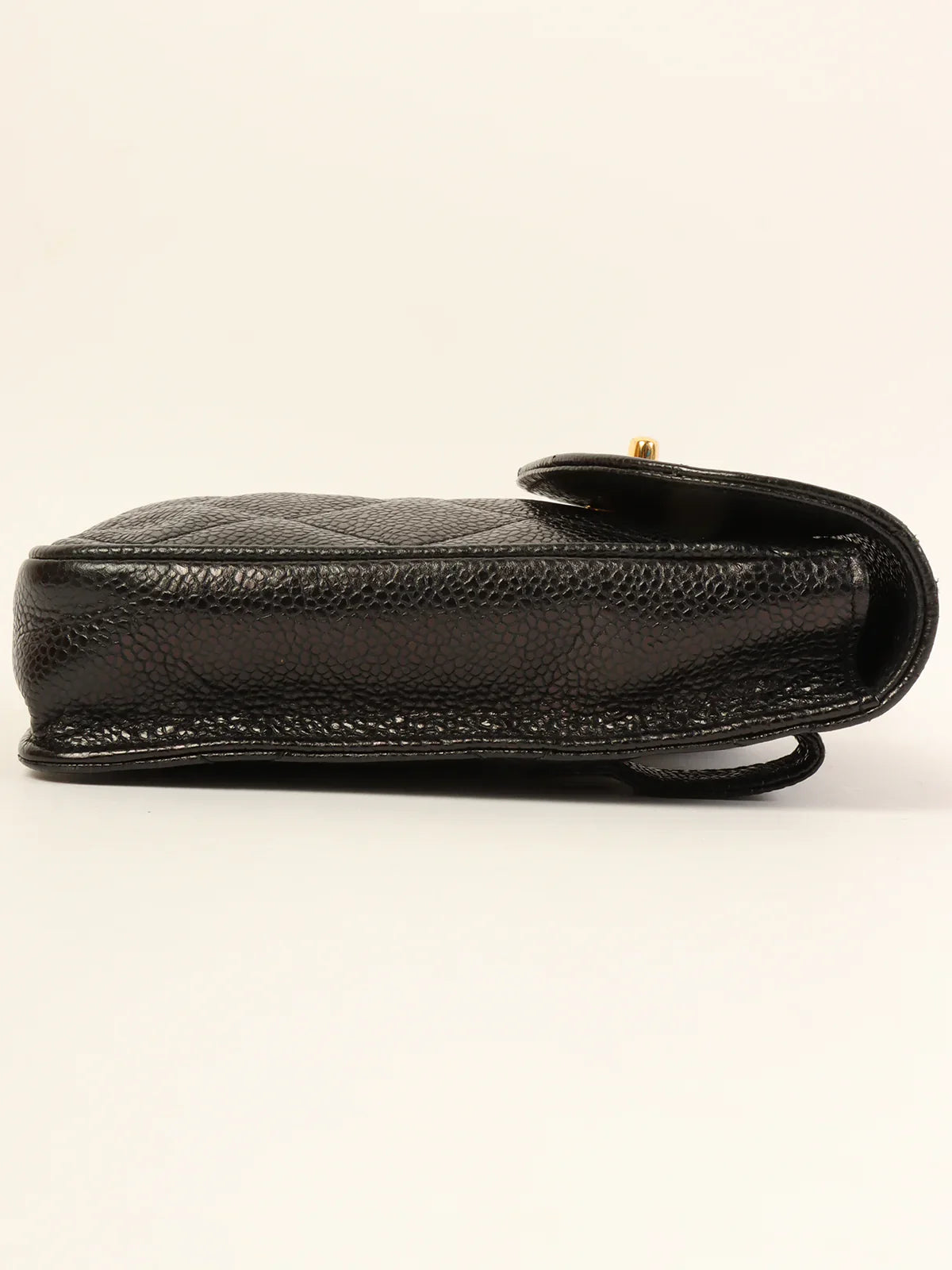 CHANEL Around 1995 Made Caviar Skin Turn-Lock Waist Bag Black