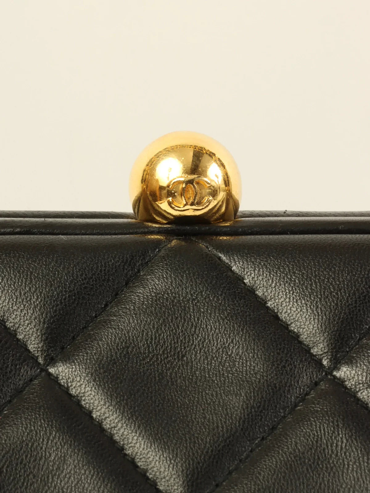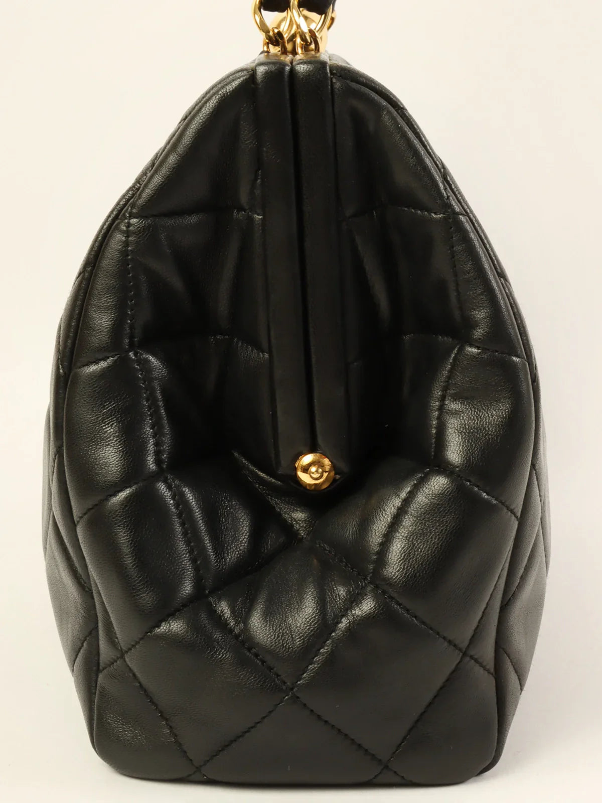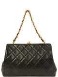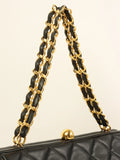 CHANEL Around 1995 Made Cc Mark Metal Clasp Chain Bag Black