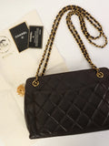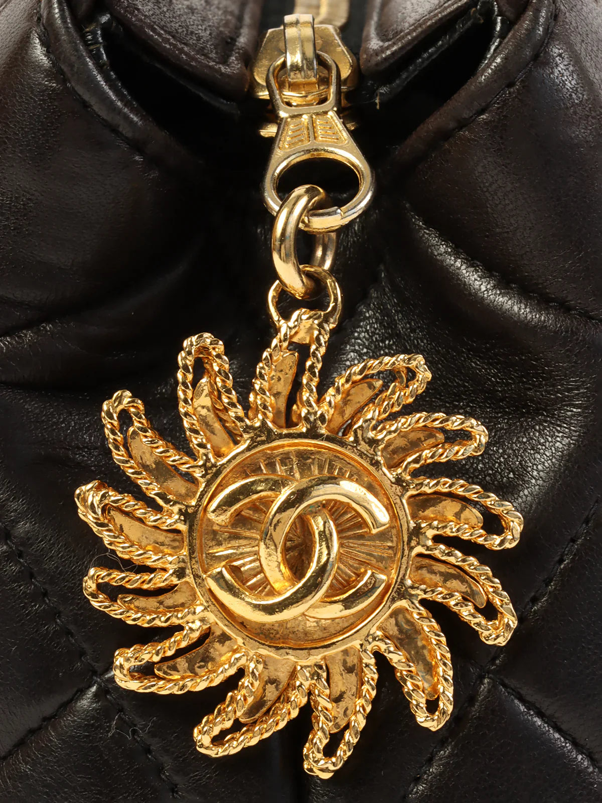 CHANEL Around 1995 Made Cc Mark Sun Motif Charm Chain Tote Bag Black