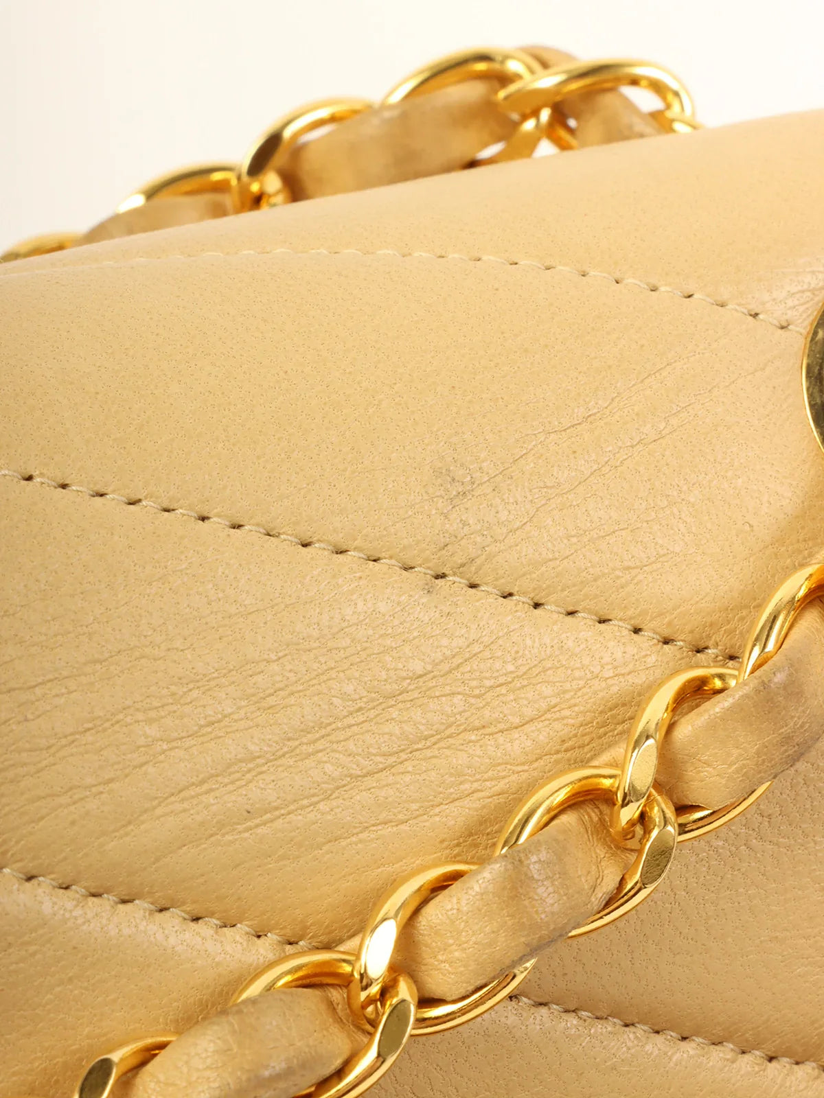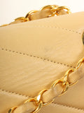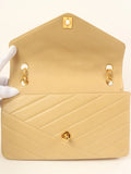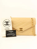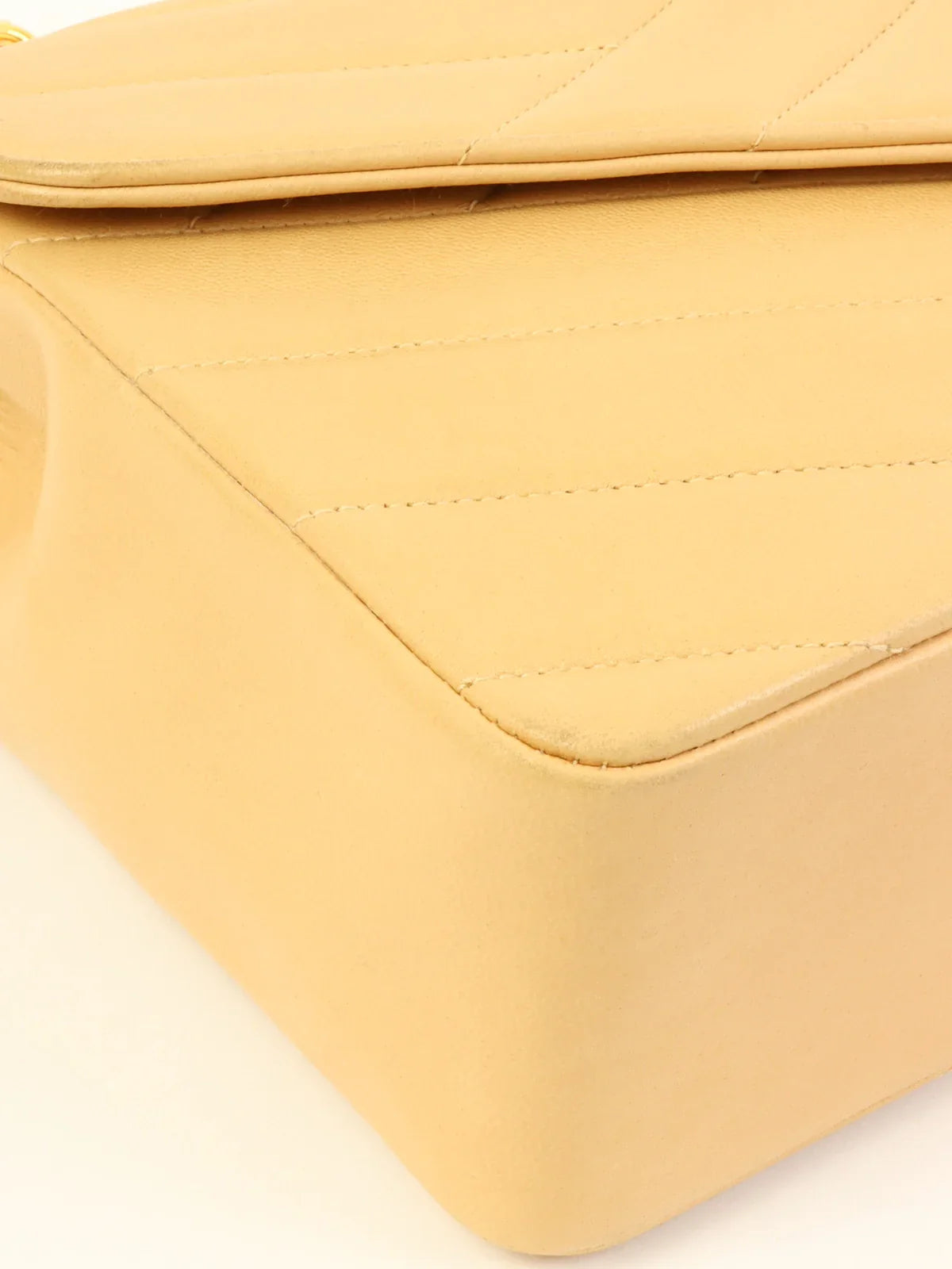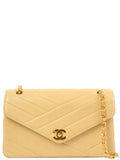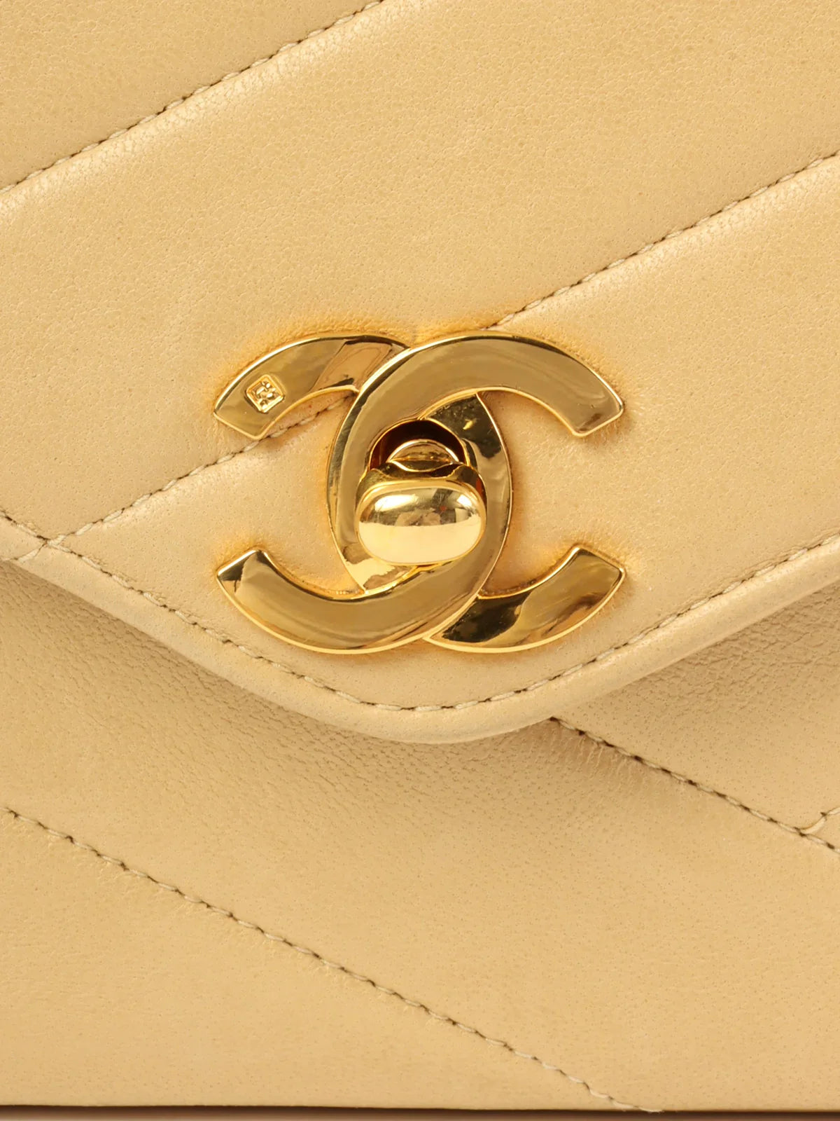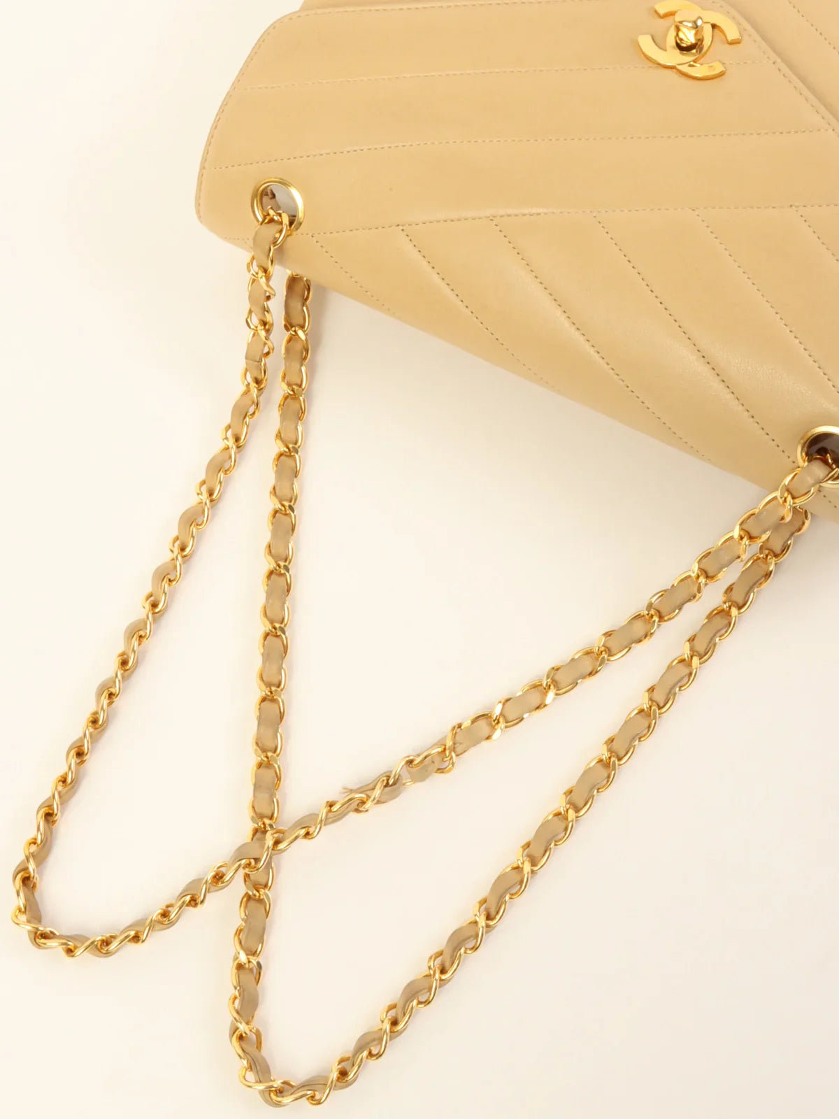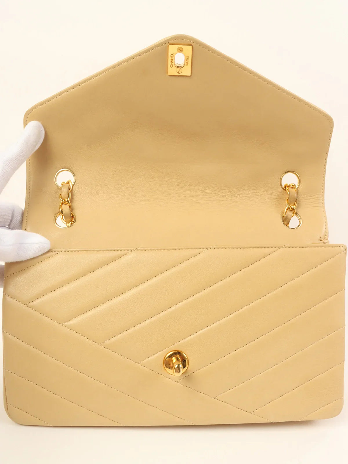 CHANEL Around 1995 Made Chevron Stitch V Flap Turn-Lock Chain Bag Beige