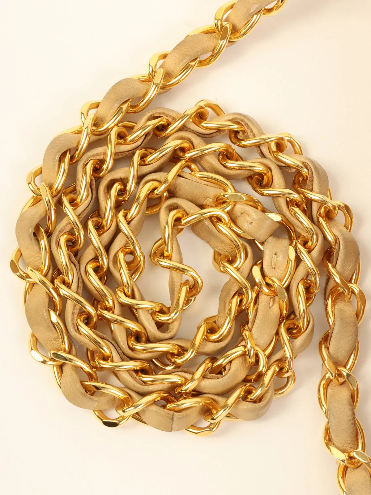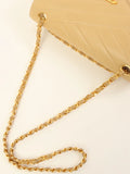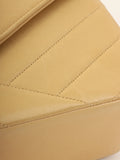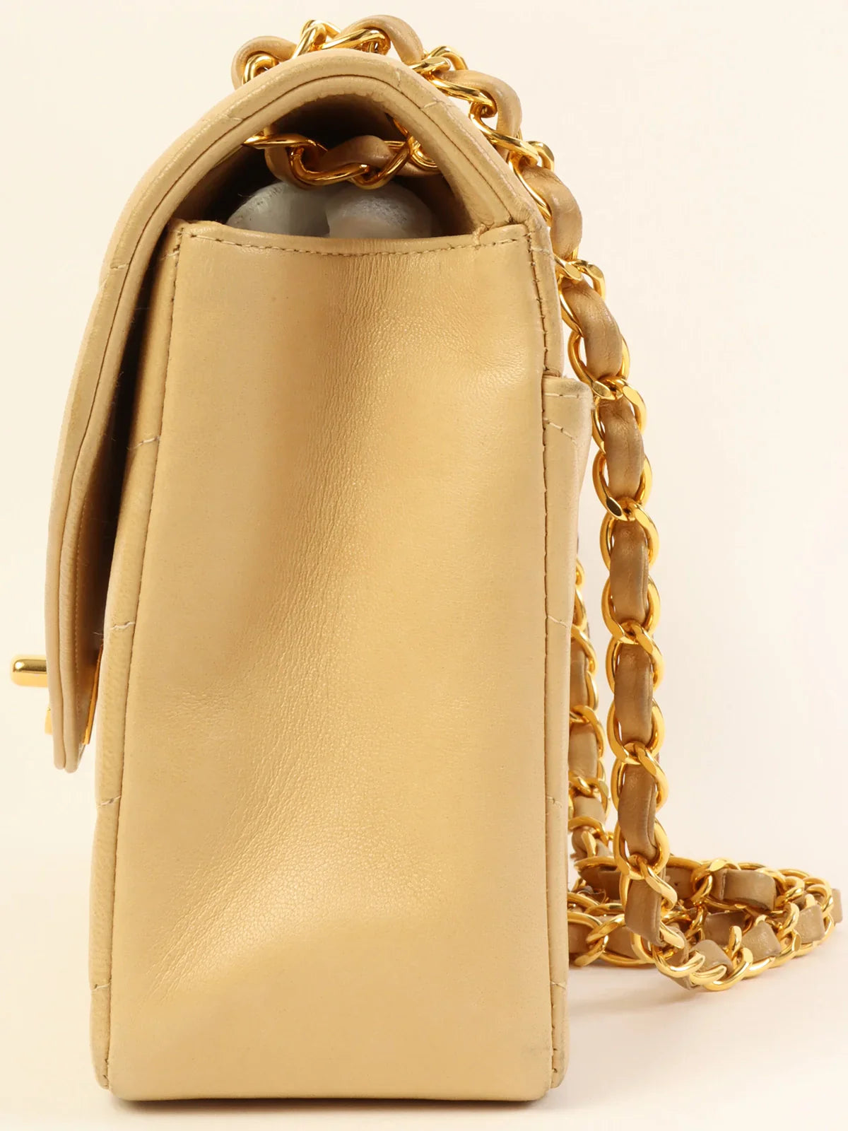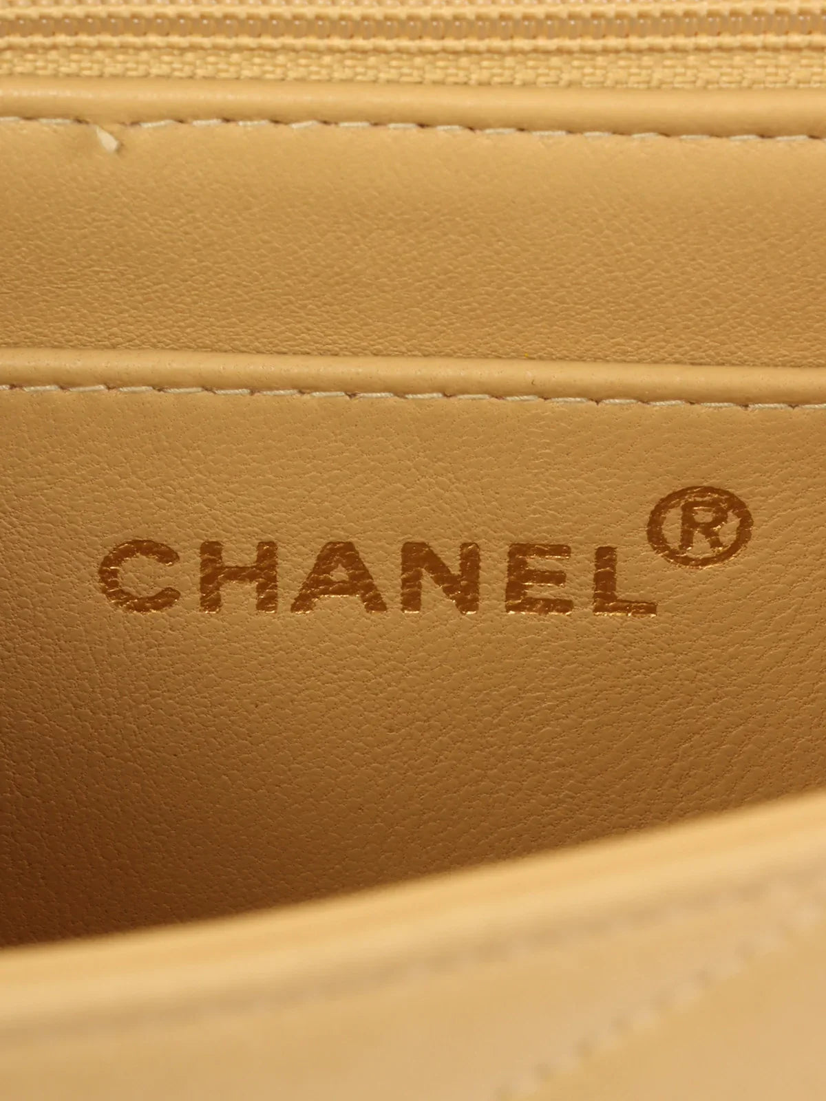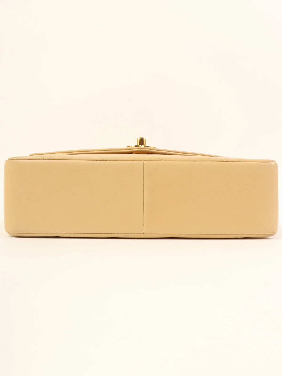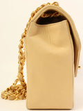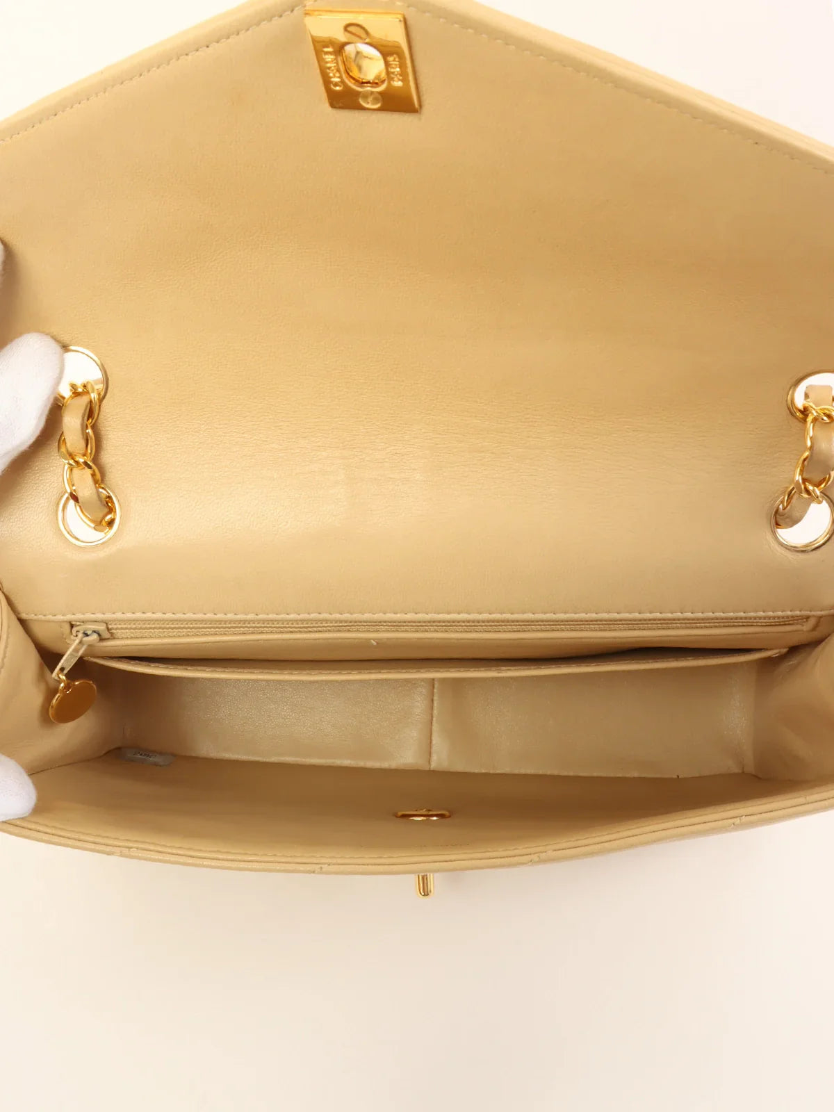 CHANEL Around 1995 Made Chevron Stitch V Flap Turn-Lock Chain Bag Beige