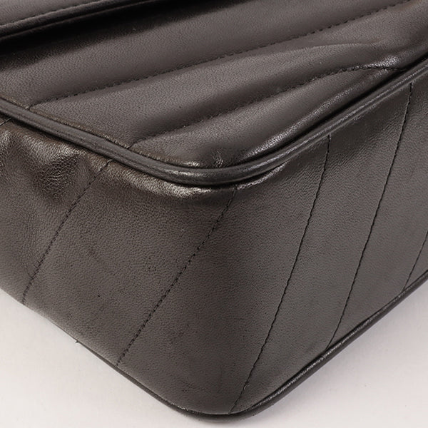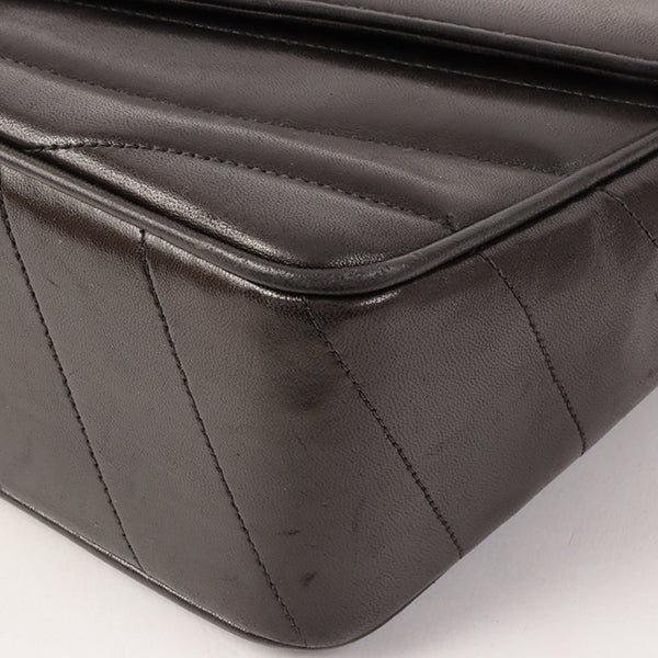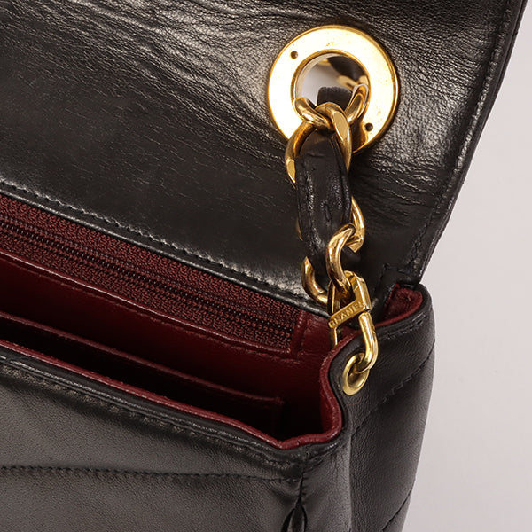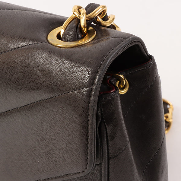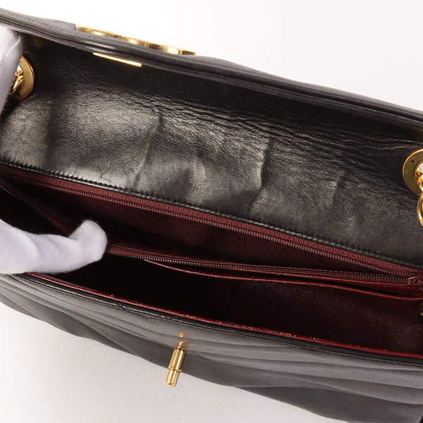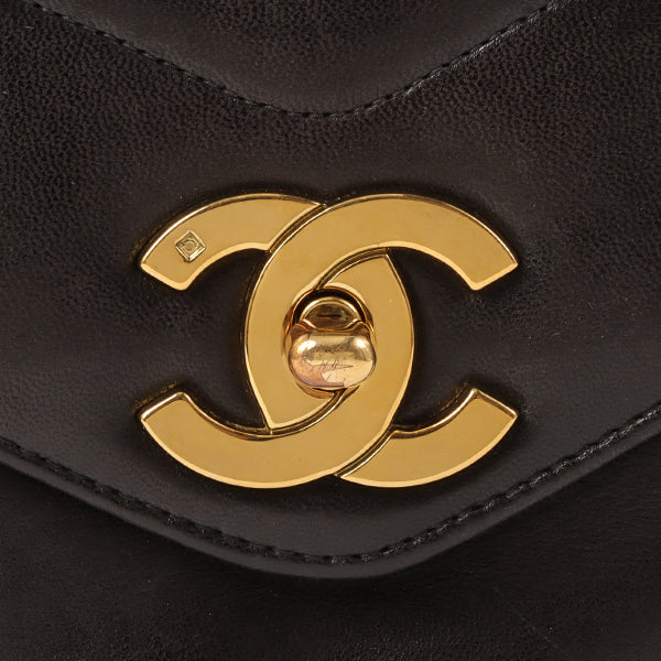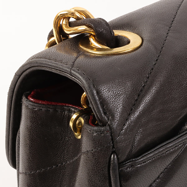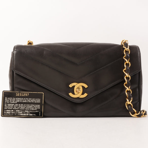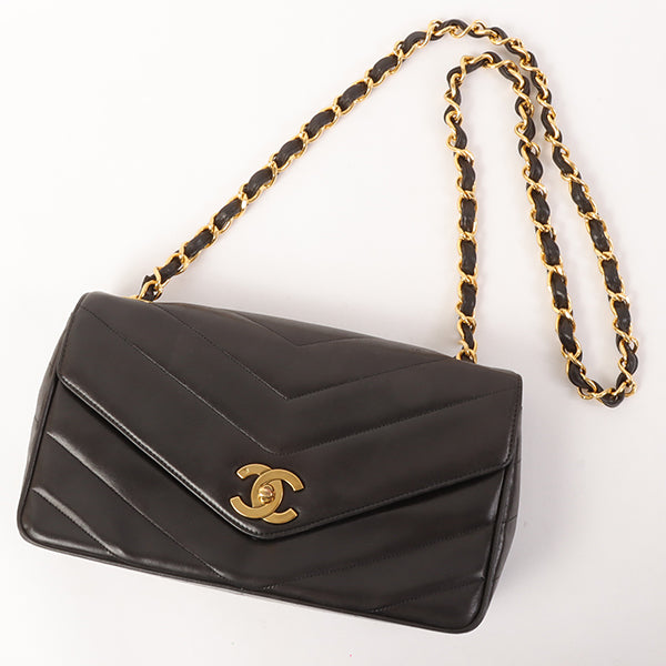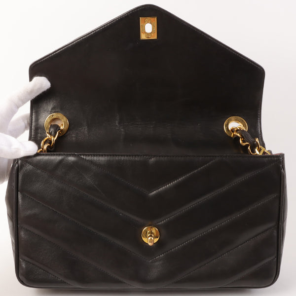 CHANEL Around 1995 Made Chevron Stitch V Flap Turn-Lock Chain Bag Black