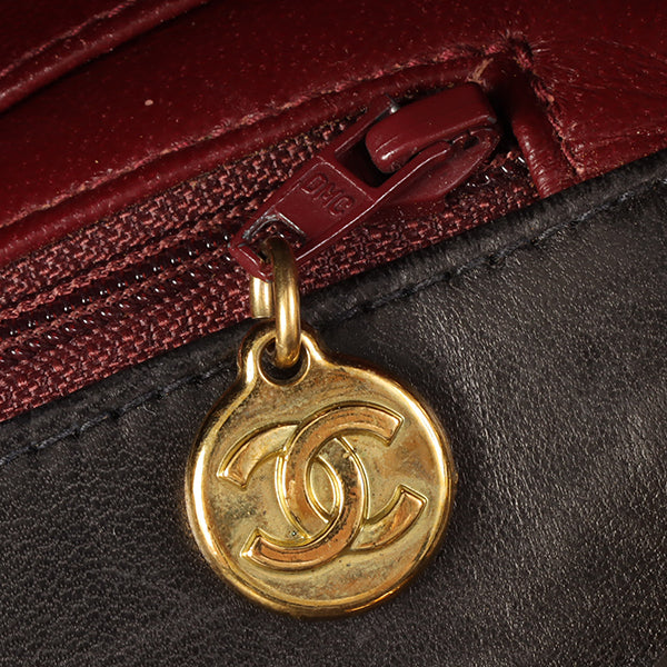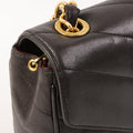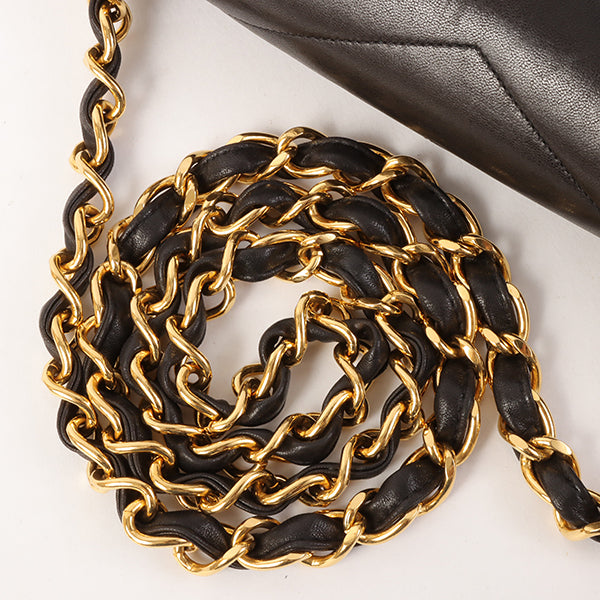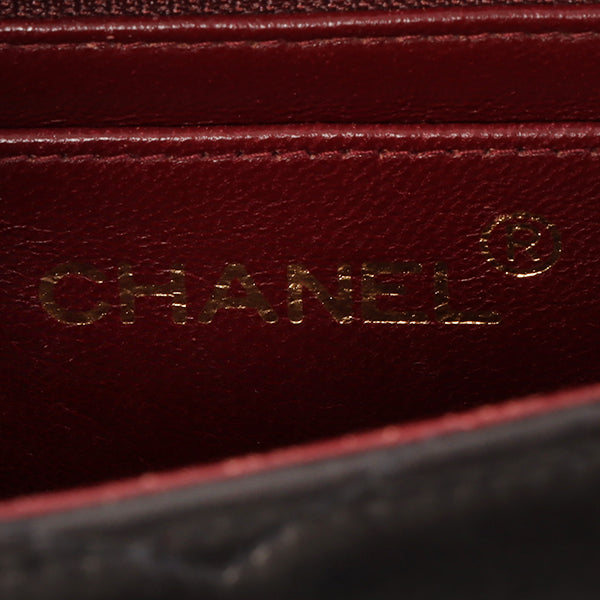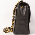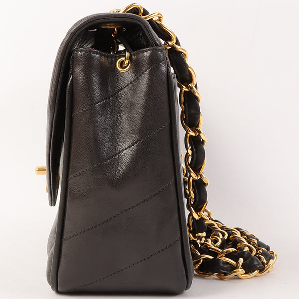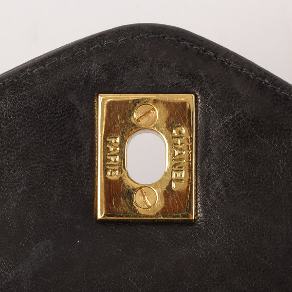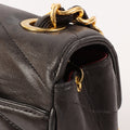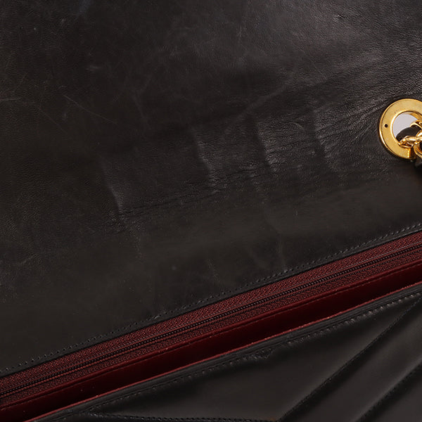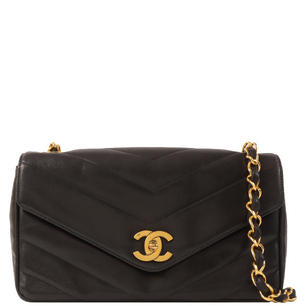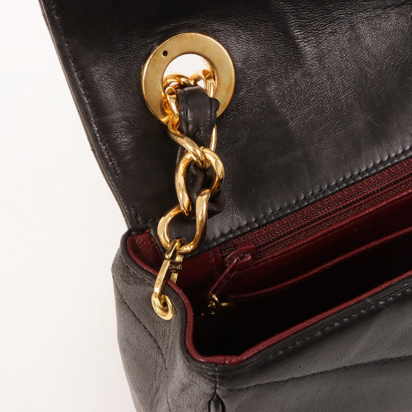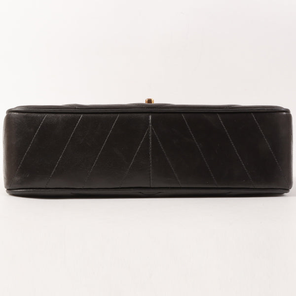 CHANEL Around 1995 Made Chevron Stitch V Flap Turn-Lock Chain Bag Black