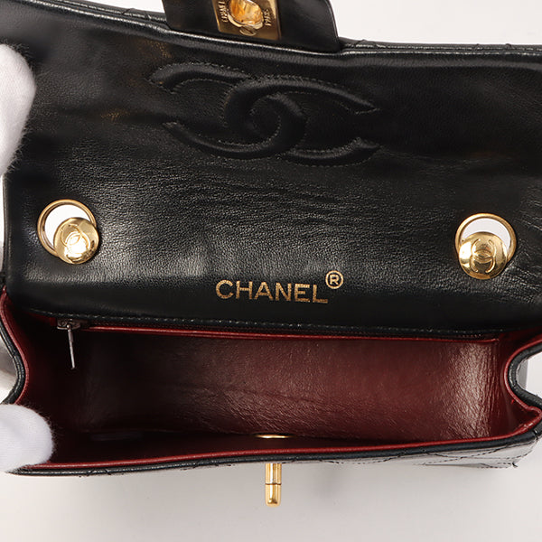 Chanel Around 1995 Made Classic Flap Chain Top Handle Bag Mini Black