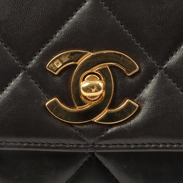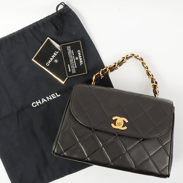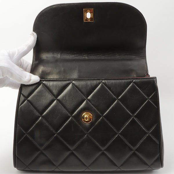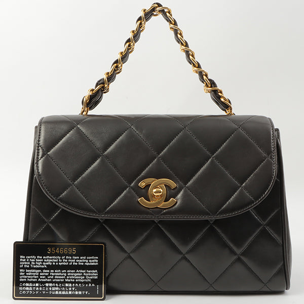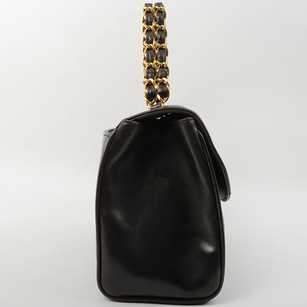 Chanel Around 1995 Made Design Flap Turn-Lock Chain Hand Bag Black