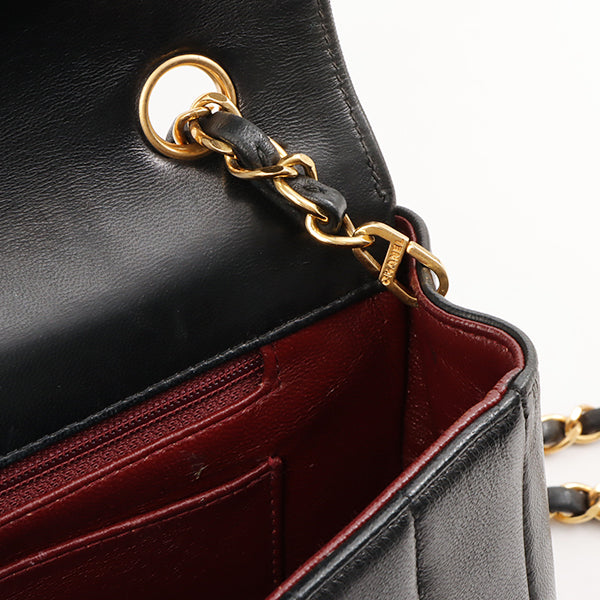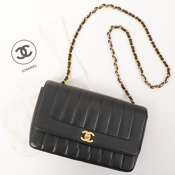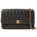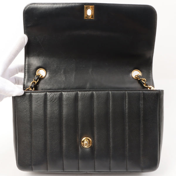 Chanel Around 1995 Made Mademoiselle Stitch Turn-Lock Chain Bag Black