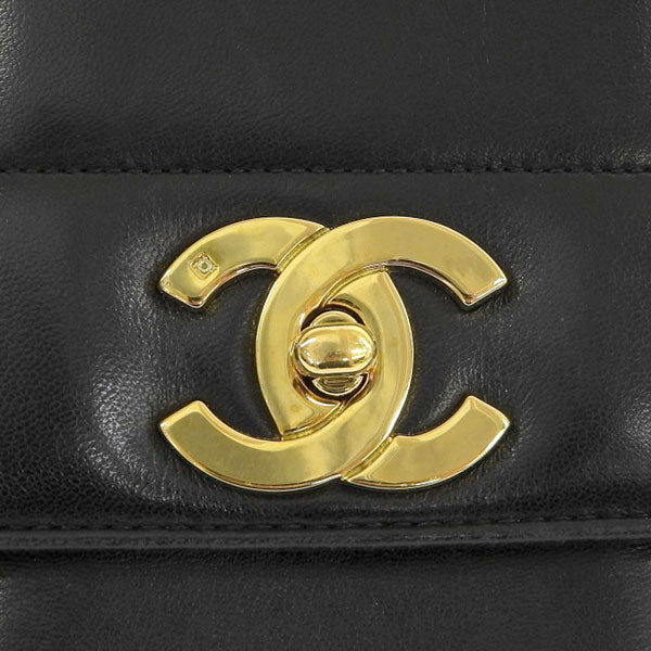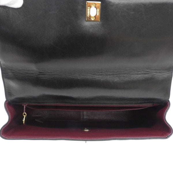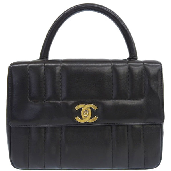 CHANEL Around 1995 Made Mademoiselle Stitch Turn-Lock Top Handle Bag Black
