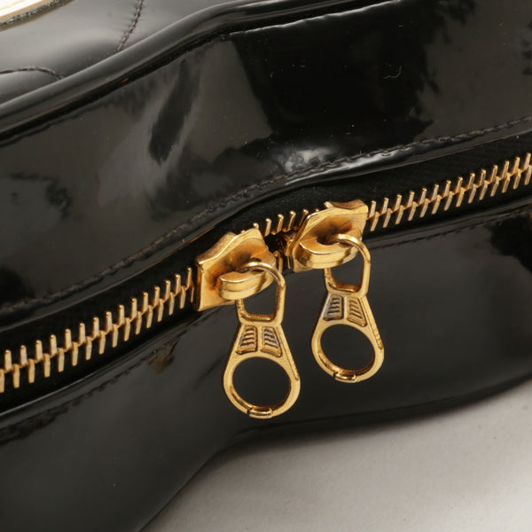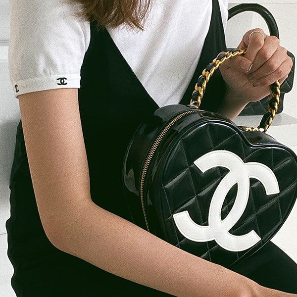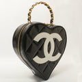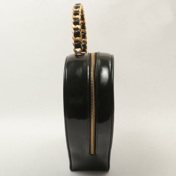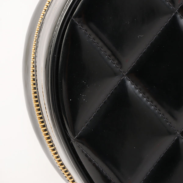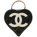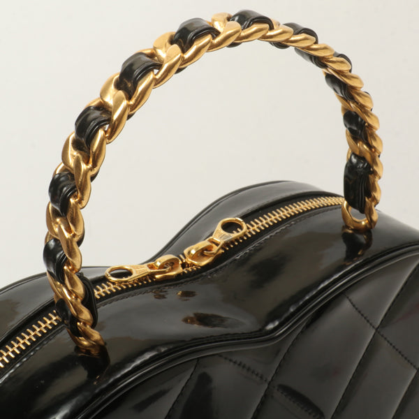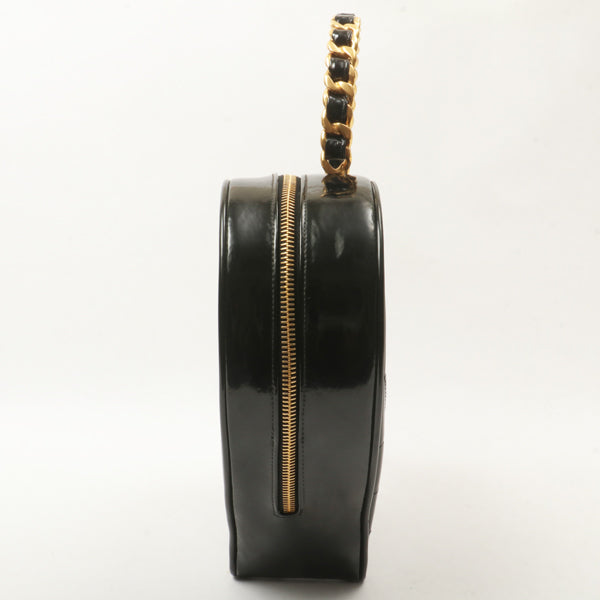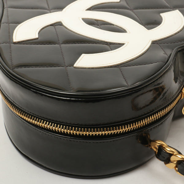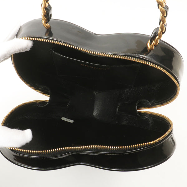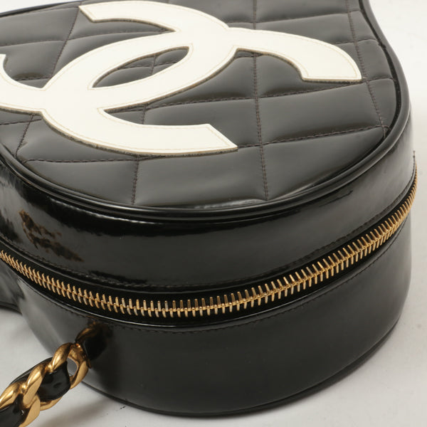 Chanel Around 1995 Made Patent Heart Cc Mark Stitch Vanity Black
