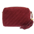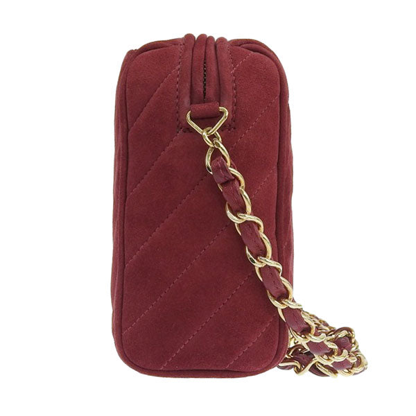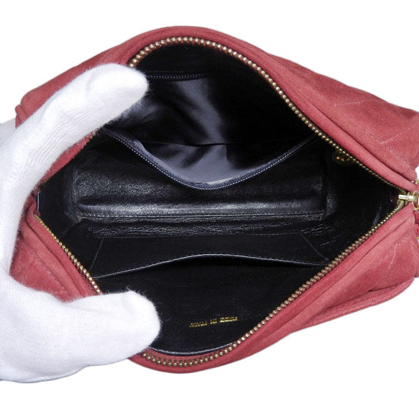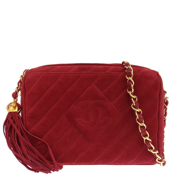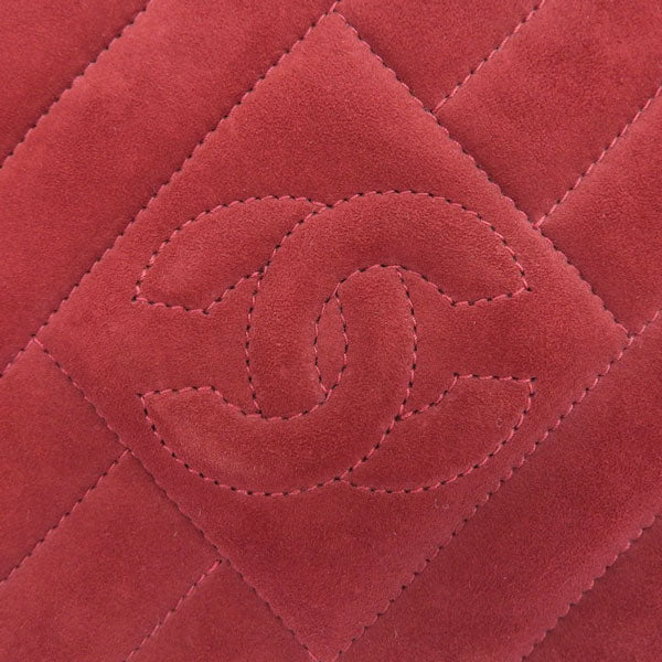 CHANEL Around 1995 Made Suede Cc Mark Stitch Fringe Chain Bag Red
