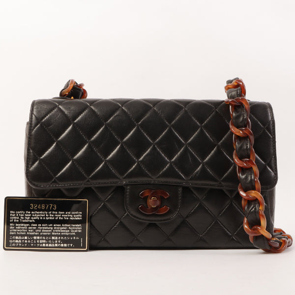 CHANEL Around 1995 Made Tortoiseshell Classic Flap Chain Bag 25Cm Black