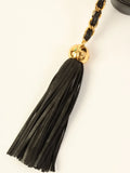 CHANEL Around 1995 Made Triple Cc Mark Stitch Tassel Chain Shoulder Bag Black