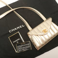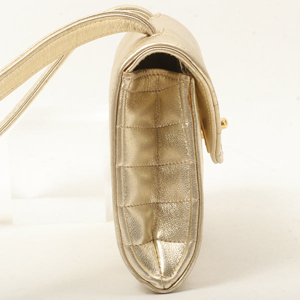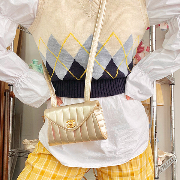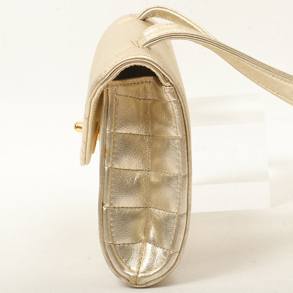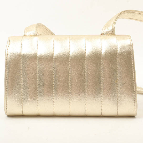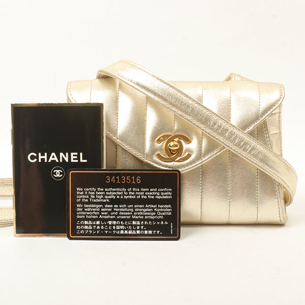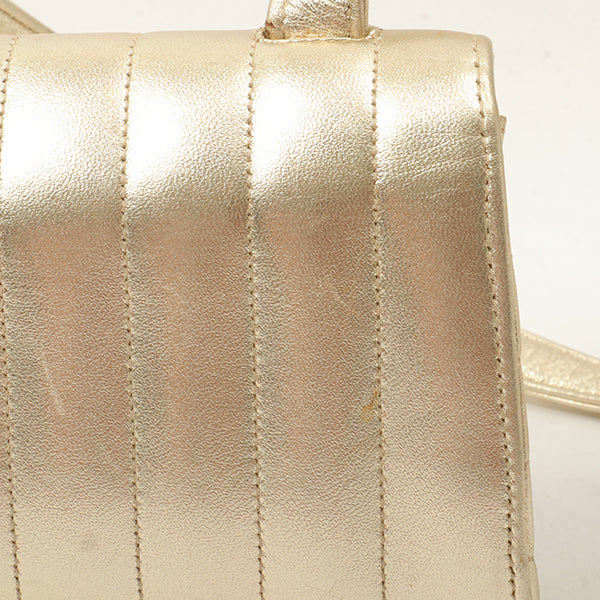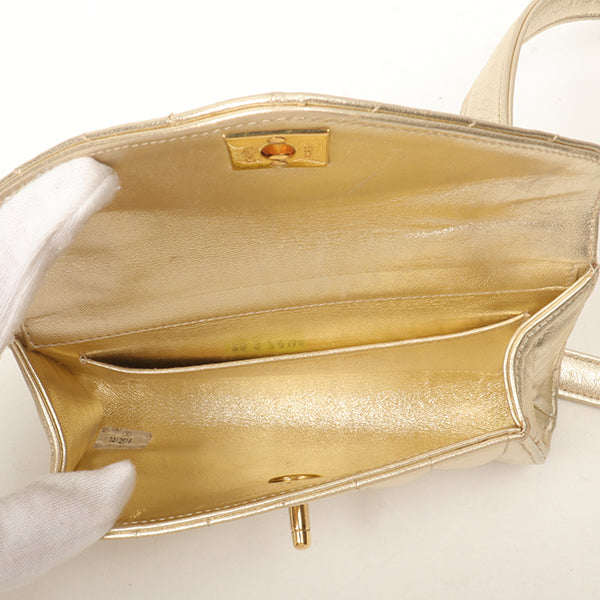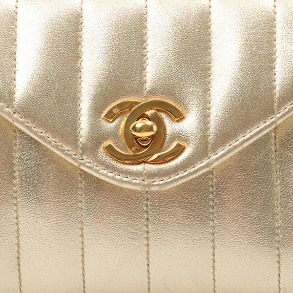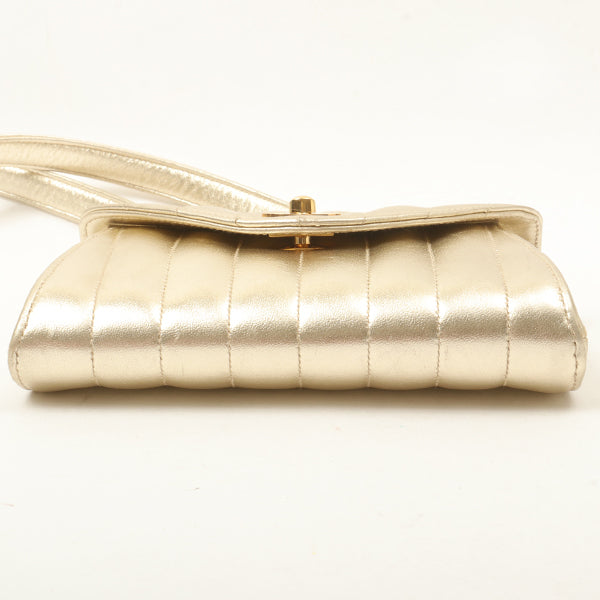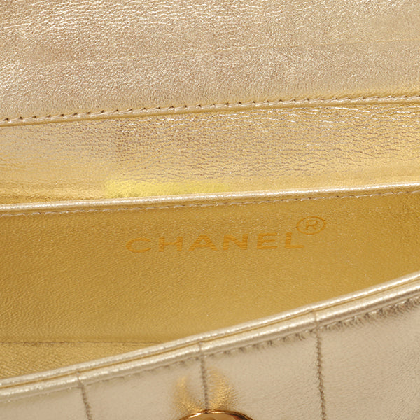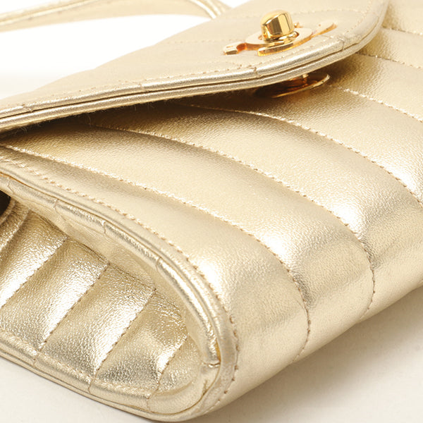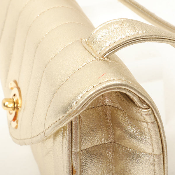 Chanel Around 1995 Made V Flap Mademoiselle Stitch Shoulder Bag Gold