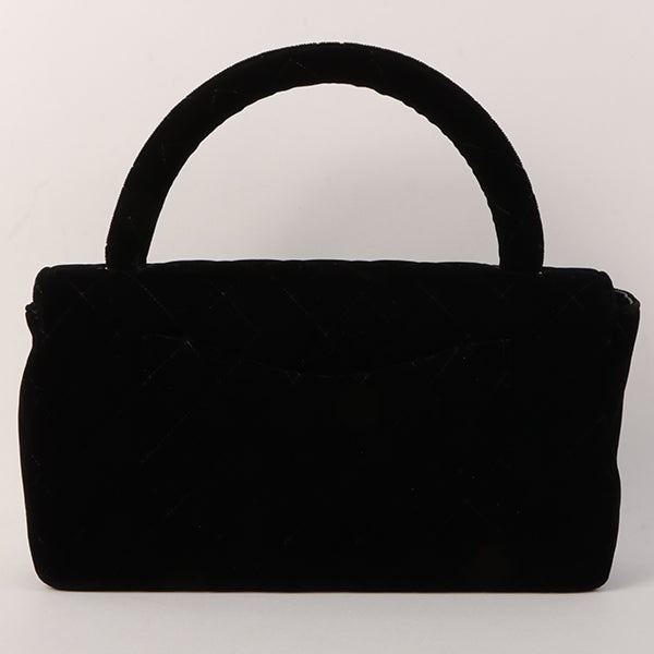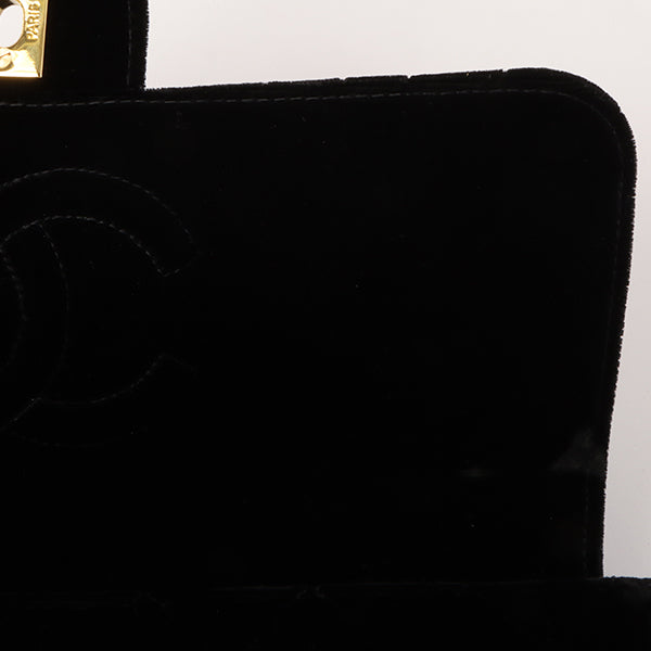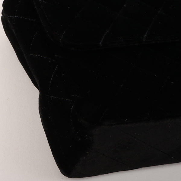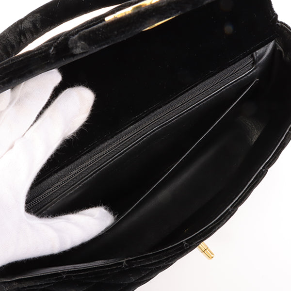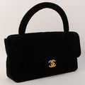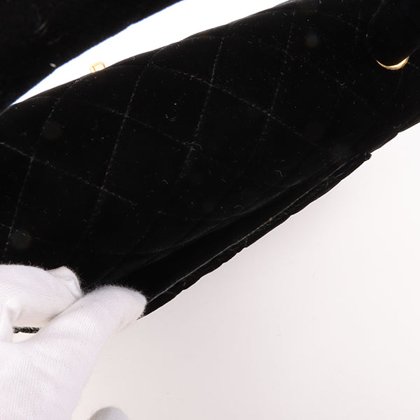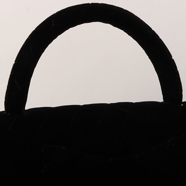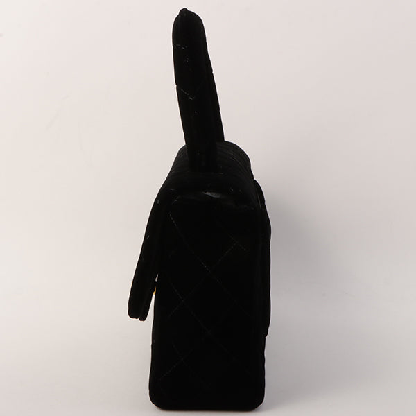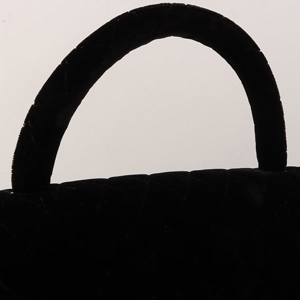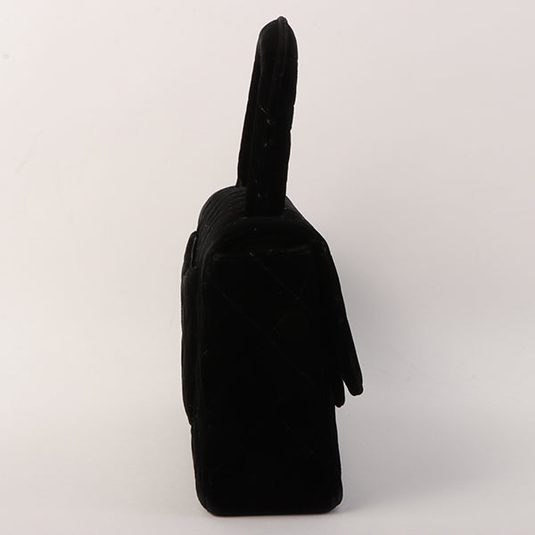 Chanel Around 1995 Made Velour Classic Flap Top Handle Bag Black