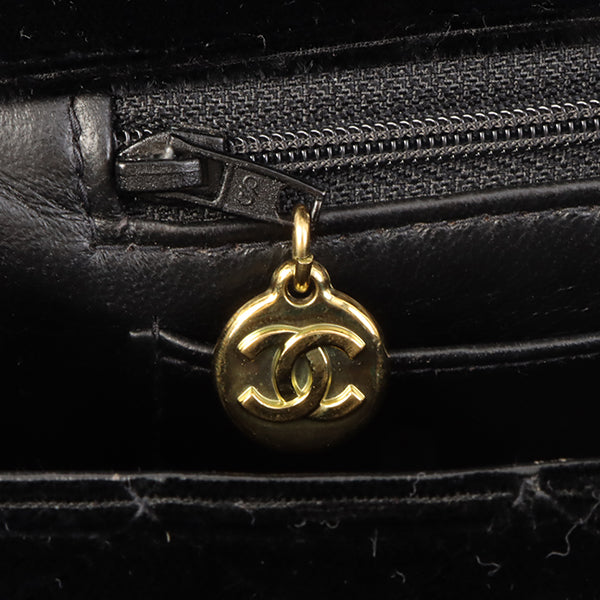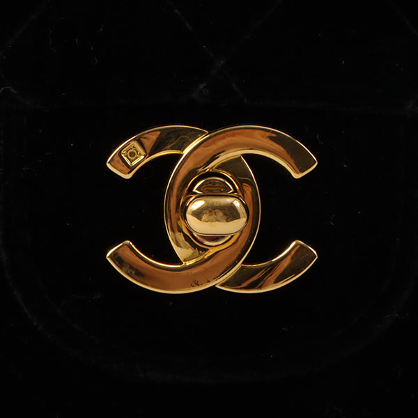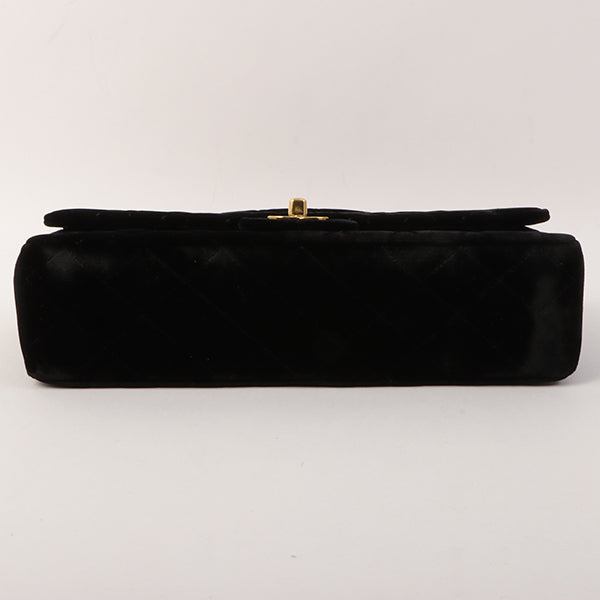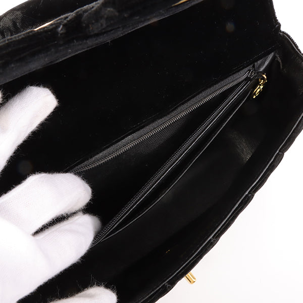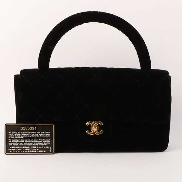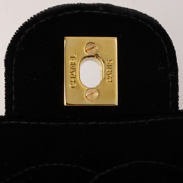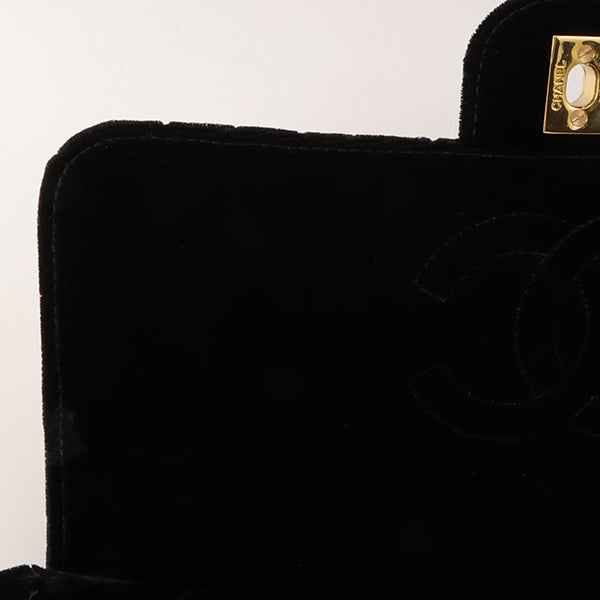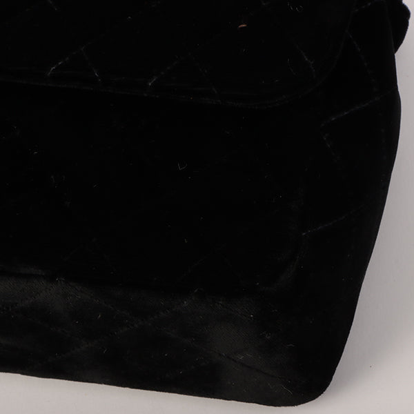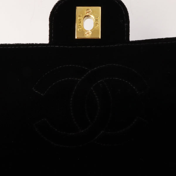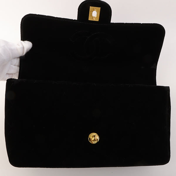 Chanel Around 1995 Made Velour Classic Flap Top Handle Bag Black