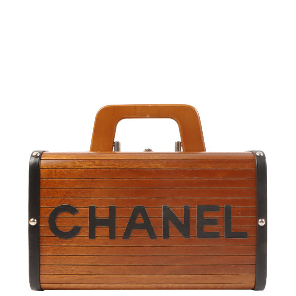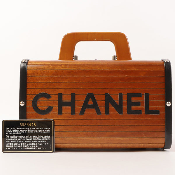 CHANEL Around 1995 Made Wood Cc Mark Logo Vanity Brown