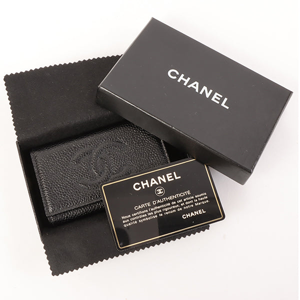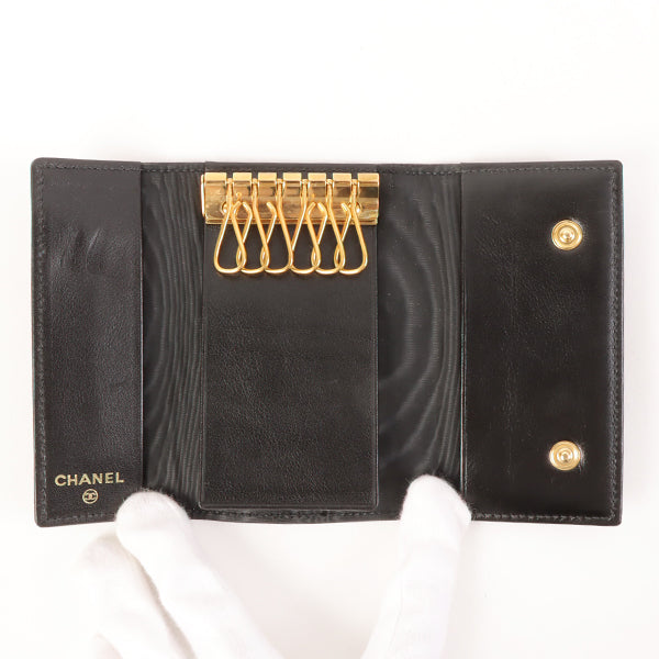 CHANEL Around 1997 Made Caviar Skin Cc Mark Stitch Key Case Black
