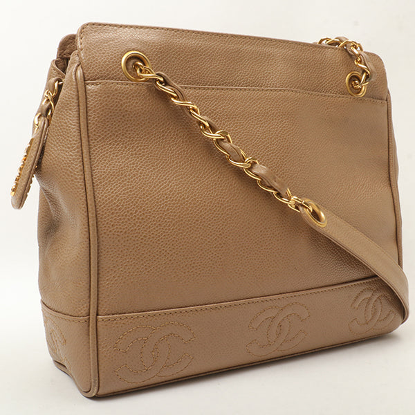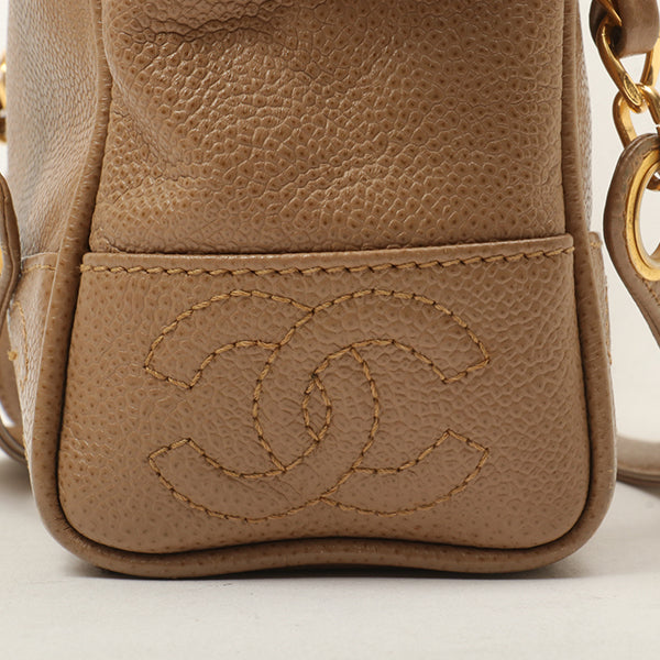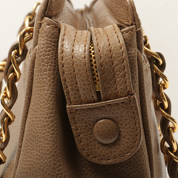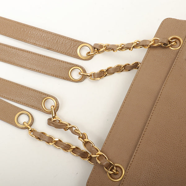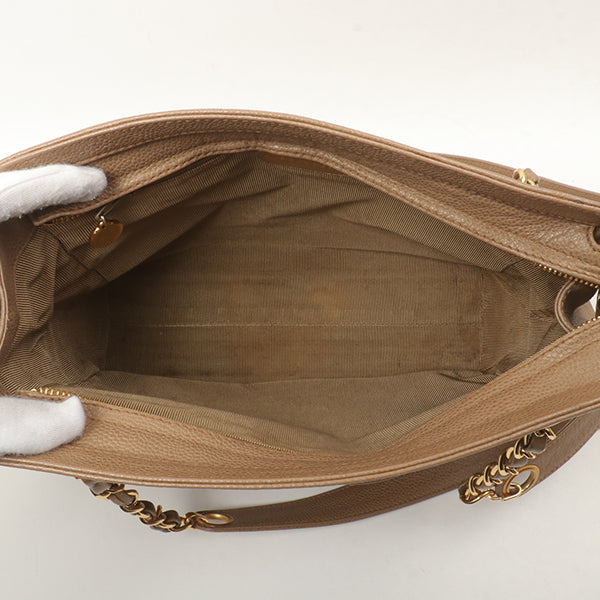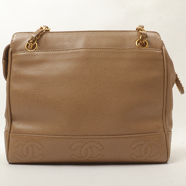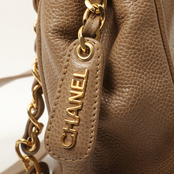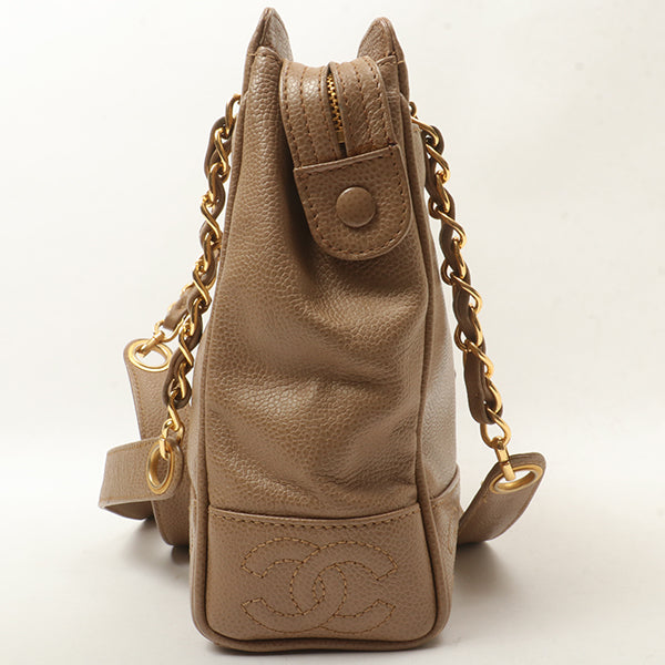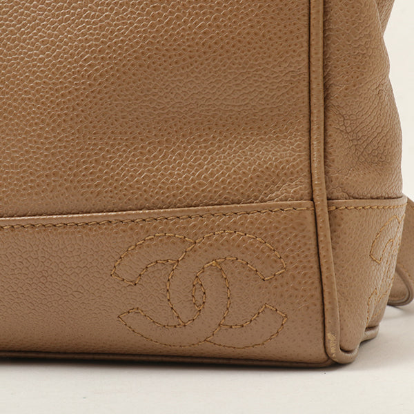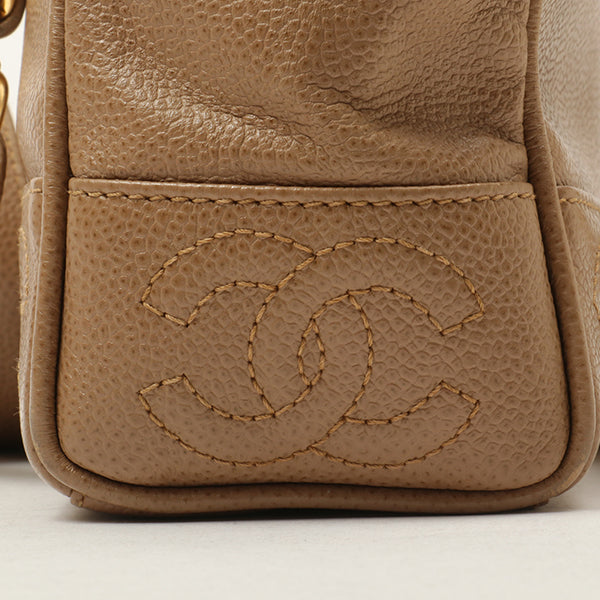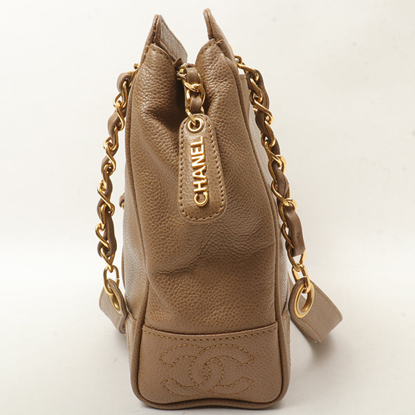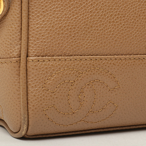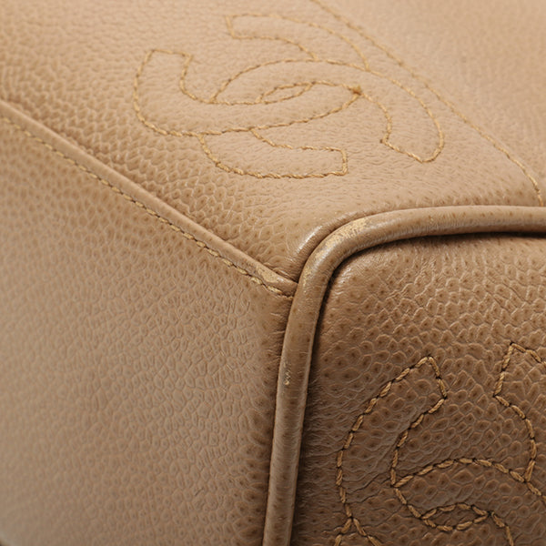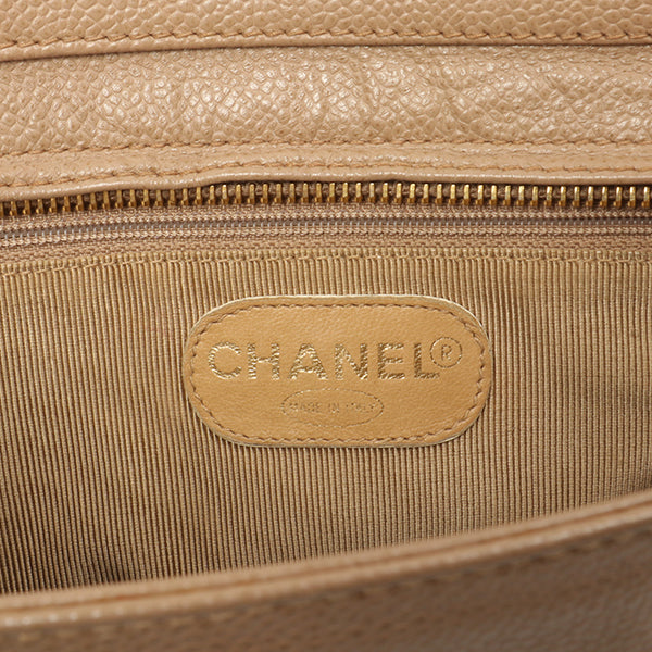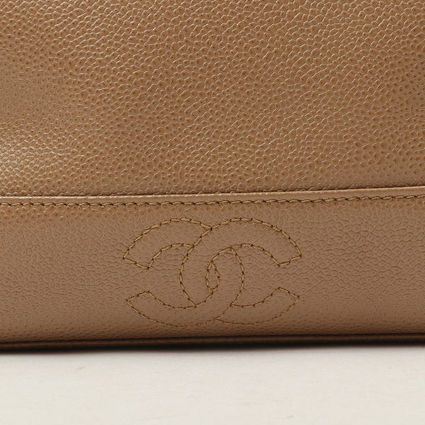 Chanel Around 1997 Made Caviar Skin Cc Mark Stitch Logo Charm Tote Bag Greige