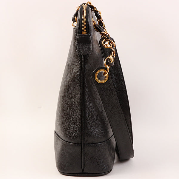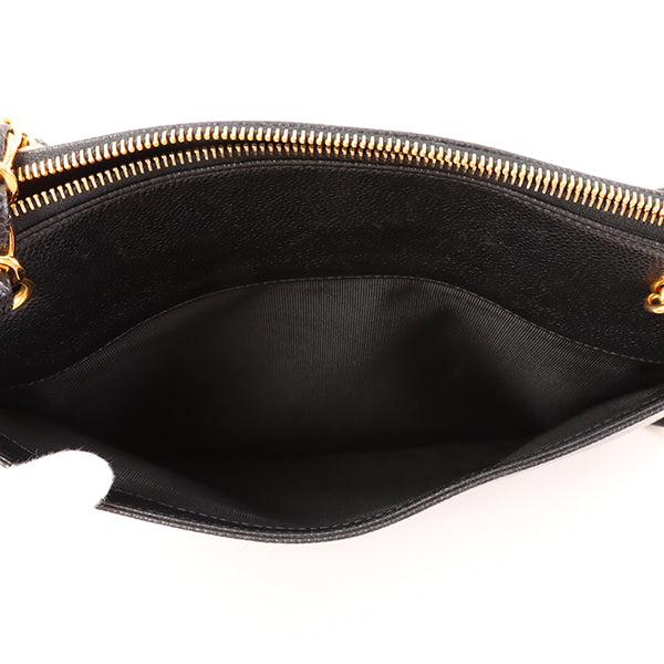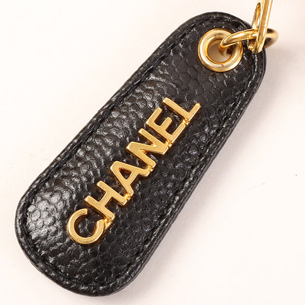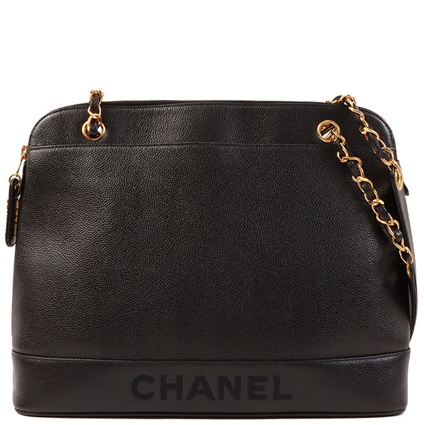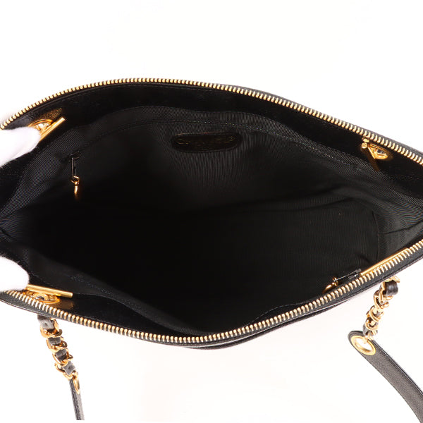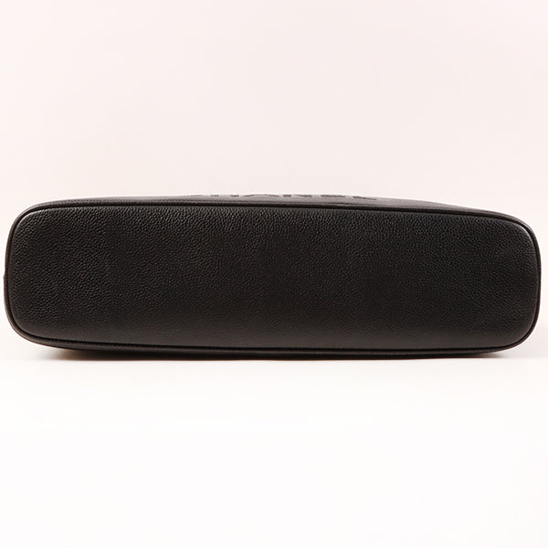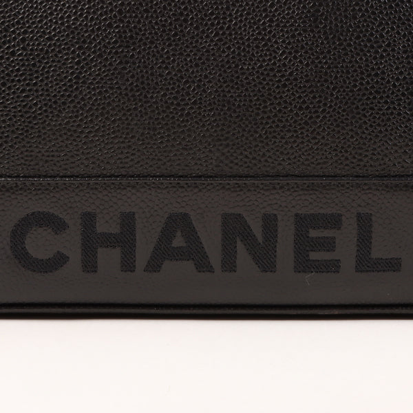 CHANEL Around 1997 Made Caviar Skin Logo Embroidered Tote Bag Black